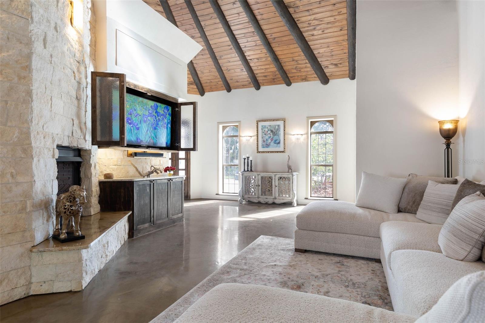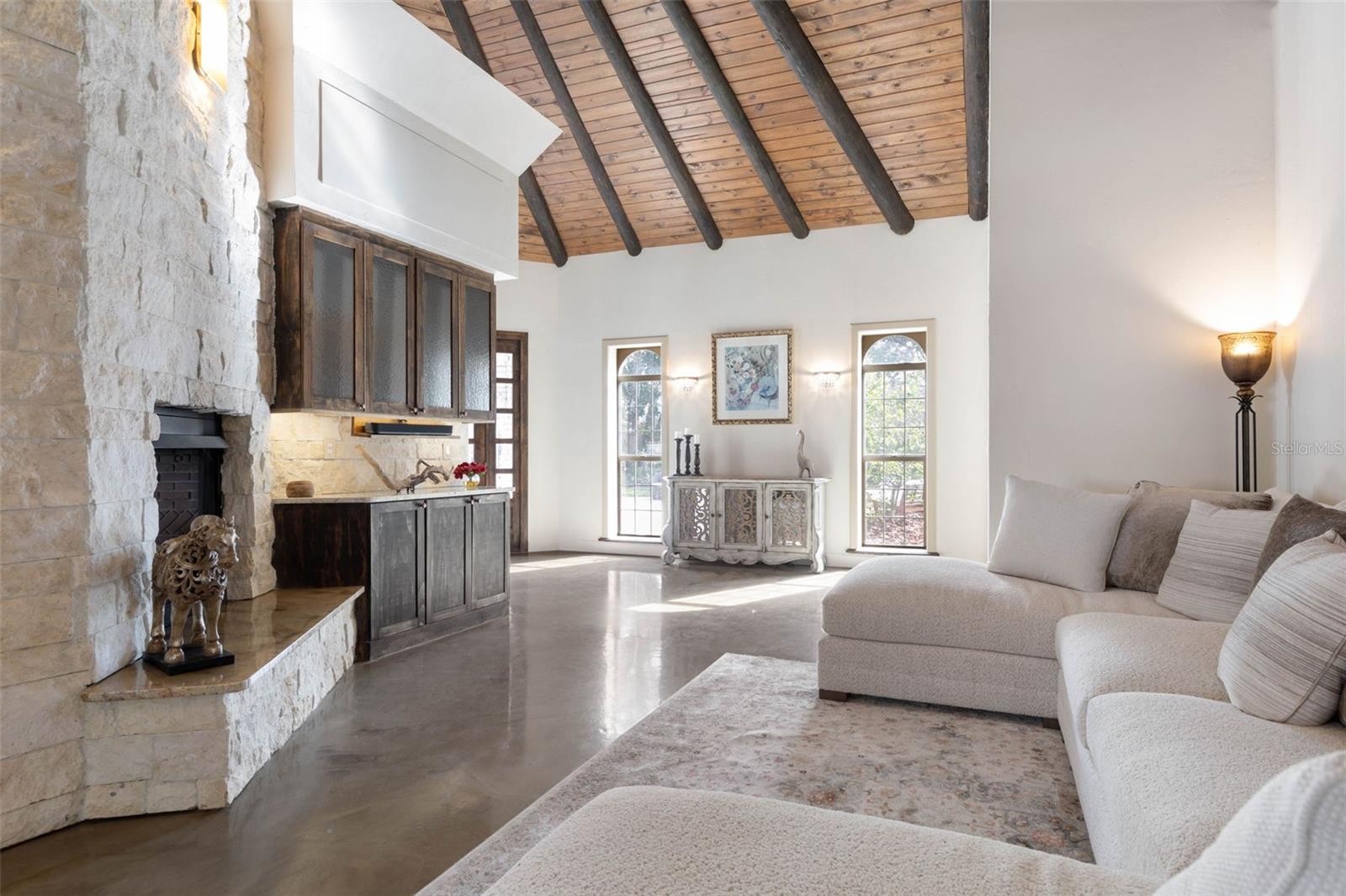 Uma ou mais fotos foram praticamente encenadas. Bem -vindo à elegância atemporal e ao luxo de Riverside. Esta propriedade única é mais do que um lar-é uma narrativa tecida através da história, design e artesanato meticuloso. Situado em uma duna natural alta com vistas abrangentes do rio, essa propriedade extraordinária conta uma história que começa com suas origens como parte da plantação de Santa Lucia, escolhida por ninguém menos que John Anderson por seu cenário idílico. O arquiteto da propriedade o apelidou adequadamente de "a Mona Lisa", uma obra-prima trazida à vida por seu atual proprietário da visão de um capitão de renome mundial, que derramou sua paixão na criação de uma fundação semelhante à fortaleza. Construído com milhões de dólares em concreto e autêntico tijolos de Chicago, a propriedade exala força, elegância e charme náutico. Detalhes como medalhões de granito embutidos no exterior, linhas de teto de inspiração européia e janelas de estilo náutico elevam sua singularidade. Esta é uma grande propriedade com inúmeras possibilidades que abrangem várias parcelas, esta propriedade oferece vistas ininterruptas e de tirar o fôlego da bacia/rio Tomoka e da via hidrográfica intracoastal, com um lote 200 'x 60' edifício e um pacote de 340 'x 199' para a própria casa. De aventuras de barco a vistas do pôr -do -sol, todos os dias parecem férias. A casa principal é de três andares, com uma suíte master de dois andares com dois banheiros, três outros quartos com banheiros em suíte, além de cinco possíveis áreas de estar/escritório/hóspedes. Há uma garagem de quatro carros anexada. A carruagem ou a casa de hóspedes tem dois andares e tem um quarto ou espaço para estar no térreo, 2 banheiros, cozinha cozinha, grande sala de bônus com acústica estelar para um estúdio de música ou outro apartamento separado, além de uma garagem para trailers medindo 50 x 20 que poderia ser facilmente convertida em espaço para estar. Isso faz com que o sogro perfeito ou o aluguel de férias com seu próprio pátio e quarto privados nas costas para uma bola de picles ou quadra de tênis. A terceira estrutura é outra garagem que possui tetos de 12 pés de altura, com uma pequena oficina e pode conter dois carros, possivelmente elevadores automáticos e se tornar o que se imagina. Além de tudo isso, há um paraíso ao ar livre com uma piscina aquecida no estilo resort para você mergulhar e nadar, um amplo pátio de travertino/deck da piscina, tornando a área de estar ao ar livre perfeita com muito espaço para reuniões. O poço de parede retangular de fogo a gás cria a vibração costeira perfeita para uma noite fria enquanto observa o pôr do sol sobre a água. Imagine desfrutar de tudo isso depois de um dia divertido de passeios de barco quando estacionar o barco em sua própria doca particular e grelhar imediatamente o peixe que você acabou de pegar na cozinha de verão ao ar livre na nova grelha a gás. Os jardins são meticulosamente paisagísticos com árvores maduras para relaxar em uma rede, oferecendo privacidade e sombra. Há muito espaço para estacionar dezenas de carros com uma unidade circular na frente da casa e todo o espaço na área traseira. Os caminhos pavimentados são esculpidos, dando a você a sensação de ter seu próprio parque. Um escritório encantador com entrada separada fica ao lado da garagem para você pendurar sua telha e cumprimentar os clientes mantendo o trabalho longe de todas as áreas dentro de casa em que você criará a vida dos seus sonhos. Nunca se cansa da vista da cozinha do chef, com uma lareira a gás de 25 pés de permanente feita de calcário de Austin, fogão a gás de queimador de 6 Thermador e geladeira embutida/freezer, uma geladeira de vinho e fabricante de gelo. A máquina de lavar louça Bosch nova, armários de madeira feitos personalizados, pia da fazenda e uma grande ilha para entretenimento.