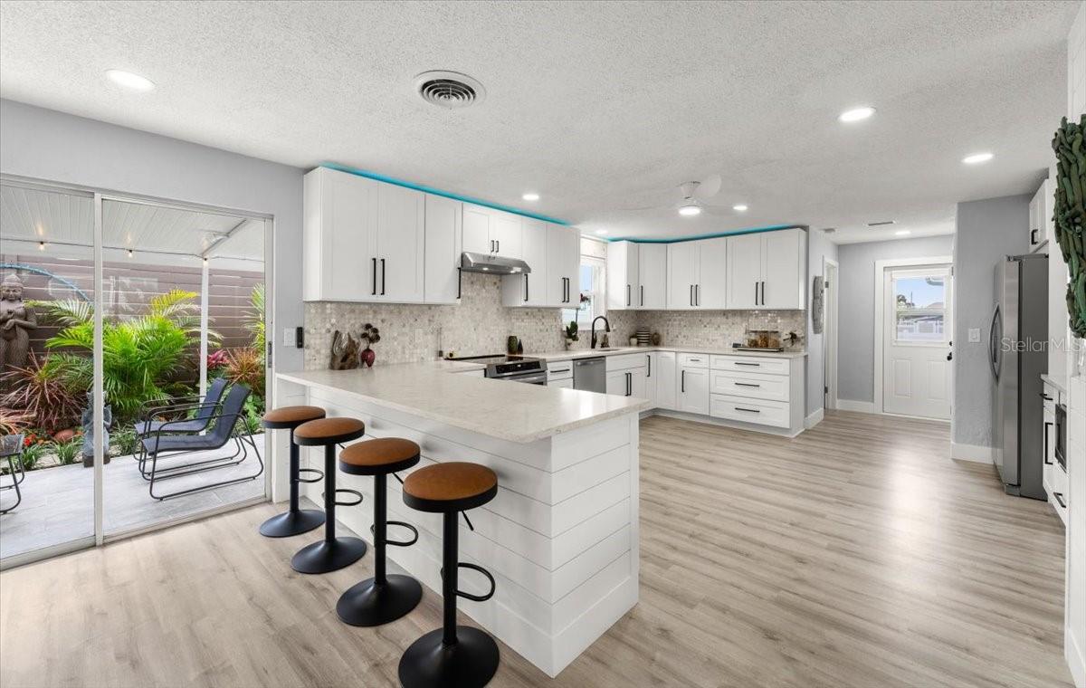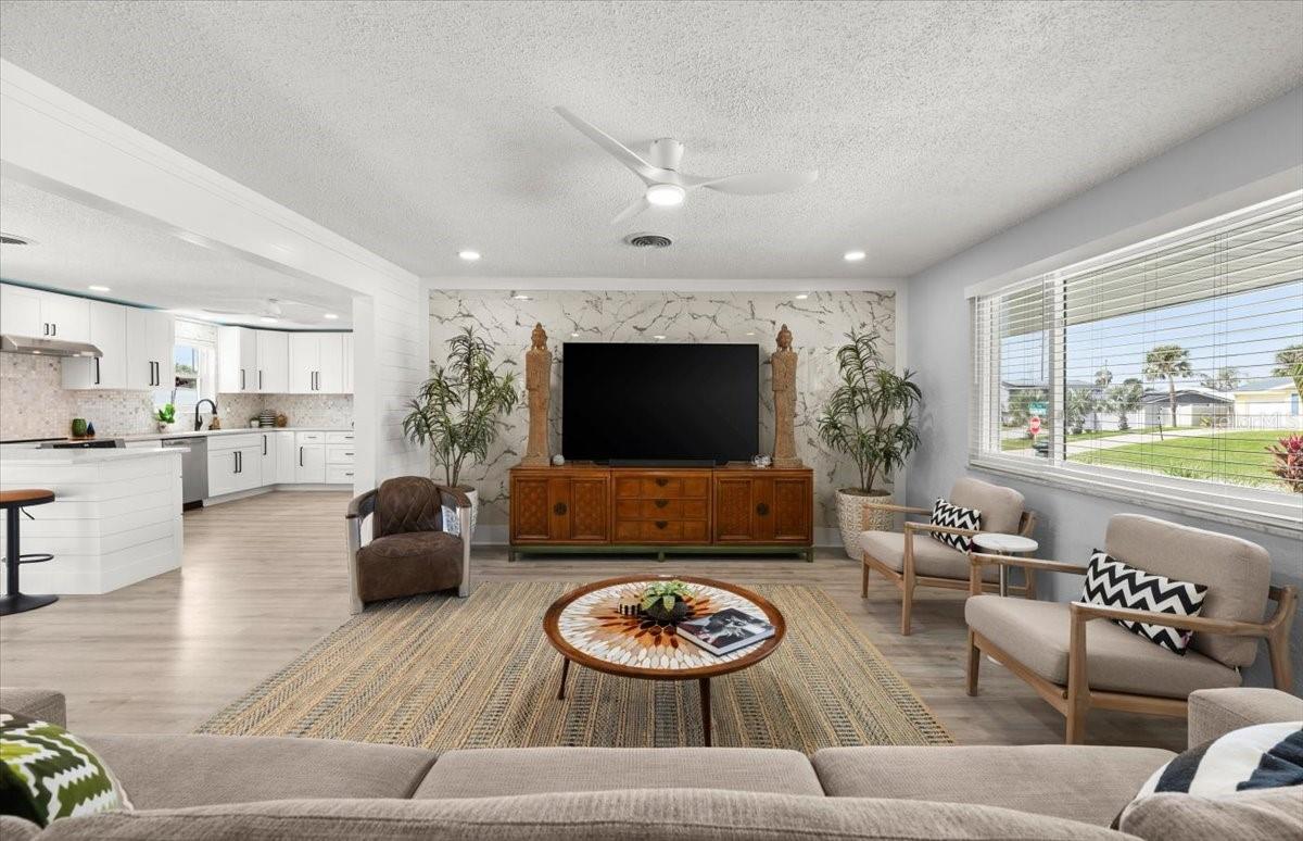 Apenas a 60 segundos a pé do nascer do sol na praia até esta casa de praia absolutamente deslumbrante que foi COMPLETAMENTE REMODELADA e fica no alto de uma duna elevada! Novo telhado, novo HVAC, novas janelas de impacto de furacão e um conceito aberto de luz e interior brilhante que é mais agradável do que qualquer outra coisa que você encontrará! O pátio frontal cuidadosamente selecionado pelo proprietário foi meticulosamente ajardinado com vegetação tropical que dará privacidade da estrada, ao mesmo tempo que oferece vistas do leste para o oceano enquanto você se senta perto da fogueira. Os pavimentos frontais e a fachada da casa são de pedra calcária e unem os espaços exteriores. No interior você ficará impressionado com a espaçosa sala de estar que se abre perfeitamente para a sala de jantar e a cozinha. Esta cozinha possui balcões de quartzo luxuosos de última geração, eletrodomésticos de aço inoxidável, incluindo fogão de indução, backsplash de mármore, iluminação de realce e armários totalmente novos. A suíte principal tem armários personalizados e um banheiro totalmente remodelado com box de vidro deslumbrante e penteadeira personalizada. Dois quartos bem equipados compartilham um banheiro remodelado completo com penteadeira nova, piso de mármore e banheira/chuveiro remasterizados. O quarto quarto é um home office ou academia perfeito e está localizado fora da cozinha. Uma lavanderia grande sob AC está localizada perto da garagem e tem uma pia completa. A varanda dos fundos é um oásis zen de paisagismo tropical maduro, cercas de privacidade personalizadas e uma área de estar coberta perfeita para relaxar no final do dia. Além da garagem para 2 carros e da garagem de grandes dimensões, uma parte da garagem pode ser usada para armazenamento de barcos ou trailers com um portão fácil adicionado à cerca existente. Não há realmente nada como este oásis à beira-mar. Tão perto do acesso direto à praia e a uma curta distância de carro de lojas, mercearias e restaurantes na pitoresca e tranquila Ormond-by-the-Sea.