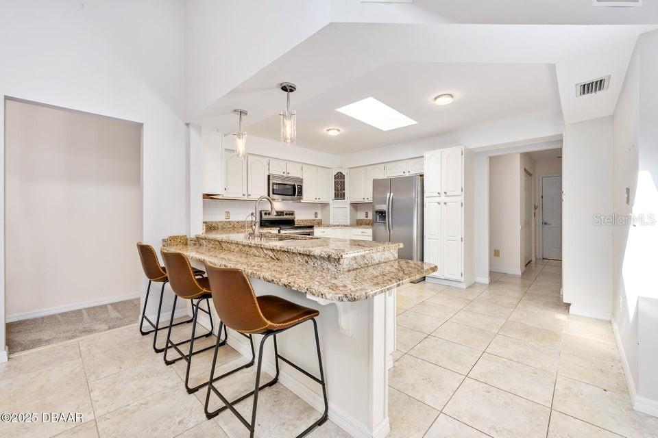 Linda piscina de tijolos sólidos em casa com garagem de 3 carros em movimento em condição atrás dos portões da amada comunidade de trilhas separatistas. Esta casa de 4 quartos e 3 banheiros apresenta áreas amplas de vida e divertido. Dirija a calçada designada pela pavimentadora para entrar na casa através de uma adorável varanda coberta. Uma vez lá dentro, observe os tamanhos generosos dos quartos com uma sala formal formal, centrada em três belas janelas emoldadas de tijolos. Alguns passos adiante, uma grande sala apresenta tetos abobadados que pairam no alto da lareira de tijolos que aquece as áreas casuais de estar e divertido à medida que a sala de jantar, a sala da família e a cozinha se tornam uma. Armários de madeira maciça com tampos de granito bonitos se estendem por uma grande península que se abre para a grande sala. A planta aqui é ideal para uma família ou convidados que priorizam a privacidade com um grande quarto de hóspedes com banho dedicado em um corredor solitário em um canto tranquilo, 2 quartos que compartilham um banheiro do Grand Hall em outro, um dos quais se abre para a área da piscina e Sala da Flórida. Finalmente, o pacífico retiro do proprietário da piscina possui espaço fabuloso no armário e um banho gracioso com vaidades duplas, chuveiro e banheira de jardim. Além dos principais espaços, uma sala da Flórida durante toda a Flórida tem vista para a piscina aquecida e exibida. A privacidade é abundante nesse cenário, pois o lote vizinho é uma reserva arborizada de propriedade e mantida pela associação. O quintal é enquadrado por uma cerca de privacidade de seis pés, com muito espaço verde ao redor da grande piscina e Lanai. A garagem de 3 carros de grandes dimensões é única e pode acomodar bicicletas, motocicletas e outros brinquedos, enquanto ainda oferece muito espaço para três veículos em tamanho real. O Breakaway Trails é o principal condomínio fechado de Ormond Beach, com segurança em tempo integral e áreas comuns preparadas sob carvalhos e palmeiras. A comunidade rica em amenidades inclui um maravilhoso clube com piscina comunitária de estilo resort, tênis, pickleball, basquete, hóquei em campo e playground infantil. Localizado a poucos minutos dos ótimos restaurantes, compras e nossas belas praias.