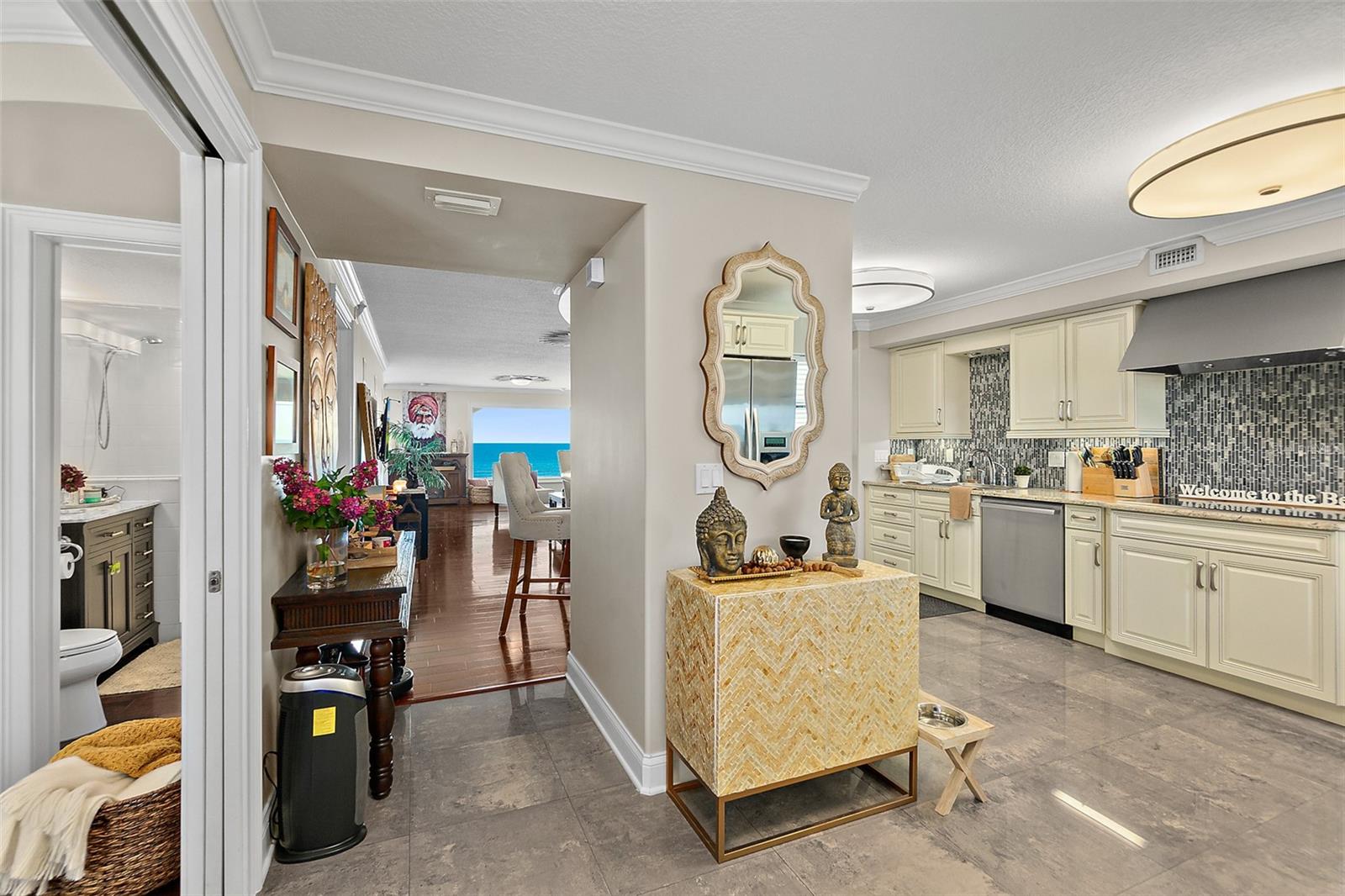 Condomínio requintado à beira -mar à beira -mar em Ormond à beira -mar Experimente o luxo incomparável neste condomínio de cobertura do último andar, totalmente renovado e personalizado, com vistas diretas do oceano de tirar o fôlego por meio de vistas expansivas e de impacto de furacões de grandes dimensões. Com 1.900 pés quadrados de espaço interior sofisticado, esta residência única é complementada por um extraordinário pátio de 1.400 pés quadrados-seu oásis pessoal para banhos de sol, relaxar ou saborear a sol sobre as vistas do Oceano Atlântico e do Sol. Nenhum detalhe foi negligenciado nesta reforma impressionante. O interior exibe design incomparável com detalhes em mosaico retroiluminado, uma barra de pedra elegante e uma cozinha personalizada personalizada para estilo e funcionalidade. Pisos reluzentes de madeira e ladrilhos premium fluem por toda parte, enquanto as janelas e as portas de impacto de furacões da mais alta série garantem tranquilidade. A suíte master é um verdadeiro retiro, com um layout personalizado e um banheiro amplo inspirado em spa, criado com atenção meticulosa aos detalhes. Duas lareiras elétricas - uma na sala de estar e uma no quarto principal - acrescentam o calor e o ambiente, enquanto a iluminação personalizada eleva todo o espaço. Saia para o seu pátio de 1.400 pés quadrados exclusivos de 1.400 pés quadrados, totalmente equipado com decks de Trex durável - perfeito para café da manhã, coquetéis noturnos ou entretendo convidados contra um cenário de inúmeras vistas oceânicas. Esta cobertura pode ser sua totalmente mobiliada com móveis de última geração incluídos, preparando-o pronto para o comprador exigente. Aninhado no enclave sereno e privado de Ormond by the Sea, esta propriedade oferece o melhor da vida costeira da Flórida-apenas a 5 minutos do centro de Ormond Beach, a uma curta distância de carro de Vibrant Daytona Beach, 45 minutos até a histórica Santo Agostinho e a apenas uma hora dos parques mundialmente famosos de Orlando e o aeroporto internacional. É o luxo que vive no seu melhor, com muitas atualizações para listar. Um imperdível para quem procura um estilo de vida extraordinário à beira-mar! Entre em contato hoje com seu próprio tour particular por este condomínio exclusivo de cobertura e comece a viver o estilo de vida de luxo da Flórida que você sempre sonhou!