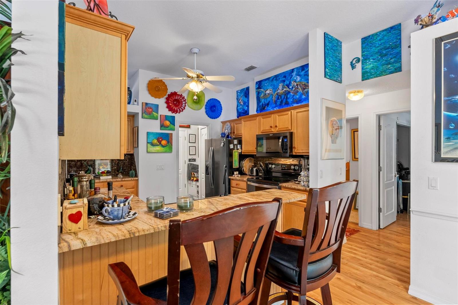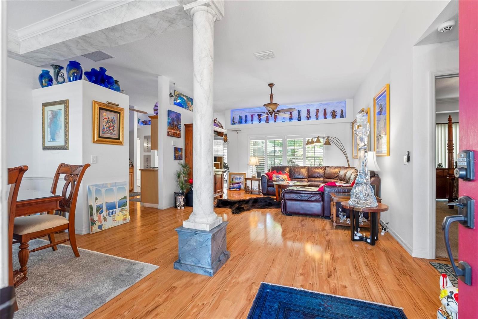 Bem-vindo a esta casa lindamente atualizada de um dono! Apresentando uma piscina de água salgada com aquecimento solar e localizado em cênica praia de Ormond. Desfrute de vistas para o lago da frente e de vistas pacíficas da reserva pelas costas. Piscina de estilo esportivo com centro profundo, pontas rasas, prateleira solar e bancada estendida. Painéis solares e bomba de pool de economia de energia mantêm os custos baixos. A irrigação no poço mantém paisagismo exuberante. No interior, pisos laminados não esquisitos, persianas, tetos de bandeja e murais costeiros adicionam charme. A suíte do proprietário possui banheira de jardim, chuveiro, pias duplas e closet. Tarda de hidromassagem e lustres personalizados transmitem. Obras de arte vendidas separadamente. Telhado 2020, HVAC 2018, w/h 2021, utensílios de cozinha 2023.
