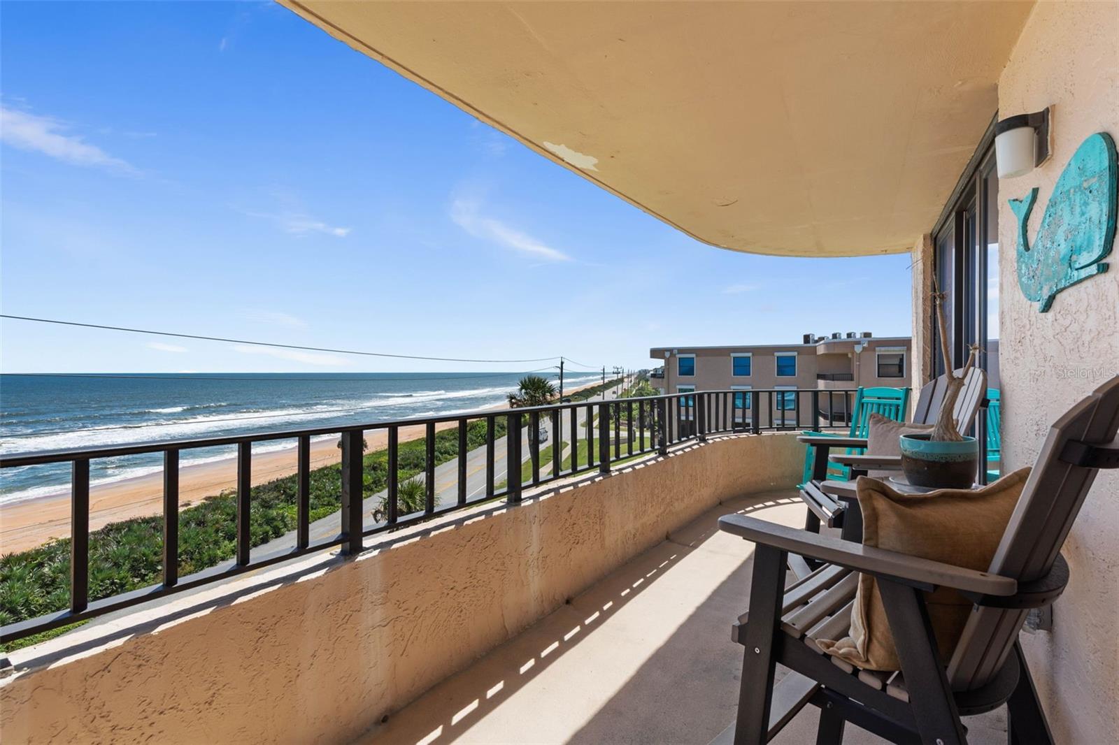 Linha de linha de frente para baixo-tudo o seu! Acorde nesta cobertura com nada além de vistas sem fim do oceano. Esta unidade final totalmente mobiliada fornece luxo direto à beira -mar da sua varanda expansiva e foi projetada com atualizações modernas e elegância costeira. Pense em cozinhar o jantar em uma cozinha gourmet com armários personalizados, utensílios de aço inoxidável premium e bancadas em granito enquanto apreciava a vista para o mar. Espaço para uma mesa de bistrô na cozinha, se desejar. O piso de luxo, além de dois quartos divididos e espaçosos, uma lavanderia de tamanho agradável, um enorme armário na suíte primária à beira -mar com um escritório ou opção de camarim, além de banhos atualizados. Persianas de plantações, armários embutidos adicionais na área de jantar, móveis sofisticados com sofá -cama e luminárias elegantes. Pode facilmente dormir até oito pessoas. Aluguel mínimo de trinta dias. Esteja você procurando uma fuga em tempo integral ou um retiro de bloqueio e libra, esta propriedade captura o melhor de Ormond Beach Oceanfront Living com estilo, conforto e sofisticação. Moradores e convidados de Fairwind Shores desfrutam de uma coleção exclusiva de comodidades: uma piscina de estilo resort, clubhouse, sauna, tênis e quadras de pickleball, churrasco ao ar livre e espaços divertidos, armazenamento dedicado para caiaques por uma pequena taxa e a paz de espírito que vem com estacionamento seguro. Experimente vistas panorâmicas de tirar o fôlego deste estilo de vida à beira -mar elevado. Não é apenas um condomínio-é um santuário à beira-mar.