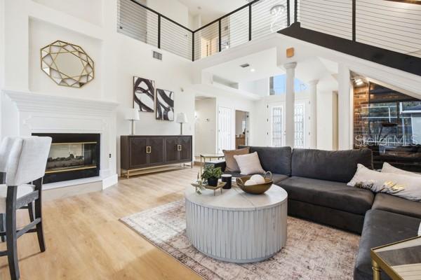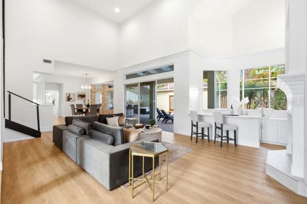 Totalmente renovada e projetada para conforto diário e entretenimento em grande escala, esta ampla residência oferece quase 5.000 pés quadrados de vida moderna em um ambiente privado em estilo resort na muito procurada comunidade de Hunters Ridge. Situada em terreno coberto com apenas um vizinho direto, a casa oferece espaço, privacidade e funcionalidade que se destacam no mercado atual. O interior é leve, aberto e coeso, com piso de tábuas largas, acabamentos neutros e abundantes luz natural por toda parte. As principais áreas de estar são ancoradas por uma lareira elegante e fluem facilmente para espaços de jantar formais e casuais, criando um layout que parece polido e convidativo. A cozinha atualizada abre-se para a área de estar e conecta-se perfeitamente às áreas de entretenimento externas, tornando-a ideal para reuniões grandes ou pequenas. Um verdadeiro destaque da propriedade é a suíte separada da sogra, completa com área de estar própria, cozinha compacta, banheiro completo e entrada privativa. Este espaço flexível é perfeito para hóspedes, familiares, residências multigeracionais ou uma configuração privada para trabalhar em casa. A suíte principal é um retiro privado, com banheiro inspirado em spa com pia dupla, box amplo e banheira de imersão independente. Os banheiros adicionais foram totalmente atualizados com acabamentos limpos e modernos e design inteligente. A vida ao ar livre é onde esta casa realmente brilha. Uma piscina protegida e um spa são cercados por várias áreas de estar e jantar cobertas, complementadas por uma cozinha externa totalmente embutida. O quintal oferece um cenário tranquilo e privado, sem vizinhos traseiros, criando um cenário ideal para entretenimento ou relaxamento durante todo o ano. Os recursos adicionais incluem uma sala de ginástica ou flexível em casa, armazenamento generoso por toda parte e uma planta baixa que oferece abertura e separação onde for importante. Esta é uma rara oportunidade de possuir uma casa totalmente renovada e de grande porte, com vida interna e externa premium em Hunters Ridge, uma das comunidades mais estabelecidas de Ormond Beach.