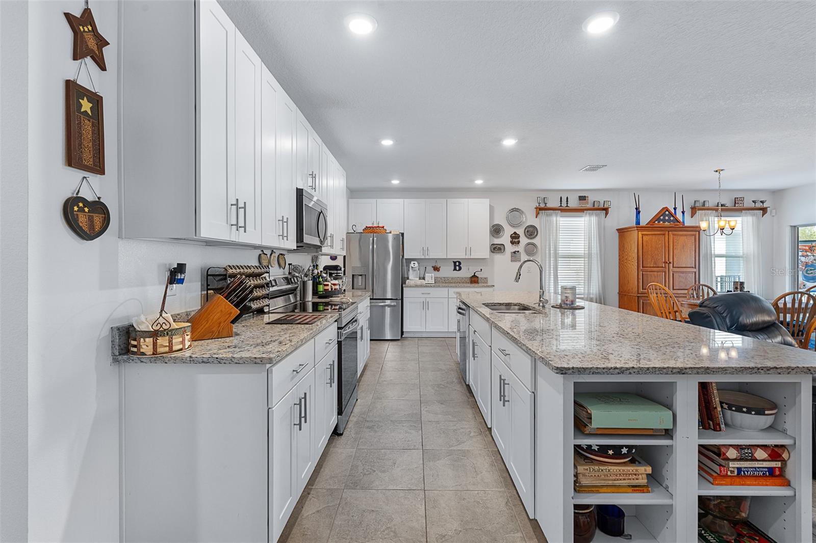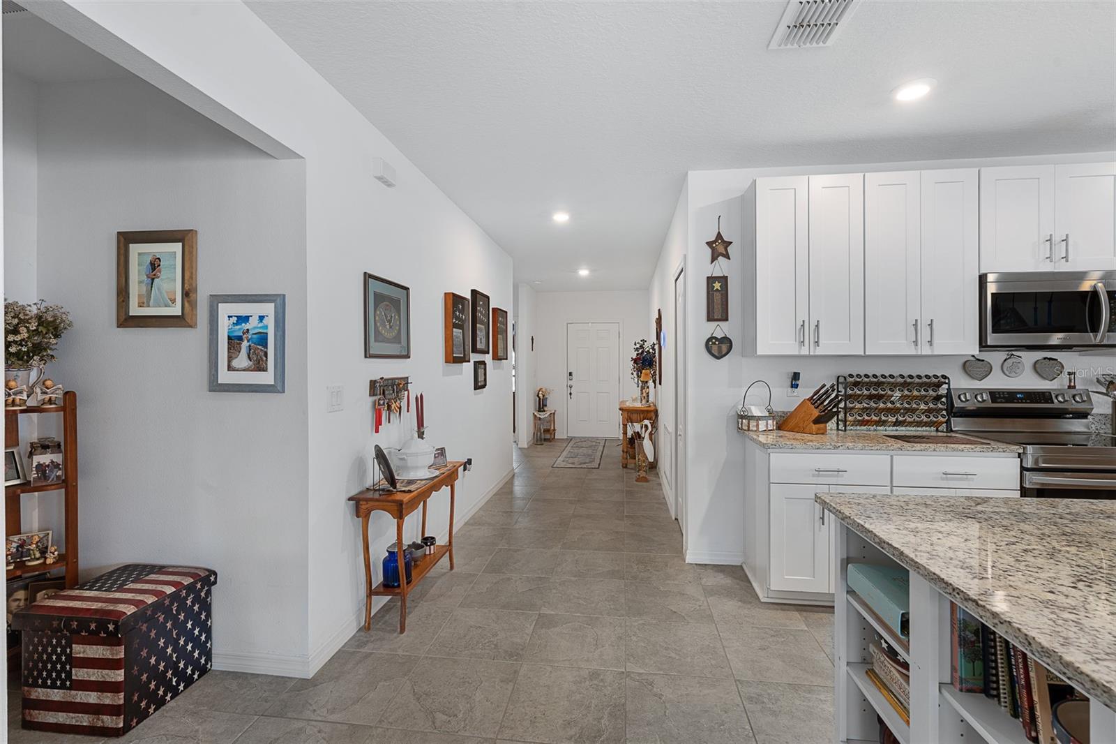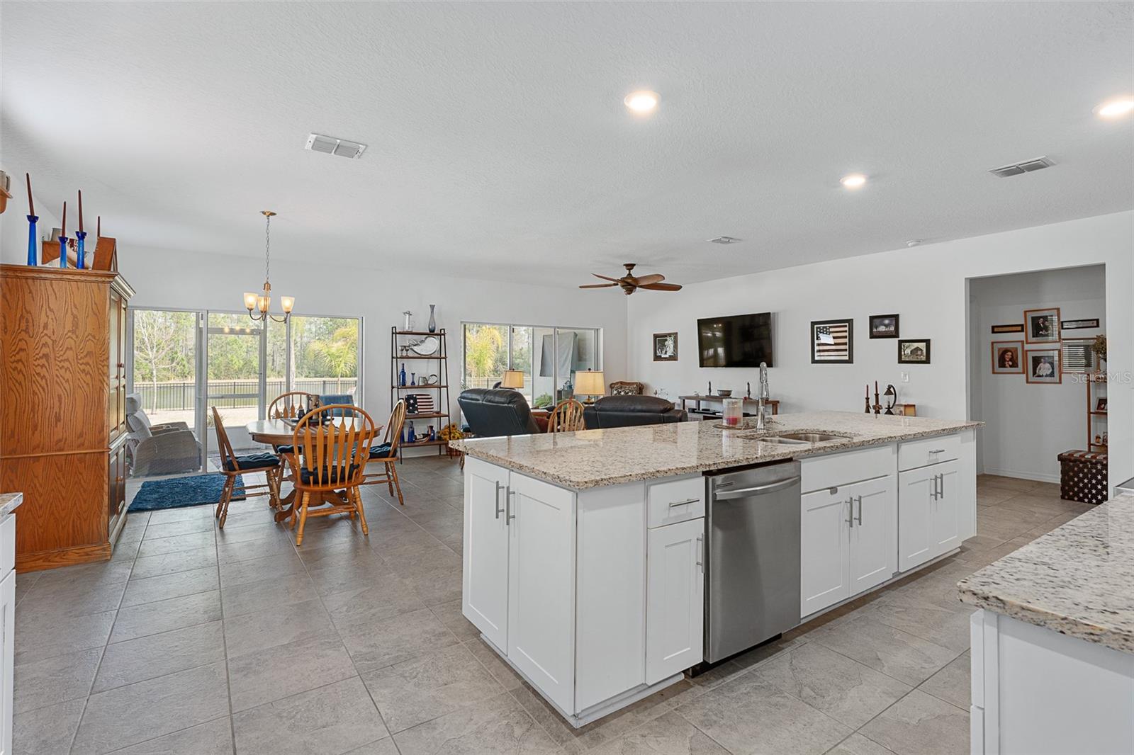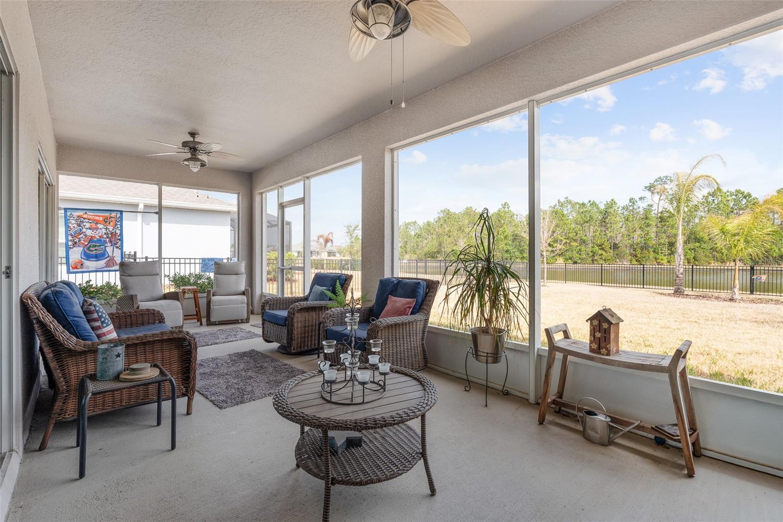 Bem-vindo ao 35 Fawn Haven Trail, uma casa lindamente decorada de três quartos e dois banheiros, sem manutenção, localizada na cobiçada comunidade de mais de 55 anos de Huntington Village, em Hunter's Ridge. Construído em 2022, este bloco de concreto é uma residência cuidadosamente projetada que oferece uma planta aberta e um cenário excepcional em um grande lago com vistas preservadas, criando um cenário verdadeiramente grandioso e privado que pode ser apreciado em vários cômodos da casa. A partir do momento em que você entra, você é atraído pela ampla cozinha aberta com bancadas de granito, armários brancos de 42 polegadas, eletrodomésticos de aço inoxidável e uma grande ilha com vista para a área de jantar. Pisos de cerâmica fluem perfeitamente pelos espaços principais, realçando a sensação de luz e arejamento. A sala de jantar oferece controles deslizantes que se abrem para a varanda, enquanto a espaçosa sala familiar continua com o piso de cerâmica e possui controles deslizantes adicionais que levam à varanda estendida, onde o lago de tirar o fôlego e as vistas preservadas se tornam o ponto focal. Essas vistas deslumbrantes do mar são visíveis na cozinha, na sala de jantar e na sala de estar. O retiro do proprietário é escondido para privacidade e possui um teto de bandeja, um amplo closet e um banheiro privativo completo com pias duplas de granito e um amplo box amplo com assento e barra de apoio interna e três chuveiros, incluindo um recurso de chuva. Os quartos dois e três estão posicionados na frente da casa e ambos possuem ventiladores de teto. O segundo banheiro oferece bancada de granito e combinação de banheira e chuveiro de azulejos. Esta casa completa-se com uma lavandaria de dimensões generosas e uma garagem completa para dois carros. Do lado de fora, aproveite verdadeiramente tudo o que a vida na Flórida tem a oferecer com um quintal totalmente cercado. A cerca é de alumínio de baixa manutenção, combinando elegância e durabilidade. Uma varanda estendida tem vista para o lago e para a reserva, proporcionando vistas tranquilas e maior privacidade. Cada detalhe foi cuidadosamente finalizado, incluindo um sistema completo de calhas, termostato Ecobee, sistema de segurança, purificador de água para toda a casa, paisagismo profissional adicional e luminárias atualizadas por toda parte. Huntington Village é uma bela comunidade com mais de 55 anos que oferece um clube e espaços para reuniões sociais, piscinas, trilhas para caminhada e ciclismo e amplo espaço verde como parte do plano diretor maior de Hunter's Ridge, que inclui uma impressionante reserva natural. Os residentes desfrutam de atividades sociais organizadas, eventos comunitários, oportunidades de exercícios físicos e encontros com vizinhos, além de acesso ao maior clube e área da piscina de Hunter's Ridge. Esta é uma vida de baixa manutenção combinada com vistas deslumbrantes em uma das comunidades adultas ativas mais desejáveis de Ormond Beach.