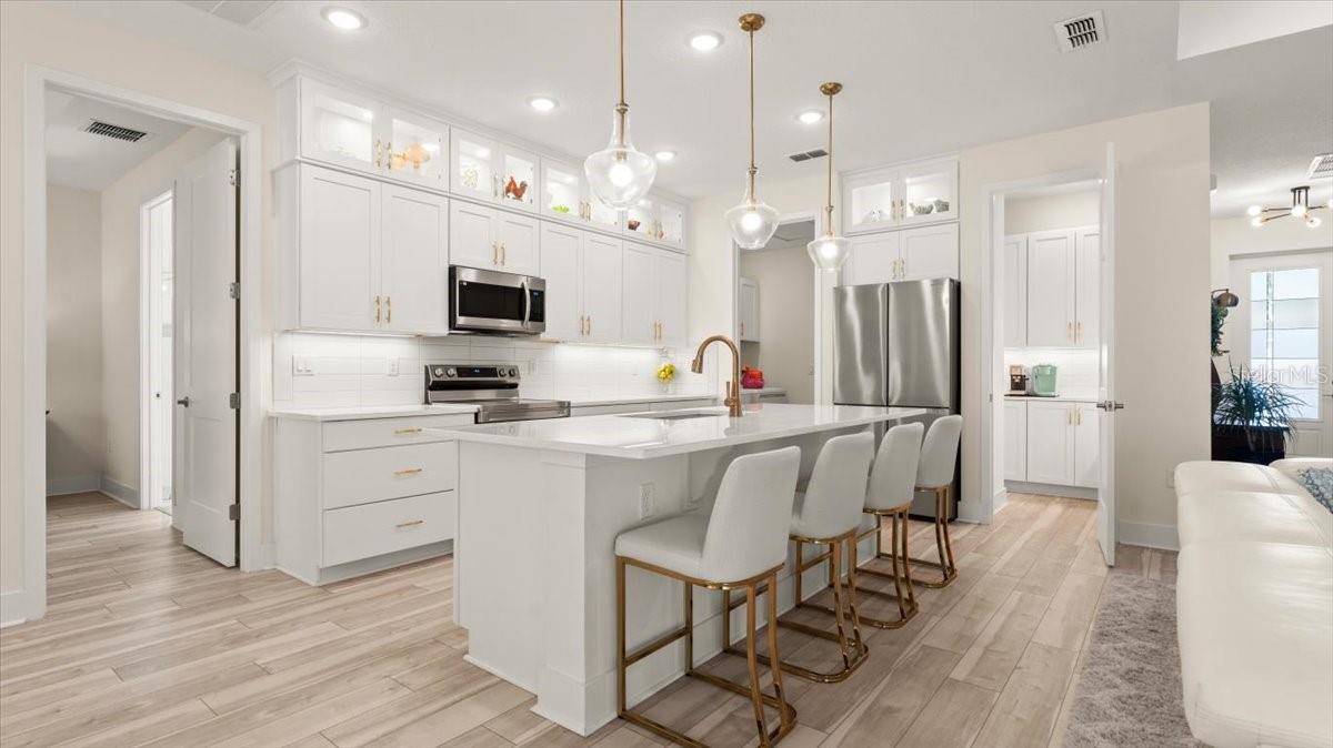Localizado na procurada plantação de Halifax, esta impressionante casa unifamiliar de 4 quartos e 3 banheiros, construída em 2023, oferece elegância moderna e design pensativo. Situado em um estacionamento arborizado premium para a Bulow Creek Reserve, esta casa fornece privacidade e vistas serenas naturais. Uma espaçosa garagem de 3 carros oferece amplo armazenamento e conveniência. No interior, você encontrará portas internas de 8 pés, pisos de tábuas de vinil de luxo e tetos de bandeja lindamente decorados na área de estar e suíte master. A cozinha gourmet apresenta armários superiores de vidro iluminados e uma despensa espaçosa de mordomo, perfeita para entretenimento. Todos os três banheiros estão totalmente ladrilhos no teto, aprimorando seu design elegante. Dois quartos privados oferecem flexibilidade e conforto, enquanto o armário mestre personalizado e o chuveiro mestre de vidro contínuo adicionam um toque de luxo. Destaques adicionais incluem armários na lavanderia e um layout cuidadosamente projetado que combina estilo com funcionalidade.