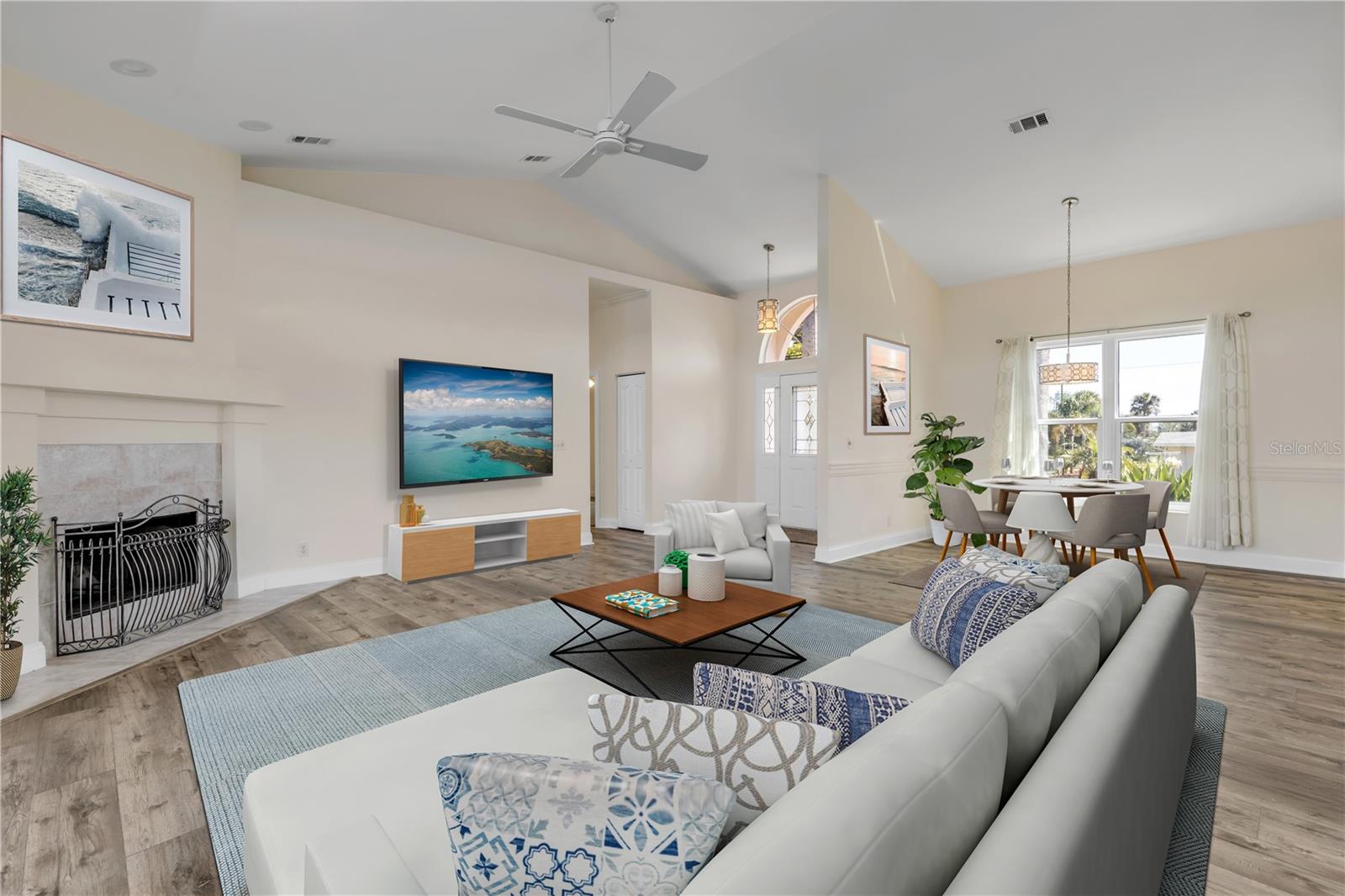 Uma ou mais fotos foram praticamente encenadas. Esta linda casa contemporânea fica bem acima da hidrovia intracoastal no cobiçado corredor John Anderson. Oferece vistas panorâmicas fabulosas de um ponto de vista elevado único, como se cantilasse sobre o magnífico rio Halifax. Construído sob medida em 1997 para um proprietário que busca a orla de baixa manutenção que vive em um nível elevado; Inclui uma sala de bônus cavernosa de nível inferior. No espaçoso piso principal, 3 quartos e 2 banheiros ao redor de uma bela sala e lareira à beira do rio. A sala de estar e a sala de jantar estão abertas para a fabulosa cozinha de comer, criando um espaço fenomenal cheio de luz sob tetos abobadados, com várias portas francesas se abrindo diretamente para a nova varanda da varanda à beira-mar brasileira da Alfândega (IPE). A suíte primária ocupa o extremo sul da casa, com portas francesas para a varanda, um espaçoso closet e um banheiro completamente renovado com vaidades elevadas desejáveis, armário de água e novo chuveiro de mármore (2023). Dois quartos adicionais compartilham um banheiro reformado no lado oposto da casa, oferecendo aos hóspedes privacidade em uma asa separada. O segundo quarto tem vista para a água com portas francesas. O terceiro quarto vê o jardim da frente e possui uma cama de Murphy embutida para opções multiuso. A cozinha gourmet apresenta aparelhos atualizados com fornos duplos, bancadas de pedra sobre armários personalizados, uma despensa, uma barra de café da manhã e um recanto de café da manhã à beira-mar. A despensa/sala de serviços públicos e lavanderia nas proximidades flanqueiam a cozinha no topo de uma escada curta para a garagem de mais de 2 carros. A sala de bônus exclusiva de 27 'por 65' adjacente oferece infinitas possibilidades. Pode ser aberto para ser um "celeiro de brinquedo" para coleção de veículos ou usado como hobby, mídia ou sala de jogos. Abaixo da varanda, uma nova cozinha externa personalizada (2022) apresenta utensílios de aço inoxidável viking (grelha, queimador lateral, geladeira e forno fumante) e uma bancada de granito. A doca de águas profundas tem um elevador de barco e um deck largo para pescar ou tomar sol, uma escada de natação de alumínio e sistema de lançamento/rack de caiaque para Esportes aquáticos são divertidos. A frente é complementada com suculentas nativas, palmeiras, uma cerca branca e estacionamento de nova pavimentadora (2022). Esta casa é apresentada em uma condição imaculada de chave, pronta para ocupação imediata. Os recursos adicionais incluem: pintura de toda a casa externa e interior fresca (2023); nova varanda de madeira IPE com trilhos invisíveis de haste de aço inoxidável (2023); novo carpete (2023); novas luzes de teto LED (2023); novo painel elétrico (2022); Novo janelas com classificação de tempestades (2019); novo ar condicionado (2019); e telhado mais recente (2017). NOVOS APARECIMENTOS DE CONUTAÇÃO: OULTO COMBO DE COMBO DO PERFIL DE PERSILHO, LASTER DE MAIS DE MAIS DE LAVÃO E GETURA. As vistas do rio, a fina ilha natural na costa oposta, e a bacia do rio Tomoka além de se acreditarem!