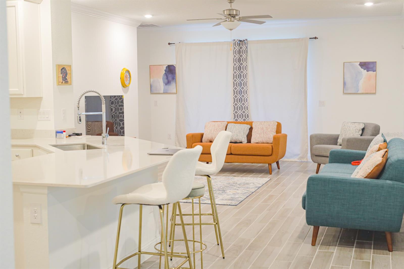 Planta espaçosa em conceito aberto e com muita luz natural. Piso em madeira em todas as áreas comuns, com carpete nos quartos. Bancadas de quartzo em toda a casa. Cozinha grande e aberta com armários brancos, pia grande embaixo da montagem, eletrodomésticos de aço inoxidável, despensa e área de café da manhã. Muitos armários com bastante espaço de armazenamento. Esta casa possui dois quartos privativos com banheiros completos anexos, além de dois quartos de hóspedes. O quarto principal tem closet e um lindo banheiro completo com banheira separada e box amplo. Outras características incluem lavanderia e garagem para três carros. A propriedade é totalmente ajardinada e irrigada com sistema de aspersão automatizado. Para exibições, ligue para o proprietário para agendar um horário.