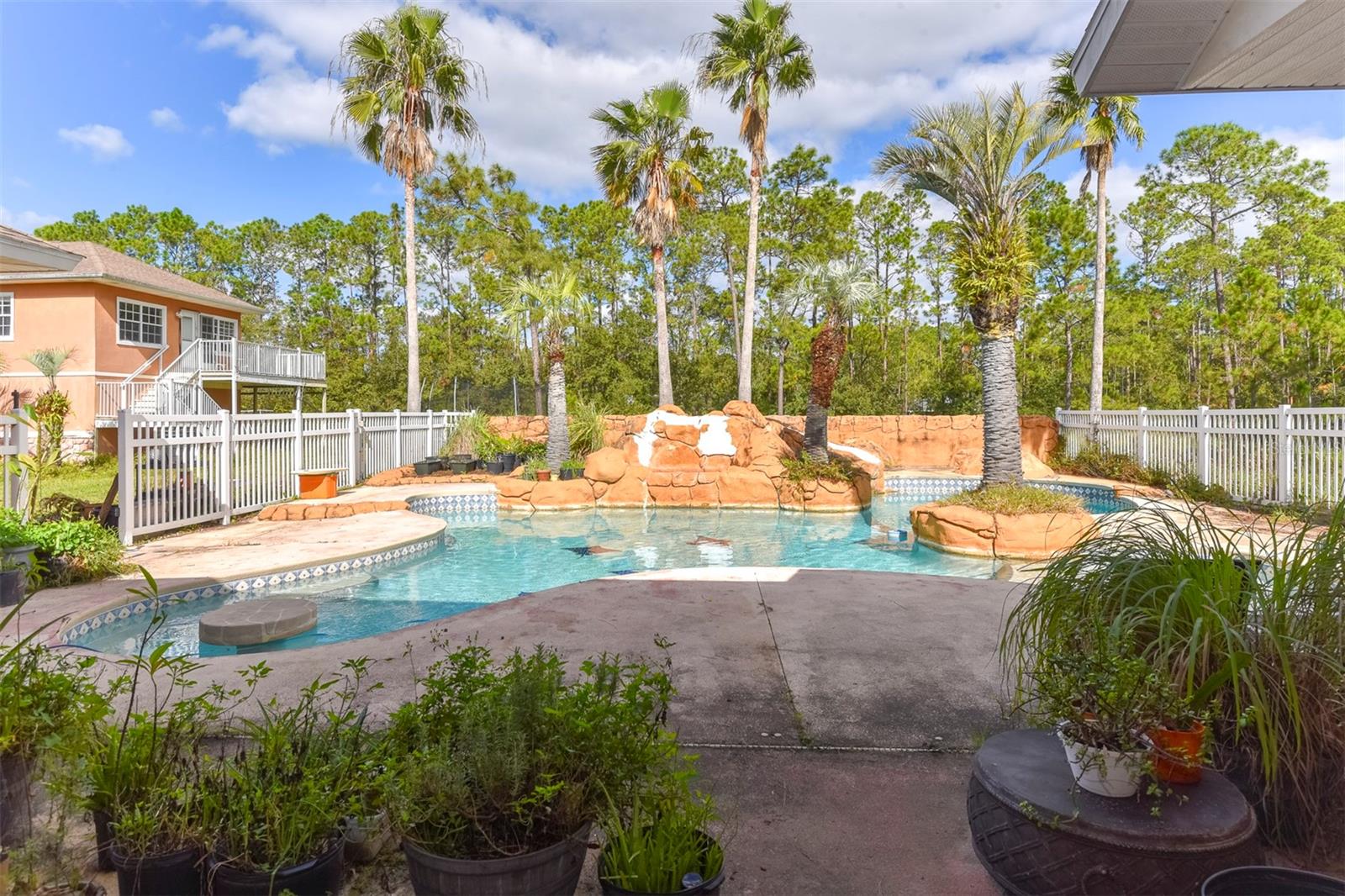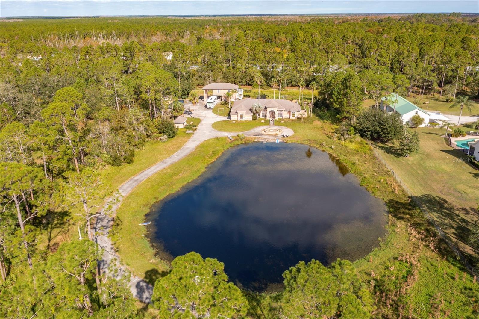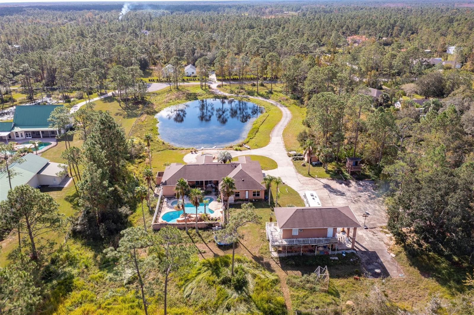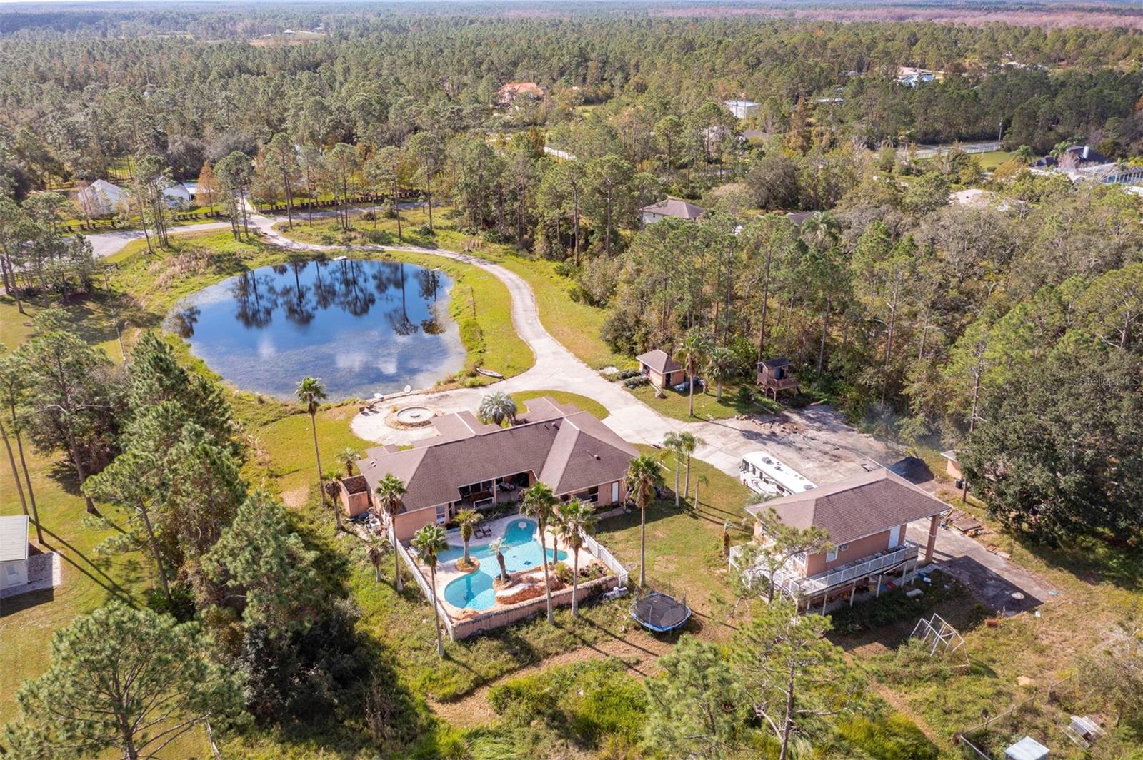 Bem-vindo à sua serena propriedade rural fechada de 4,5 acres, um verdadeiro santuário situado em um ambiente tranquilo, a apenas 20 minutos da vibrante Ormond Beach. À medida que você se aproxima, uma longa entrada privada serpenteia graciosamente ao redor de um pitoresco lago alimentado por uma nascente, culminando em uma fonte que dá as boas-vindas a esta residência deslumbrante. Entre na ampla casa de planta dividida de 2.800 pés quadrados, onde uma abundância de luz natural preenche a área de estar, criando uma atmosfera convidativa. Desfrute de vistas deslumbrantes da piscina externa em estilo resort tropical, completa com uma jacuzzi relaxante, uma cachoeira dramática, entrada para a praia e um toboágua emocionante criado a partir de formações rochosas lindamente projetadas. À esquerda fica a cozinha dos sonhos de um chef, com bancadas de granito, armários de madeira e um aconchegante bar para reuniões casuais. A cozinha flui perfeitamente para a sala de estar formal, que possui uma lareira aconchegante e dá continuidade ao tema das vistas deslumbrantes da piscina, tornando-a um local perfeito para entreter ou relaxar com seus entes queridos. O amplo quarto principal e o banheiro incluem banheira de hidromassagem com vista para as cachoeiras rochosas, chuveiro privativo e vaso sanitário. As características adicionais desta propriedade excepcional incluem tetos altos, uma grande lavanderia completa com pia e amplo estacionamento para os hóspedes. Uma unidade de armazenamento independente oferece o espaço perfeito para estacionar quadriciclos e equipamentos externos. Para maior versatilidade, um apartamento separado de um quarto e dois banheiros ou suíte de sogros o aguarda, completo com cozinha própria e varanda com vista para a tranquila propriedade, oferecendo privacidade e conforto para hóspedes ou familiares. Abaixo do apartamento, estacionamento coberto para trailers com amplificador de 50 W e garagem para dois carros proporcionam comodidade para todas as suas necessidades recreativas. Convenientemente localizada no final de uma rua sem saída com servidões de privacidade nos lados oeste e norte, esta propriedade captura a essência da vida tranquila no campo, ao mesmo tempo que oferece uma variedade de opções de armazenamento e amplo espaço de convivência. Com a sua envolvente pitoresca e potencial abundante, esta propriedade rural está pronta para que a pessoa certa a dê vida com amor e carinho. Não perca esta oportunidade de criar o retiro dos seus sonhos!