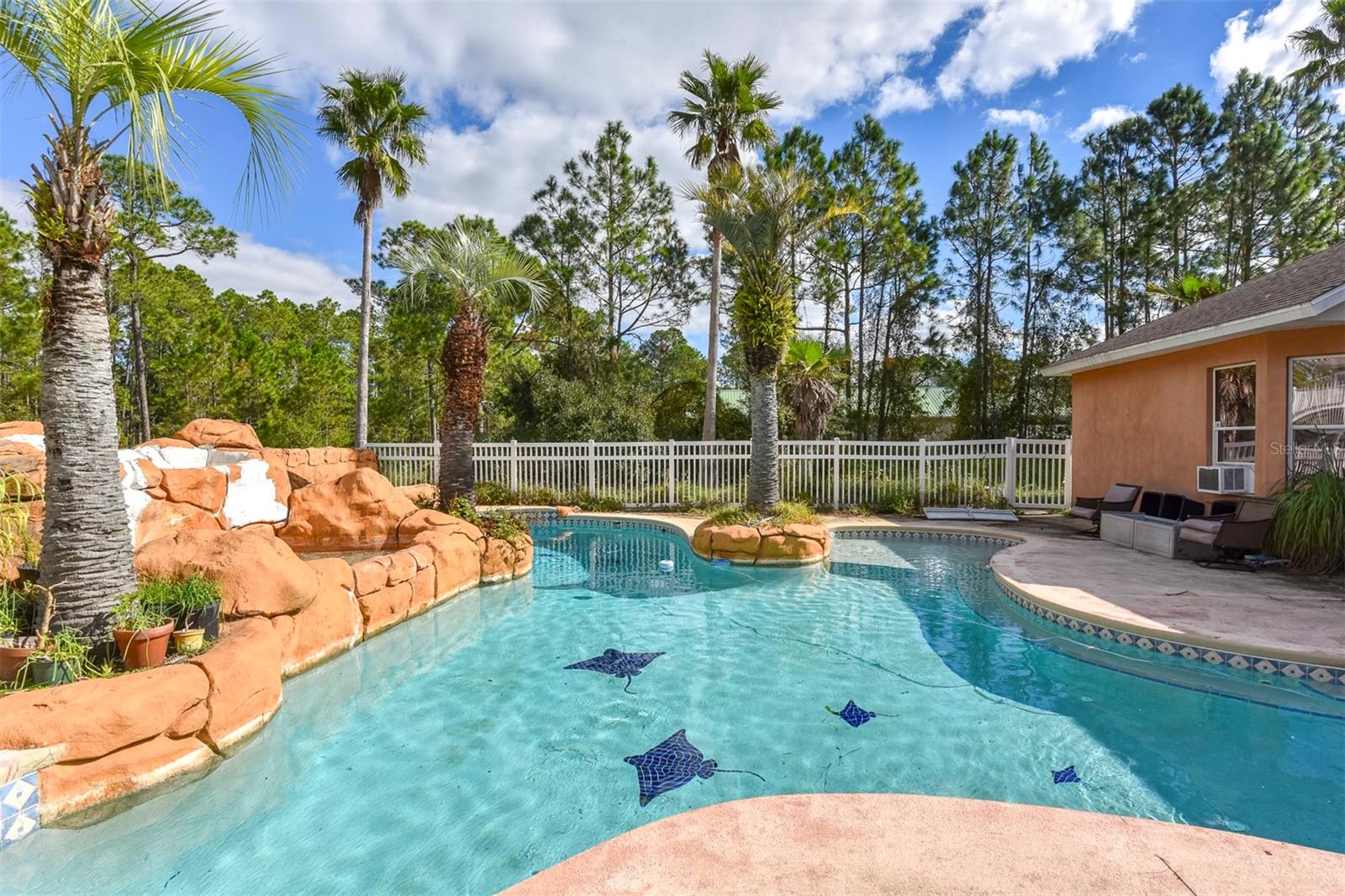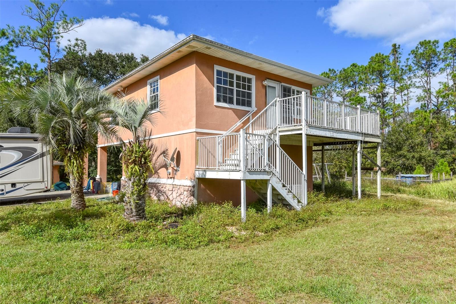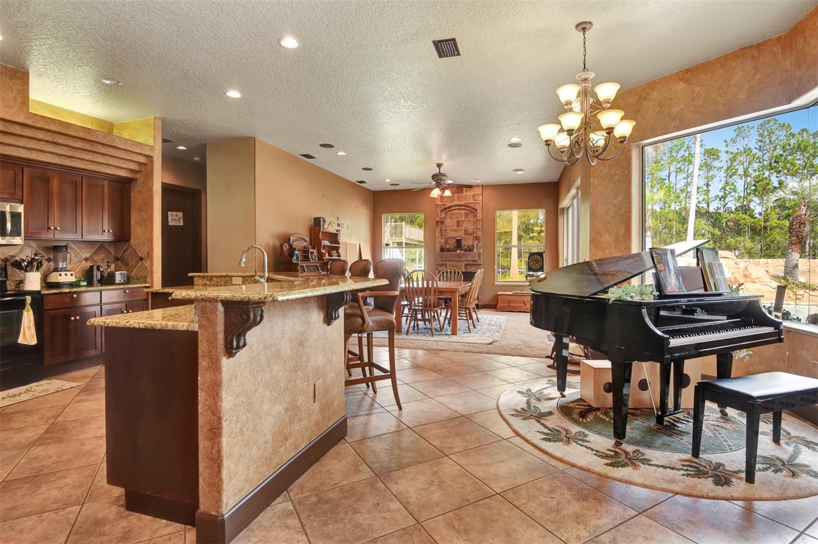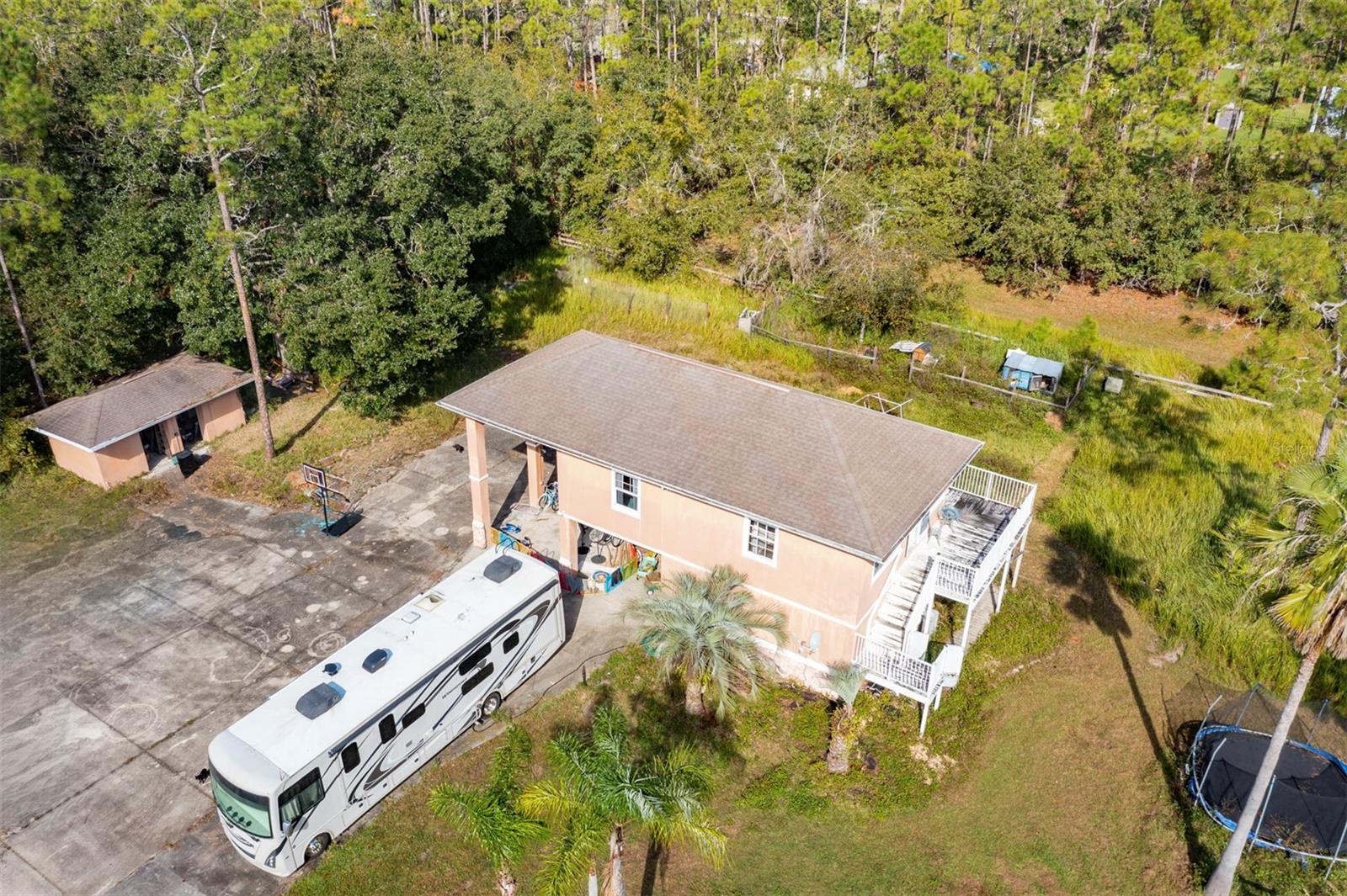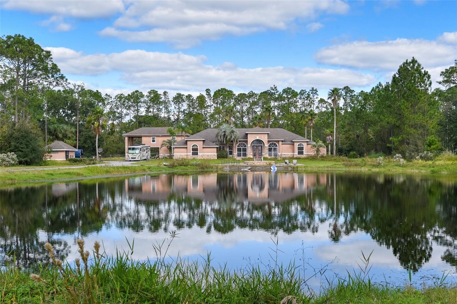 Bem-vindo à sua serena propriedade rural fechada de 4,5 acres, um verdadeiro santuário situado em um ambiente tranquilo, a apenas 20 minutos da vibrante Ormond Beach. À medida que você se aproxima, uma longa entrada privada serpenteia graciosamente ao redor de um pitoresco lago alimentado por uma nascente, culminando em uma fonte que dá as boas-vindas a esta residência deslumbrante. Entre na ampla casa de planta dividida de 2.800 pés quadrados, onde uma abundância de luz natural preenche a área de estar, criando uma atmosfera convidativa. Desfrute de vistas deslumbrantes da piscina externa em estilo resort tropical, completa com uma jacuzzi relaxante, uma cachoeira dramática, entrada para a praia e um toboágua emocionante criado a partir de formações rochosas lindamente projetadas. À esquerda fica a cozinha dos sonhos de um chef, com bancadas de granito, armários de madeira e um aconchegante bar para reuniões casuais. A cozinha flui perfeitamente para a sala de estar formal, que possui uma lareira aconchegante e dá continuidade ao tema das vistas deslumbrantes da piscina, tornando-a um local perfeito para entreter ou relaxar com seus entes queridos. O amplo quarto principal e o banheiro incluem banheira de hidromassagem com vista para as cachoeiras rochosas, chuveiro privativo e vaso sanitário. As características adicionais desta propriedade excepcional incluem tetos altos, uma grande lavanderia completa com pia e amplo estacionamento para os hóspedes. Uma unidade de armazenamento independente oferece o espaço perfeito para estacionar quadriciclos e equipamentos externos. Para maior versatilidade, um apartamento separado de um quarto e dois banheiros ou suíte de sogros o aguarda, completo com cozinha própria e varanda com vista para a tranquila propriedade, oferecendo privacidade e conforto para hóspedes ou familiares. Abaixo do apartamento, estacionamento coberto para trailers com amplificador de 50 W e garagem para dois carros proporcionam comodidade para todas as suas necessidades recreativas. Convenientemente localizada no final de uma rua sem saída com servidões de privacidade nos lados oeste e norte, esta propriedade captura a essência da vida tranquila no campo, ao mesmo tempo que oferece uma variedade de opções de armazenamento e amplo espaço de convivência. Com a sua envolvente pitoresca e potencial abundante, esta propriedade rural está pronta para que a pessoa certa a dê vida com amor e carinho. Não perca esta oportunidade de criar o retiro dos seus sonhos!