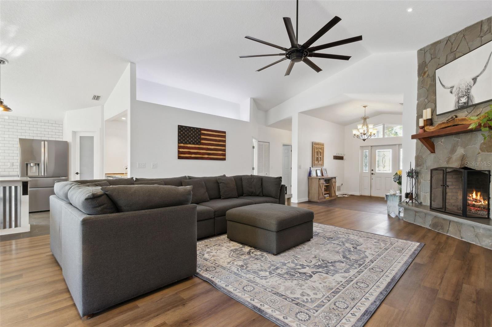 Fuja para esta impressionante propriedade de 20 acres e zonas agrícolas a poucos minutos da I-95 e da Ormond Beach !!! Esta casa espaçosa bem mantida oferece uma planta baixa com 3 quartos, 2 banheiros com menos de 2.236 pés quadrados. Enquanto você entra, você é recebido com uma grande área de estar aberta com uma lareira a lenha. A cozinha recentemente atualizada, com novos aparelhos, oferece amplo espaço, com um com comer na cozinha e um bar molhado, ideal para reuniões familiares e refeições casuais para famílias e convidados divertidos. Retire-se para o grande quarto primário com duplos armários e portas francesas que levam à tela grande em Lanai, oferecendo uma experiência perfeita para a vida inteira fora do interior. Aproveite a conveniência de uma caminhada no chuveiro e na banheira de jardim no banheiro principal. As portas francesas levam você a uma tela de grandes dimensões em Lanai e uma área de quintal totalmente cercada permite privacidade extra e seus animais de estimação vagam livremente em um espaço seguro. A garagem possui ar condicionado e calor, tornando-o perfeito para uso durante todo o ano. Mantenha -o funcional criando uma academia, espaço de escritório ou até mesmo um workshop. Desfrute de nadares refrescantes e diversão no verão na exibição na piscina. A casa foi atualizada com novos pisos e A/C em 2019. Recursos adicionais ao ar livre incluem: 2 pontos de RV com um novo galpão de lavadora/secadora com potencial para renda gerada, trilhas para caminhar, várias lagoas de pesca grandes, pista de bicicleta de terra privada, pistola Range, 7 acres cercados, galinheiros, jardim com estufa, grande loja com porto de carro de grandes dimensões e um apartamento adjacente que pode gerar renda adicional. Esta bela propriedade oferece inúmeras oportunidades para quem procura privacidade, aventura e vida no campo!