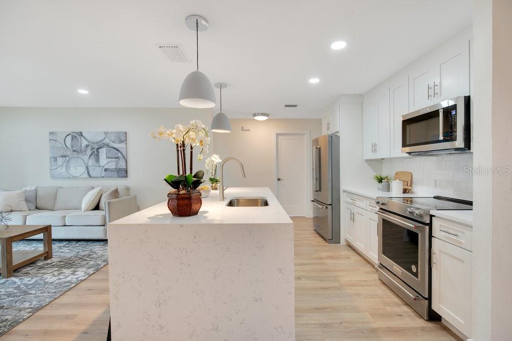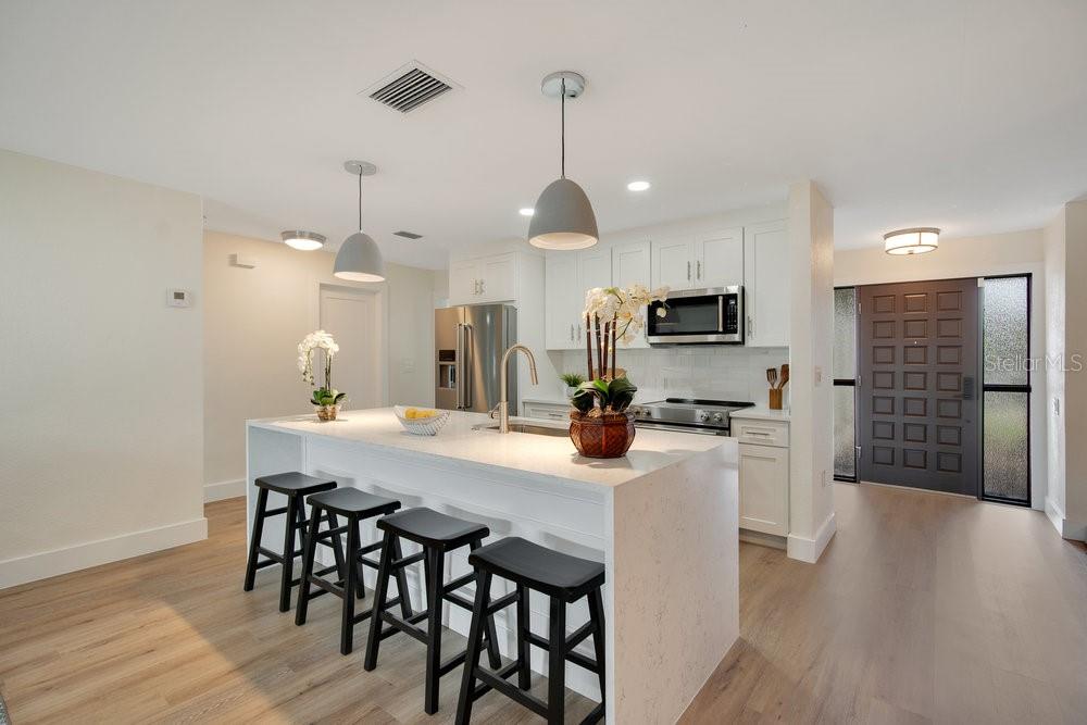 Bem -vindo a Seabridge, um bairro extraordinário do outro lado da rua de uma linda praia relaxante. Sua elegante escapada oceânica foi remodelada recentemente usando acabamentos de ponta para complementar qualquer estilo de vida. As atualizações notáveis incluem um telhado mais recente, janelas com eficiência energética, novo sistema HVAC e painel elétrico. À primeira vista, você notará imediatamente o incrível apelo do meio-fio com paisagismo bem cuidado, tinta fresca, fachada de pedra natural e uma entrada convidativa de receber você e seus convidados. Toda a casa é adornada com pisos duráveis, perfeitos para banhistas. A cozinha está totalmente equipada com uma grande ilha central, iluminação pendente, contadores de quartzo com design de cascata, armários de fechamento suaves, utensílios de aço inoxidável de ajuda de cozinha e é convenientemente aberto à sala de estar e de jantar. A suíte primária é espaçosa com uma porta de celeiro, levando você ao seu próprio banho atraente, incluindo um chuveiro de vidro, vaidades de mármore duplas e espelhos circulares LED. Os quartos secundários também são espaçosos com seus próprios armários. Sente -se, relaxe e entregue sua sala da Flórida inundada de luz natural das grandes janelas de retratos com um teto de madeira abobadado e um rastreado adjacente em Lanai para aproveitar o clima incrível. Prepare -se para aproveitar tudo o que sua nova casa de praia tem a oferecer. Esta casa é a mão, não é morada desde a remodelação e esperando por você.