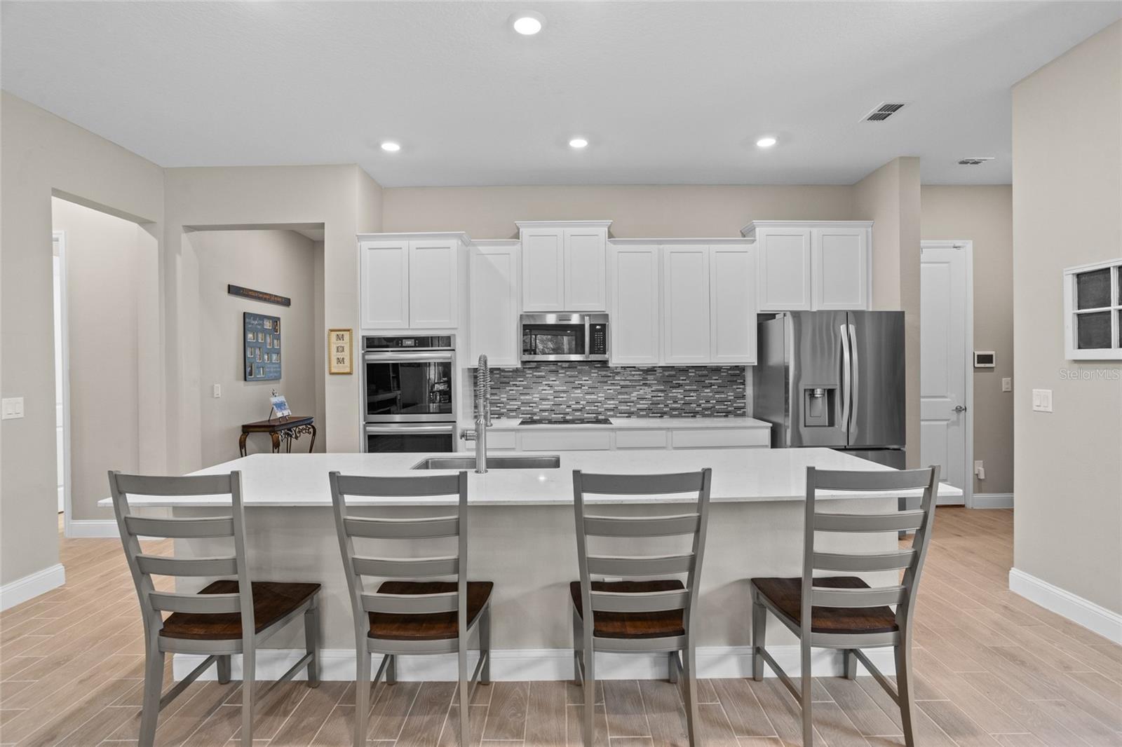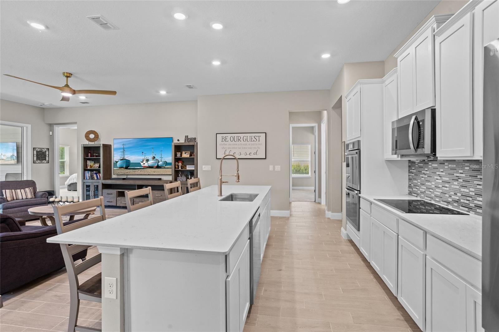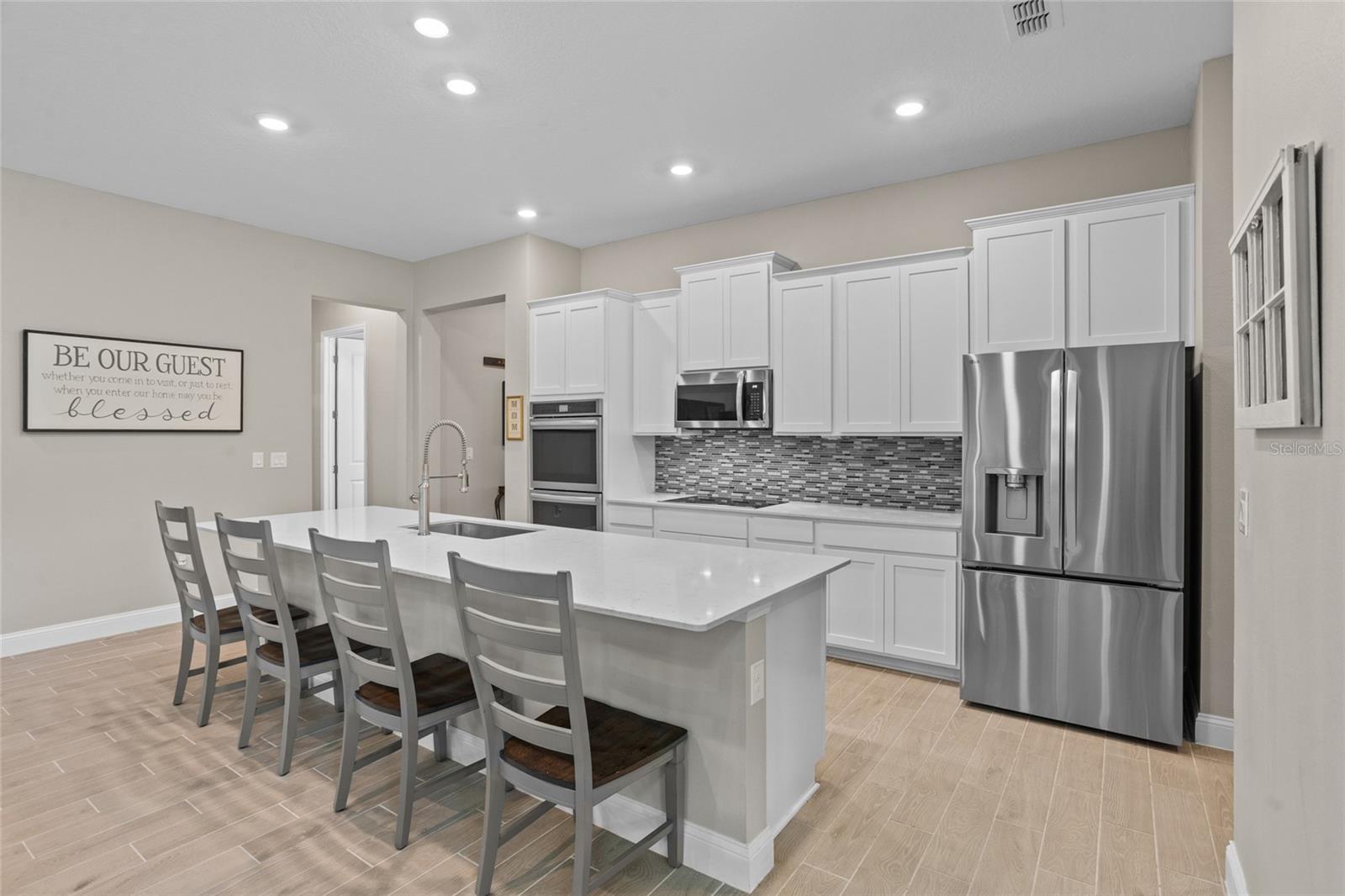Bem-vindo a esta casa lindamente mantida, quase uma nova casa no estilo da fazenda, aninhada em um ambiente tranquilo da Flórida. Construído apenas três anos atrás, esta espaçosa casa de 4 quartos e 3 banheiros combina design moderno com conforto e funcionalidade atemporais. Entre para descobrir um layout de conceito aberto cheio de luz natural, tetos altos e acabamentos elegantes por toda parte. A cozinha gourmet possui armários elegantes, utensílios de aço inoxidável, uma grande ilha e bancadas de quartzo - perfeitas para entretenimento e vida cotidiana. A planta piso de quarto dividido oferece privacidade e flexibilidade, com uma luxuosa suíte primária com um closet e um banho de suíte, semelhante a um spa. Três quartos adicionais e dois banheiros fornecem amplo espaço para a família ou os hóspedes. O espaço flexível adicional pode ser uma sala de hobby, sala de jogos ou escritório em casa. Desfrute de uma vida interior sem costura que vive com portas de vidro deslizantes que levam a um lanai coberto-ideal para relaxar ou jantar ao ar livre. A propriedade inclui um quintal generoso, pronto para o seu toque pessoal. Localizado em um bairro conveniente com acesso a compras, escolas e belas praias da Flórida, esta casa está pronta e construída para impressionar. Não perca a chance de possuir uma casa de rancho moderna no paraíso - faça o seu show hoje!
