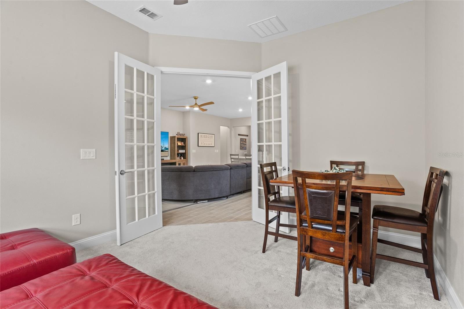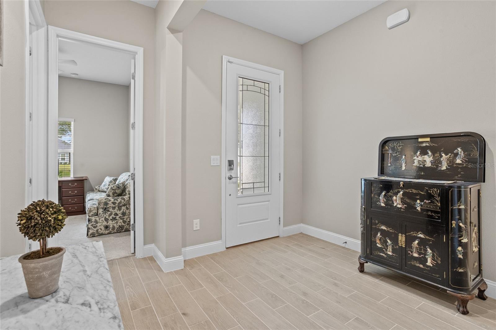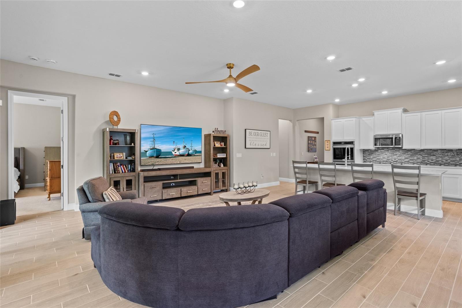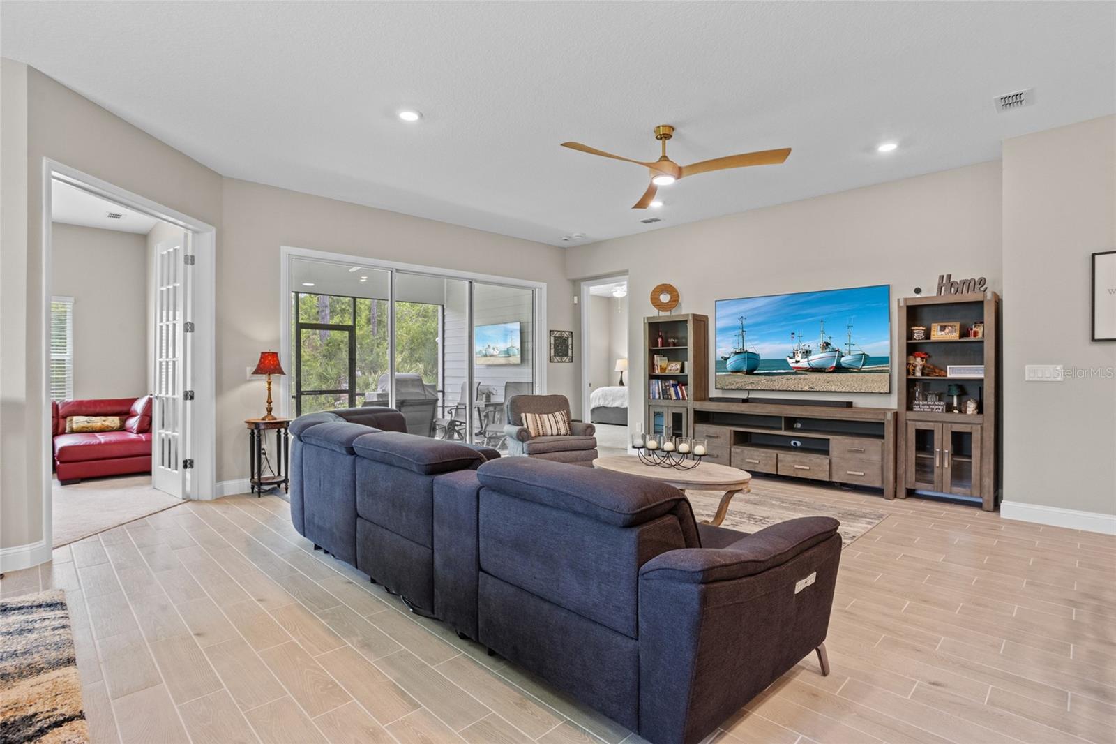 Bem-vindo a esta casa lindamente mantida, quase uma nova casa no estilo da fazenda, aninhada em um ambiente tranquilo da Flórida. Construído apenas três anos atrás, esta espaçosa casa de 4 quartos e 3 banheiros combina design moderno com conforto e funcionalidade atemporais. Entre para descobrir um layout de conceito aberto cheio de luz natural, tetos altos e acabamentos elegantes por toda parte. A cozinha gourmet possui armários elegantes, utensílios de aço inoxidável, uma grande ilha e bancadas de quartzo - perfeitas para entretenimento e vida cotidiana. A planta piso de quarto dividido oferece privacidade e flexibilidade, com uma luxuosa suíte primária com um closet e um banho de suíte, semelhante a um spa. Três quartos adicionais e dois banheiros fornecem amplo espaço para a família ou os hóspedes. O espaço flexível adicional pode ser uma sala de hobby, sala de jogos ou escritório em casa. Desfrute de uma vida interior sem costura que vive com portas de vidro deslizantes que levam a um lanai coberto-ideal para relaxar ou jantar ao ar livre. A propriedade inclui um quintal generoso, pronto para o seu toque pessoal. Localizado em um bairro conveniente com acesso a compras, escolas e belas praias da Flórida, esta casa está pronta e construída para impressionar. Não perca a chance de possuir uma casa de rancho moderna no paraíso - faça o seu show hoje!