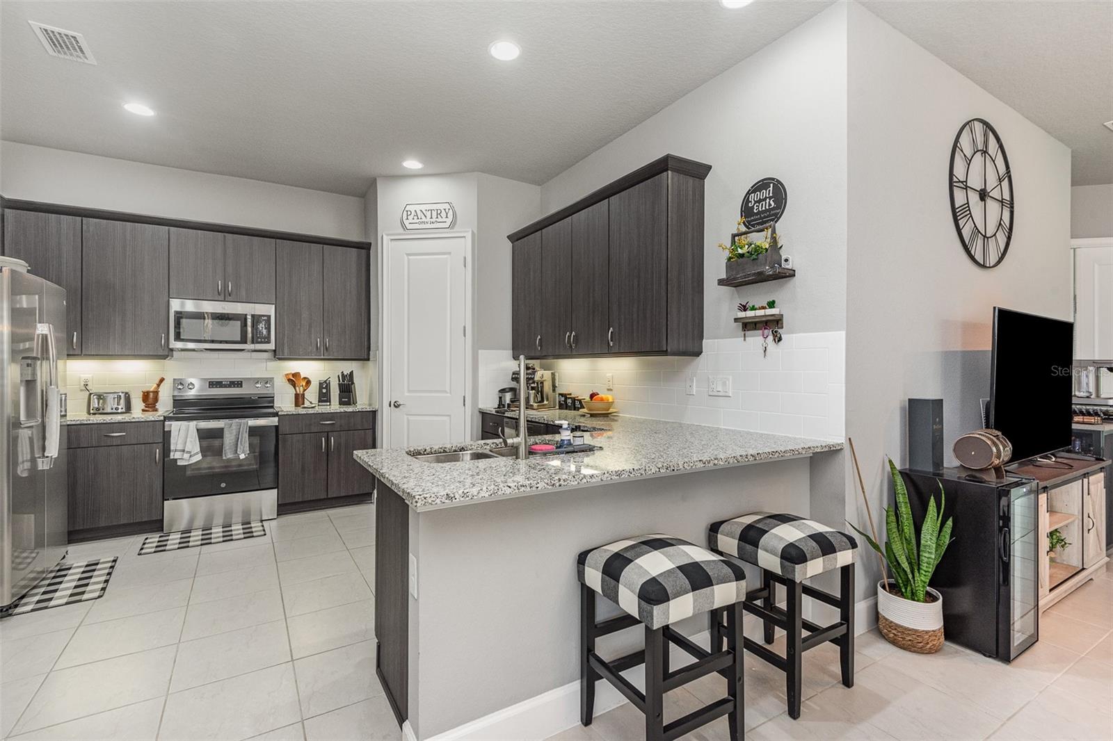 Linda unidade final com vida aberta, com pisos de azulejos de 21x21 e um lanai exibido na sala de estar. A cozinha oferece bancadas de quartzo, armários de madeira de 42 ”, gavetas em clínicas macias, prateleiras, utensílios de aço inoxidável e uma despensa de walk-in. Buracos de golfe, tênis, pickleball, piscinas, spa, fitness center e clubhouse.