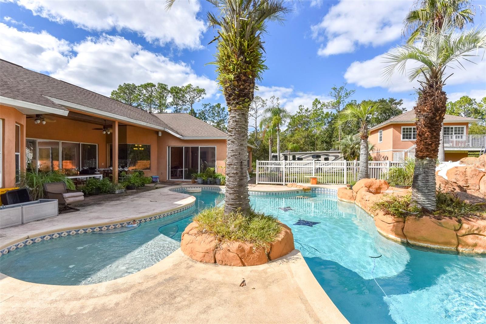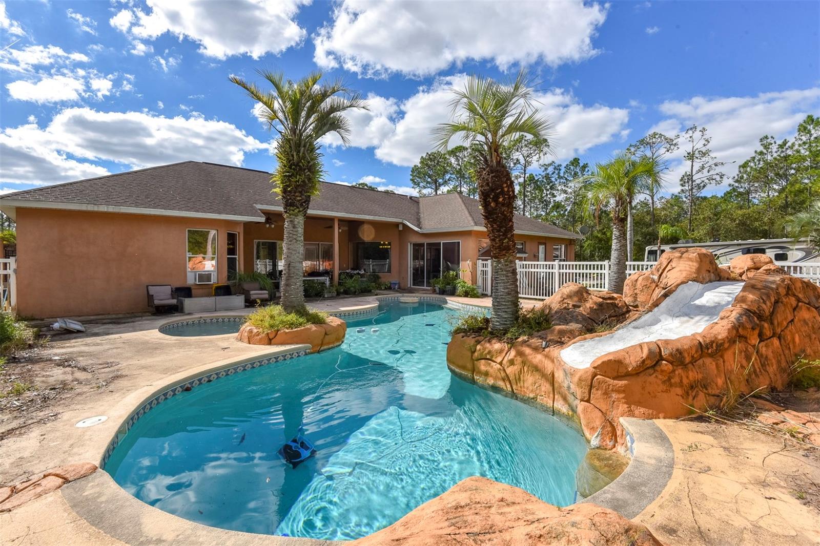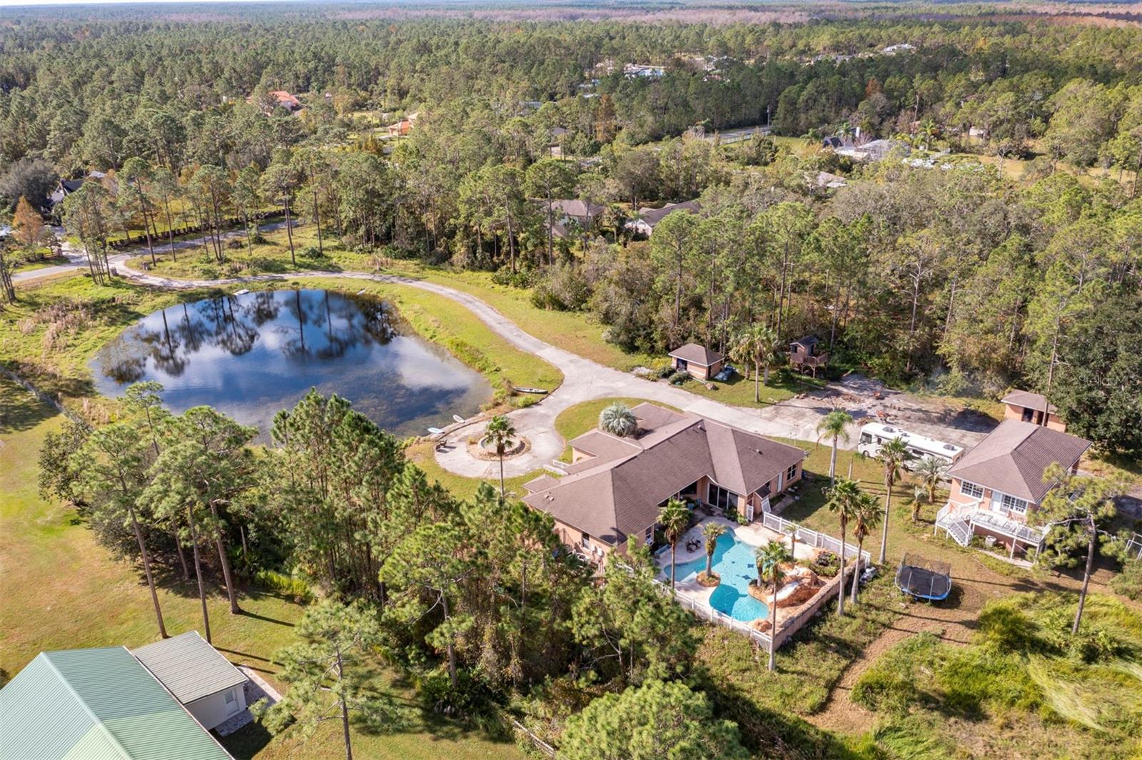 Bem-vindo ao seu sereno imobiliário de 4,5 acres, um verdadeiro santuário aninhado em um ambiente tranquilo, a apenas 20 minutos da vibrante praia de Ormond. À medida que você se aproxima, uma longa entrada de automóveis privada vento graciosamente em torno de um pitoresco lago de primavera, culminando em uma fonte que o recebe com esta residência deslumbrante. Entre na expansiva casa de plano dividido de 2.800 pés quadrados, onde uma abundância de luz natural enche o espaço de vida, criando uma atmosfera convidativa. Desfrute de vistas deslumbrantes da piscina ao ar livre no estilo tropical do resort, completo com um jacuzzi suave, uma cachoeira dramática, entrada na praia e um emocionante tobo esquisito criado a partir de formações rochosas lindamente projetadas. À esquerda, fica a cozinha dos sonhos de um chef, com bancadas em granito, armários de madeira e um aconchegante bar para reuniões casuais. A cozinha flui perfeitamente para a sala de estar formal, que possui uma lareira quente e continua o tema de vistas deslumbrantes da piscina, tornando -o um local perfeito para entreter ou relaxar com os entes queridos. O grande quarto principal e banheiro incluem uma banheira de hidromassagem com vista para as cachoeiras da rocha, chuveiro privado e armário de água. Os recursos adicionais desta propriedade excepcional incluem tetos altos, uma grande lavanderia completa com uma pia e um amplo estacionamento para os hóspedes. Uma unidade de armazenamento destacada fornece o espaço perfeito para estacionar ATVs e equipamentos externos. Para maior flexibilidade, a propriedade inclui um apartamento separado de um quarto, dois banheiros ou suíte de sogro, completo com sua própria cozinha e uma varanda com vista para os terrenos serenos-perfeitos para hóspedes ou família extensa. Combinado com a casa principal, isso eleva o total a 4 quartos e 4 banheiros, oferecendo quase 4.000 pés quadrados de espaço em ambas as estruturas. Abaixo do apartamento, o estacionamento coberto de trailers com um amplificador de 50 w e uma garagem para dois carros oferece conveniência para todas as suas necessidades recreativas. Convenientemente localizado no final de uma rua sem saída com servidões de privacidade nas laterais oeste e norte, essa propriedade captura a essência do país pacífico vivendo enquanto oferece uma variedade de opções de armazenamento e espaço amplo. Com seu ambiente pitoresco e potencial abundante, esta propriedade do país está pronta para que a pessoa certa o dê vida com amor e carinho. Não perca esta oportunidade de criar seu retiro dos sonhos!
