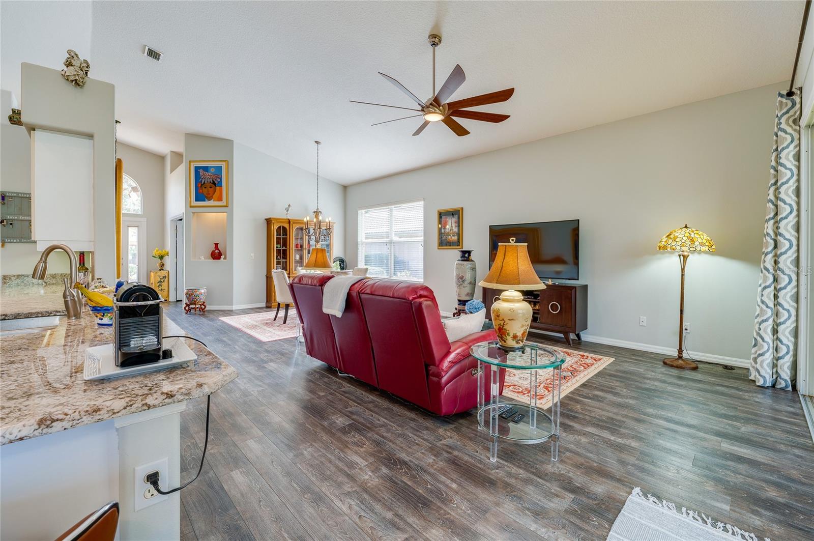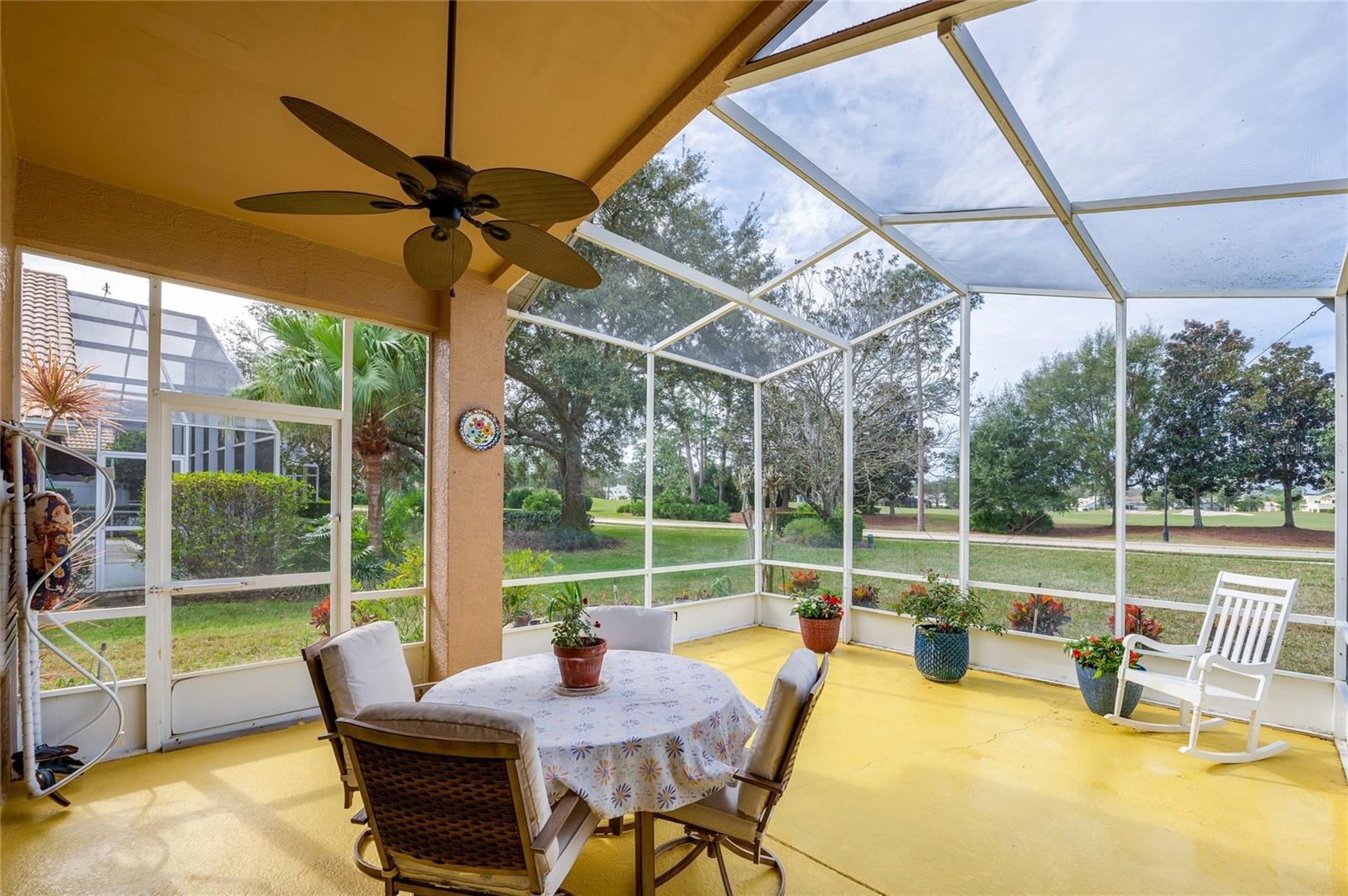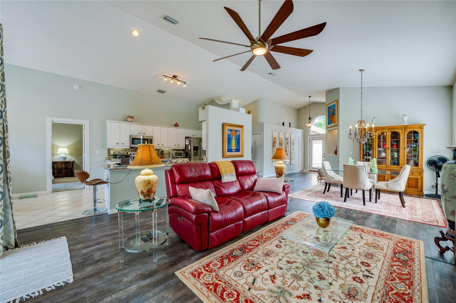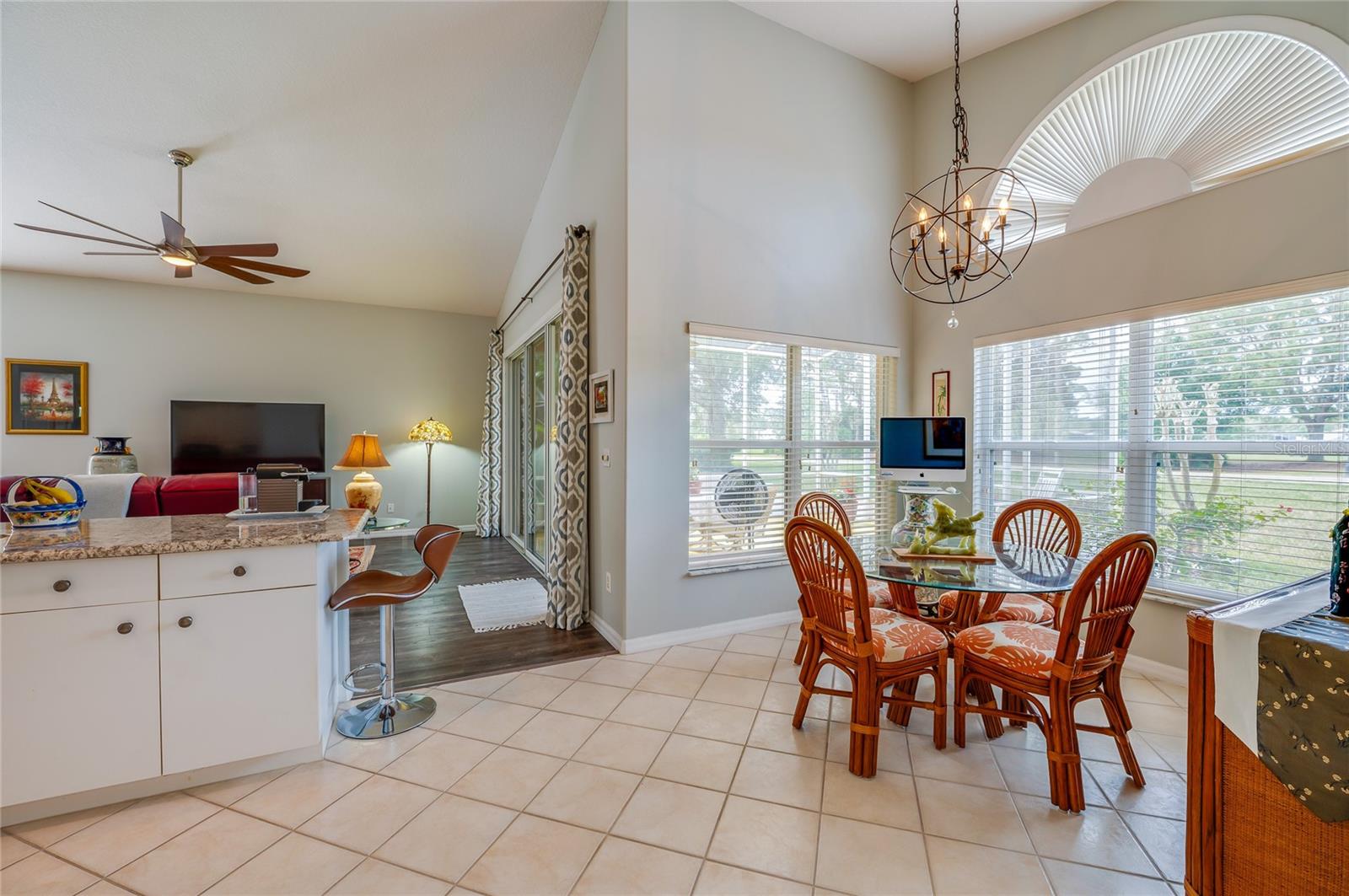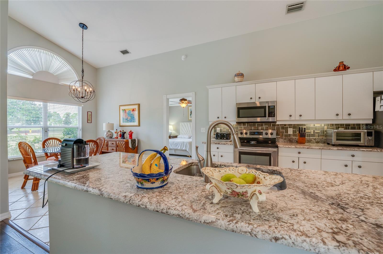Descubra o epítome do luxo que vive nesta casa de telhado de telha meticulosamente mantida, adornada com atualizações requintadas. Passe pela entrada da porta de vidro acolhedora na extensa planta aberta, com tetos altos. A cozinha é um paraíso culinário, com utensílios de aço inoxidável, um backsplash chique, bancadas em granito e uma conveniente bar de café da manhã. O recanto de café da manhã adjacente oferece vistas cativantes do campo de golfe e uma abundância de luz natural. Transição perfeitamente, a sala da família acena com piso de madeira, controles deslizantes para o Lanai e tetos altos impressionantes. A sala de jantar, adornada com um lustre, janela grande e piso contínuo em forma de madeira, oferece um espaço elegante para entretenimento. Retire para a suíte master particular, onde fresco ... Os tapetes sob os pés complementam o grande closet e o campo de golfe panorâmico. O banho de suíte é um santuário de conforto, com pias duplas, uma banheira de imersão e um chuveiro de ladrilhos de tamanho generoso. O segundo quarto, escondido com piso laminado, oferece um paraíso aconchegante. O segundo banho foi reformado com bom gosto com uma nova vaidade e uma elegante banheira/chuveiro. O terceiro quarto, perfeito para um escritório ou covil, acena na frente da casa com portas francesas, piso de aparência de madeira e vistas deliciosas do quintal da frente. Saia para saborear o cenário encantador de campos de golfe de sua extensa Lanai, e espaçoso quintal amplo espaço para uma piscina futura, se desejar! Esta residência possui paisagismo exuberante, teto de ladrilhos, interior atualizado, AC mais recente e um aquecedor de água quente recente. Aninhado dentro do condomínio fechado de Plantation Bay Golf and Country Club, os moradores têm a opção de elevar seu estilo de vida com uma associação exclusiva do clube do condado. Desfrute de comodidades como 45 buracos de golfe, tênis, 3 restaurantes, um centro de fitness/spa, pickleball e muito mais.