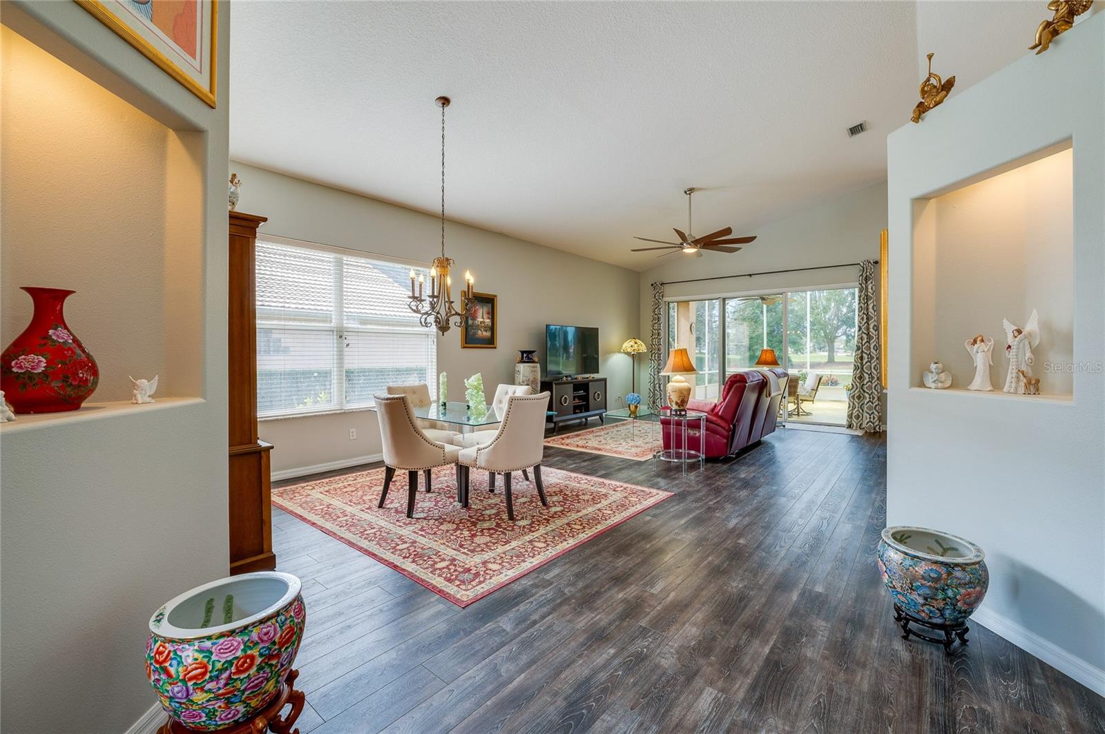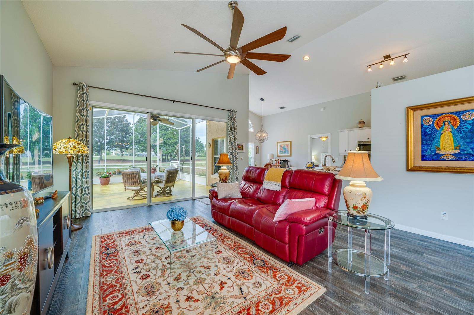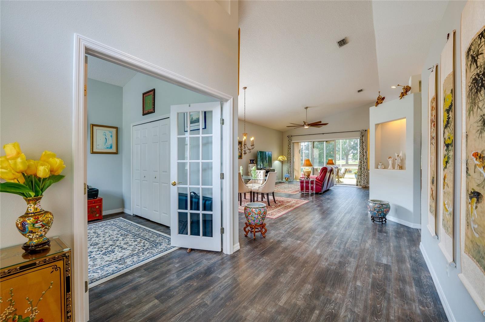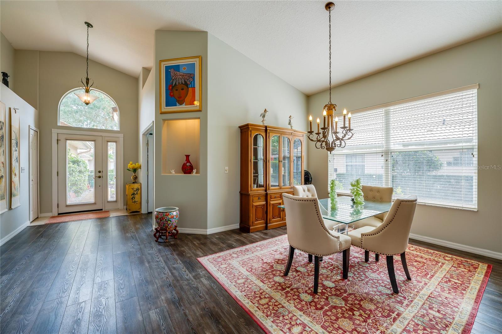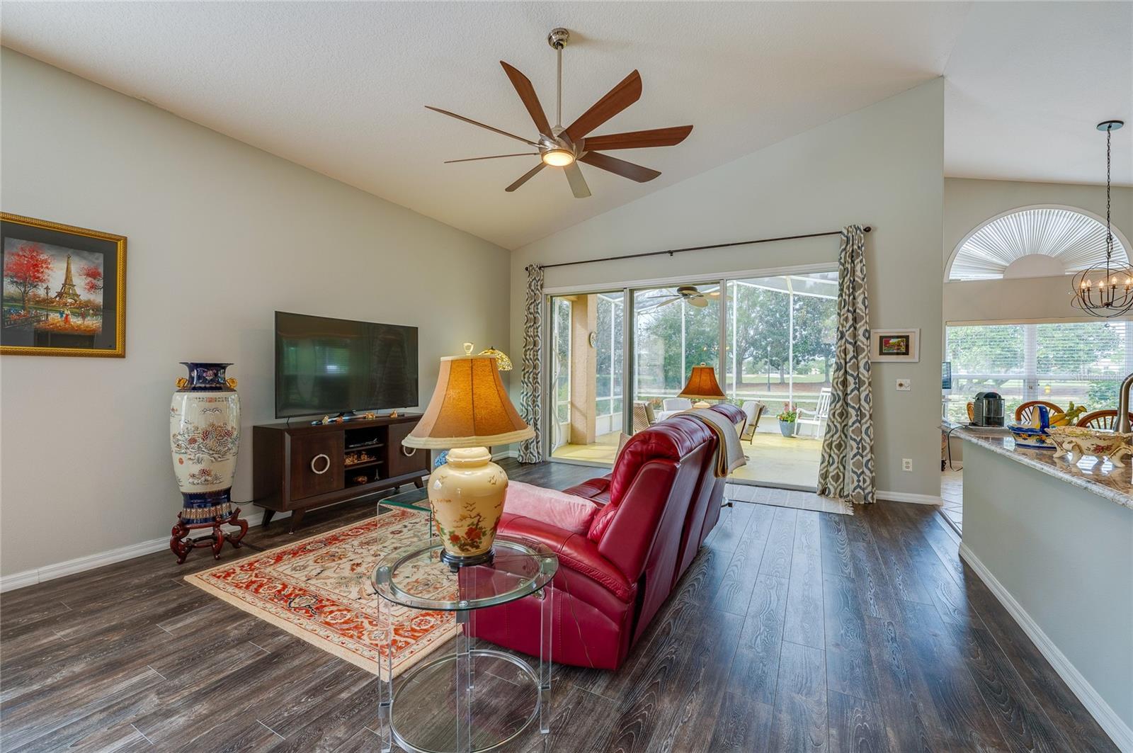 Descubra o epítome do luxo que vive nesta casa de telhado de telha meticulosamente mantida, adornada com atualizações requintadas. Passe pela entrada da porta de vidro acolhedora na extensa planta aberta, com tetos altos. A cozinha é um paraíso culinário, com utensílios de aço inoxidável, um backsplash chique, bancadas em granito e uma conveniente bar de café da manhã. O recanto de café da manhã adjacente oferece vistas cativantes do campo de golfe e uma abundância de luz natural. Transição perfeitamente, a sala da família acena com piso de madeira, controles deslizantes para o Lanai e tetos altos impressionantes. A sala de jantar, adornada com um lustre, janela grande e piso contínuo em forma de madeira, oferece um espaço elegante para entretenimento. Retire para a suíte master particular, onde fresco ... Os tapetes sob os pés complementam o grande closet e o campo de golfe panorâmico. O banho de suíte é um santuário de conforto, com pias duplas, uma banheira de imersão e um chuveiro de ladrilhos de tamanho generoso. O segundo quarto, escondido com piso laminado, oferece um paraíso aconchegante. O segundo banho foi reformado com bom gosto com uma nova vaidade e uma elegante banheira/chuveiro. O terceiro quarto, perfeito para um escritório ou covil, acena na frente da casa com portas francesas, piso de aparência de madeira e vistas deliciosas do quintal da frente. Saia para saborear o cenário encantador de campos de golfe de sua extensa Lanai, e espaçoso quintal amplo espaço para uma piscina futura, se desejar! Esta residência possui paisagismo exuberante, teto de ladrilhos, interior atualizado, AC mais recente e um aquecedor de água quente recente. Aninhado dentro do condomínio fechado de Plantation Bay Golf and Country Club, os moradores têm a opção de elevar seu estilo de vida com uma associação exclusiva do clube do condado. Desfrute de comodidades como 45 buracos de golfe, tênis, 3 restaurantes, um centro de fitness/spa, pickleball e muito mais.