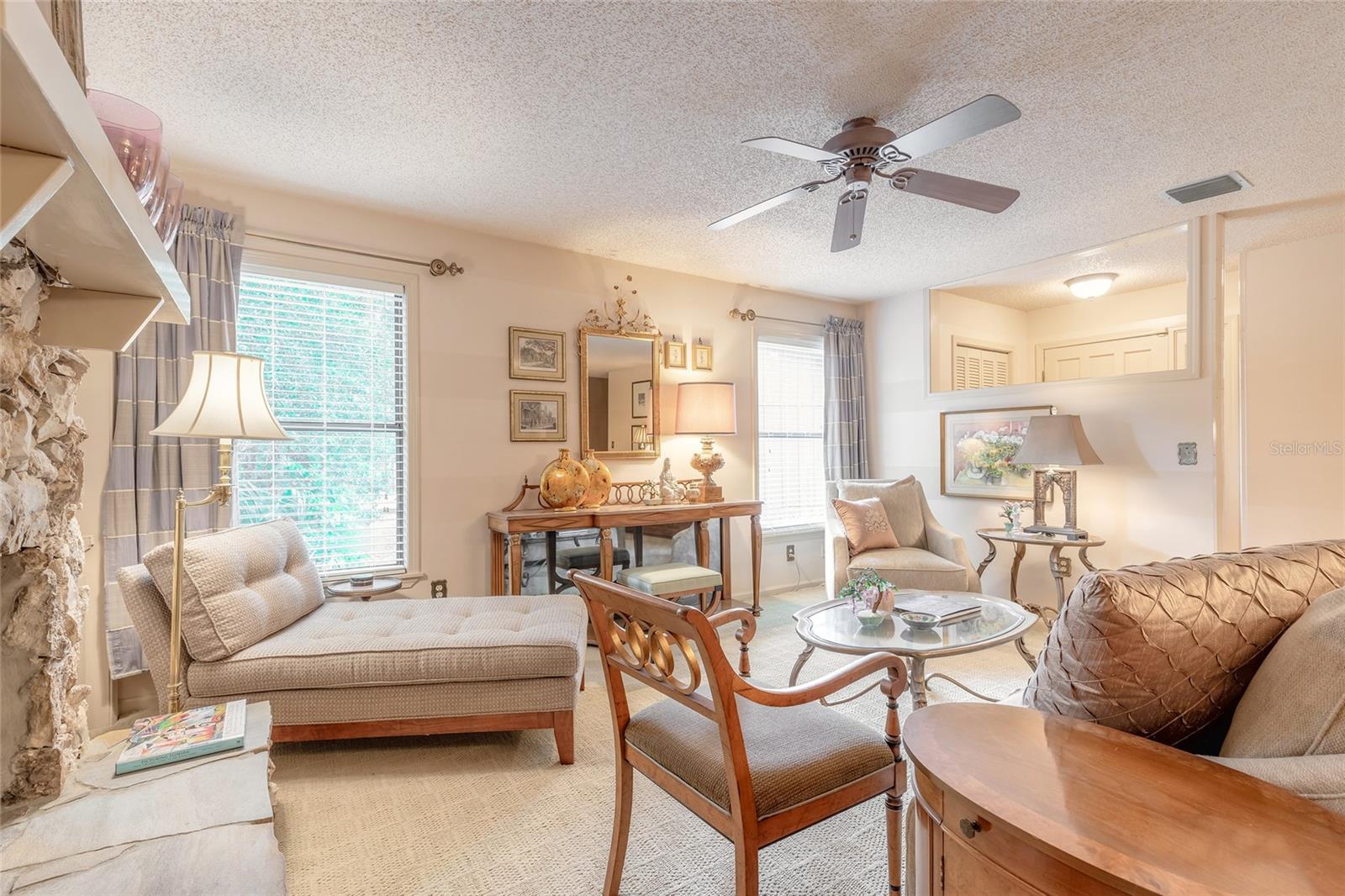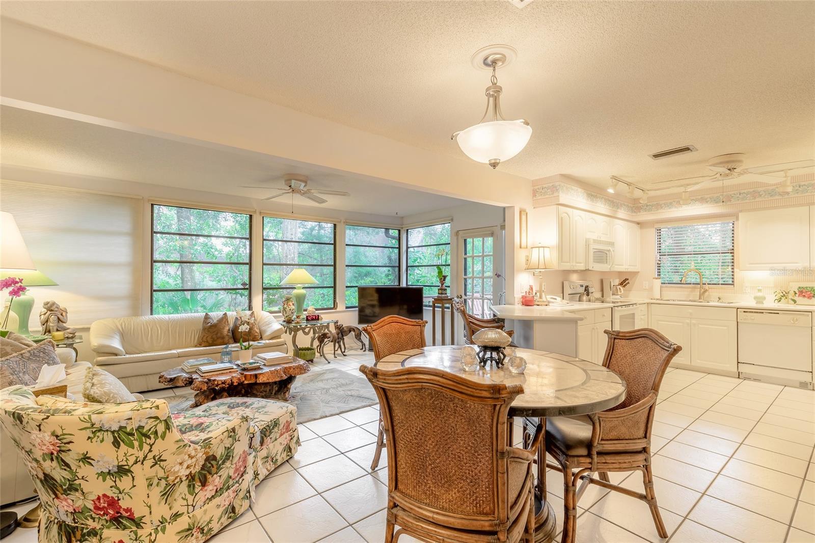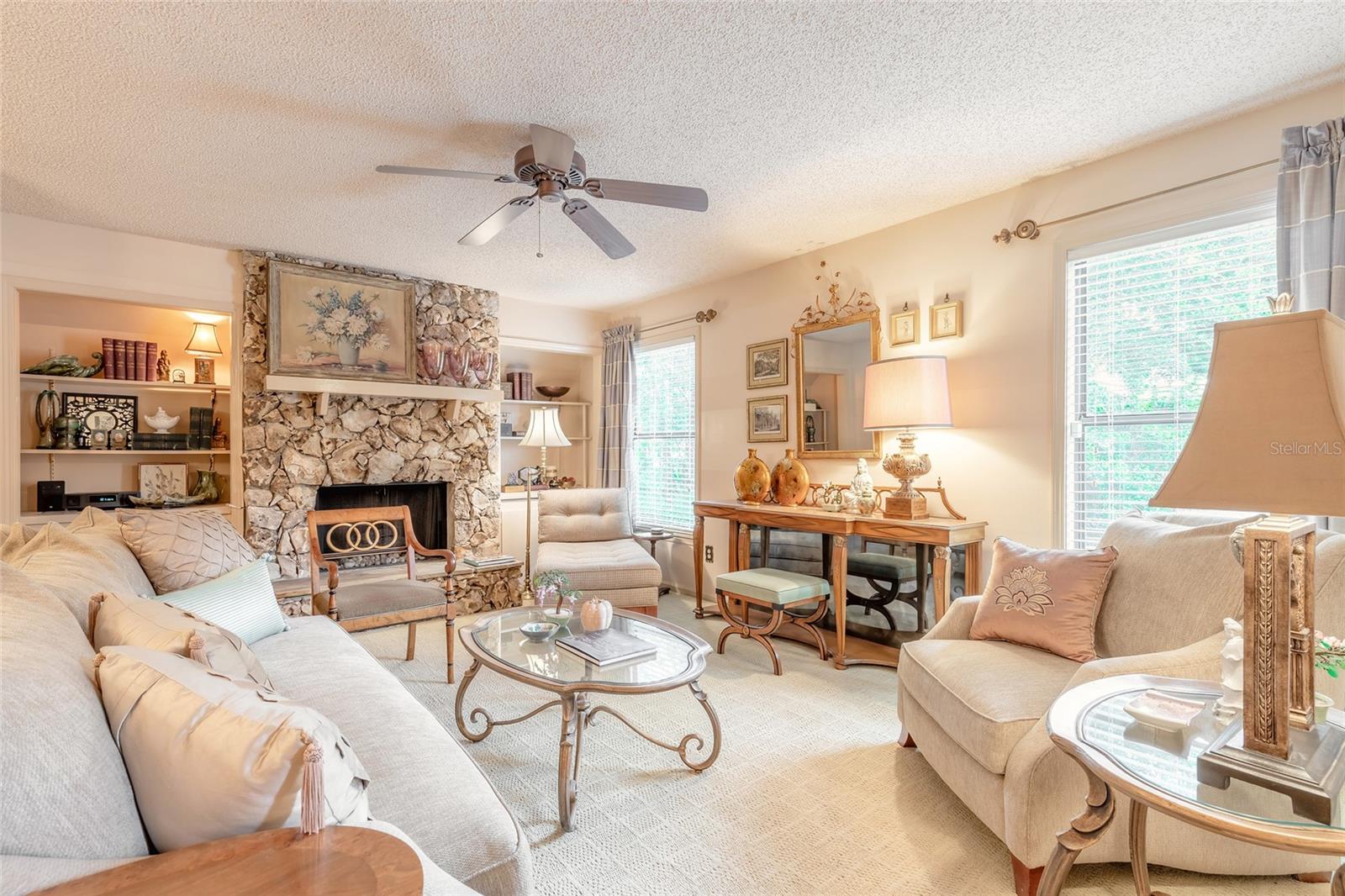 Esta unidade de extremidade de um único andar de 3 camas muito agradável está localizada na seção de Oak Village das trilhas. Ao entrar na casa, você estará na grande sala grande com uma combinação de sala de estar/sala de jantar. Há uma lareira de pedra de Coquina com troncos de gás e estantes embutidas. A área de jantar é grande o suficiente para acomodar uma grande mesa de jantar, cabana e buffet. A cozinha leve e brilhante possui armários de painel elevados brancos, contadores de superfície sólidos, uma despensa embutida e uma barra de café da manhã. Há um grande recanto da cozinha com vista para a sala da família. A sala da família tem uma parede de janelas para apreciar a iluminação natural e a vista com uma porta que leva ao convés de madeira. O quarto principal com banho de suíte tem uma pia e vaidade na área de vestir com uma grande caminhada no armário e outra vaidade e pia ao lado da caminhada no chuveiro. O quarto principal também tem um armário duplo adicional. Os dois quartos de hóspedes são separados da suíte master e compartilham um banheiro. Ambos os quartos de hóspedes têm amplo espaço e armazenamento. Há um pátio privado em um dos quartos com cercas de privacidade ao redor. A garagem de dois carros de grandes dimensões possui uma cozinha completa, incluindo alcance, lava -louças, pia, geladeira, lava -louças e freezer no peito. Há uma piscina comunitária, e a casa está localizada a uma curta distância de instalações religiosas, bancos, restaurantes, compras e a uma curta distância de carro da praia.