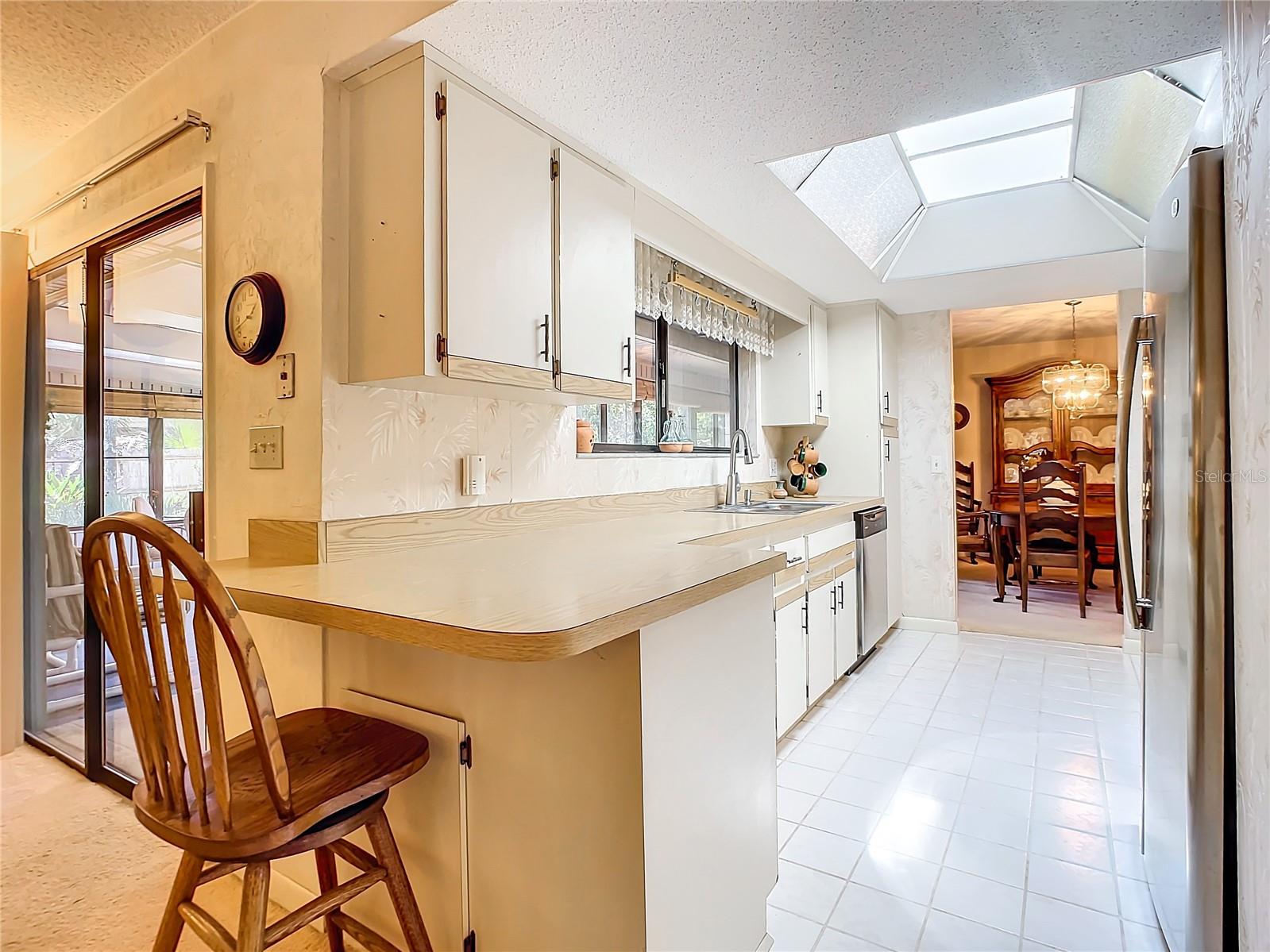 Casa de 3 quartos e 2,5 banheiros no procurado bairro de Oak Forest em Ormond Beach. Esta planta dividida tem a Suíte do Proprietário fora da área de estar. A suíte do proprietário tem um closet e banheiro com banheira profunda de jardim e chuveiro de pé com porta para o grande quarto Florida em forma de L. Walk-Through Galley Kitchen oferece claraboias e eletrodomésticos mais novos em aço inoxidável e preto. Aconchegante sala de estar retrô afundada, sala de família tem lareira a lenha e a sala de jantar também se abre para a grande sala Florida. Por estar em um terreno de esquina, o quintal é grande o suficiente para acomodar piscina e deck. Actualmente o quintal é um parque pedestre com 2 anexos/alpendres (perfeito para arrumos de jardinagem e/ou galpão). Garagem para 2 carros com bancada e escada para arrumos no sótão. Entrada extra longa para estacionamento adicional. AC novo em 2023, telhado 2016, aquecedor de água 2012. Título transferível de cupins. Imagine esta casa sendo sua com suas ideias e atualizações.
