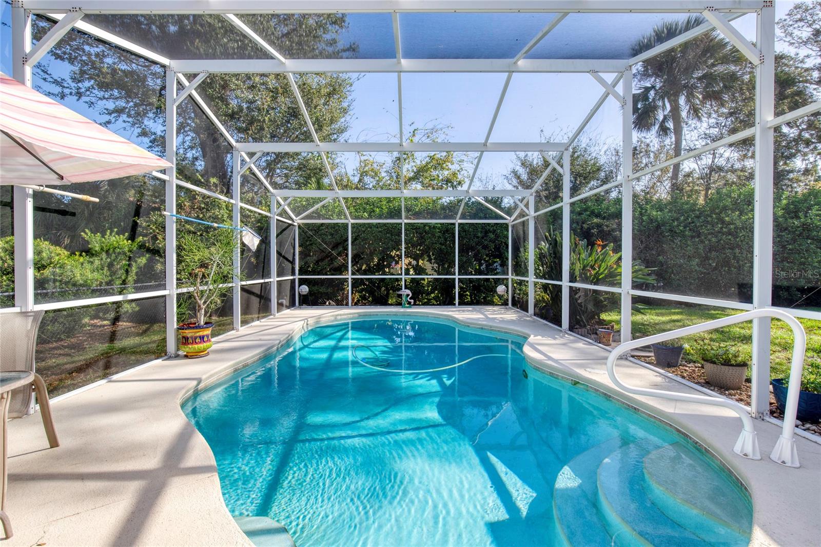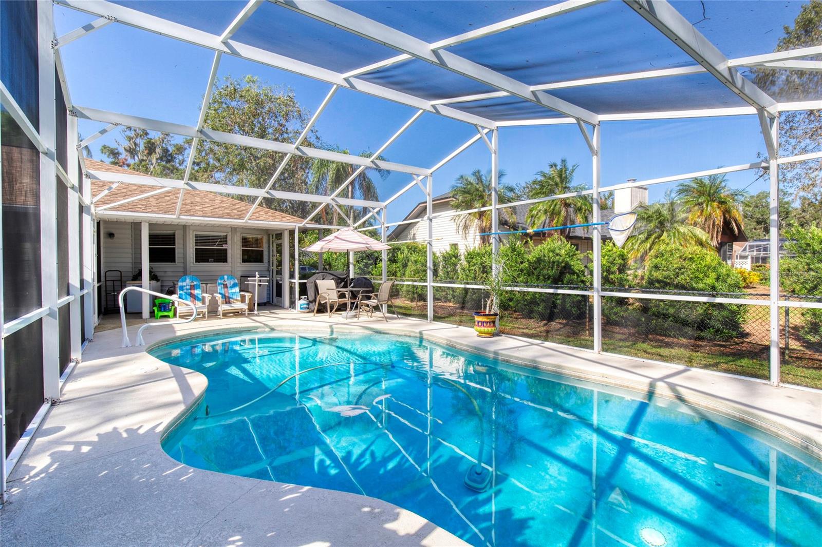 Escondida em uma rua tranquila e estabelecida fica esta casa meticulosamente mantida com 3 quartos e 2 banheiros com piscina de água salgada. Localizada em Hammock Trace e ao virar da esquina de um dos parques mais bonitos de Ormond, esta casa tem de tudo. As atualizações extensivas incluem, mas não estão limitadas a telhado MAIS NOVO, HVAC, aquecedor de água quente, cercas, piso e sistema de irrigação. A cozinha possui um amplo balcão para café da manhã, iluminação embutida e vista para a área da piscina. Lavanderia interna com pia e despensa localizada ao lado da cozinha para maior comodidade. Sala de jantar formal e espaçosa sala grande com duas grandes claraboias e iluminação embutida adicional. A sala de tela iluminada e ensolarada possui janelas atualizadas de proteção contra a velocidade do vento e um sistema mini-split sem dutos, proporcionando outra área para entretenimento. A generosa suíte master possui closets, box amplo, banheira de imersão e pias. Veja o mundo passar na varanda da frente ou na garagem com novo piso de epóxi e oficina. O oásis no quintal tem uma área de piscina protegida com painéis solares para aquecimento, cerca viva para privacidade, nova cerca de arame, galpão de armazenamento e folhagem madura até onde a vista alcança. A poucos passos de distância fica o Central Park, que consiste em quatro parques com 149 acres, vários quilômetros de trilhas naturais imaculadas, cinco lagos interligados, quadras de basquete/tênis, cais de pesca, horta comunitária, rampa para canoa/caiaque e muito mais! Metragem quadrada recebida de registros fiscais. Todas as informações registradas no MLS pretendem ser precisas, mas não podem ser garantidas.