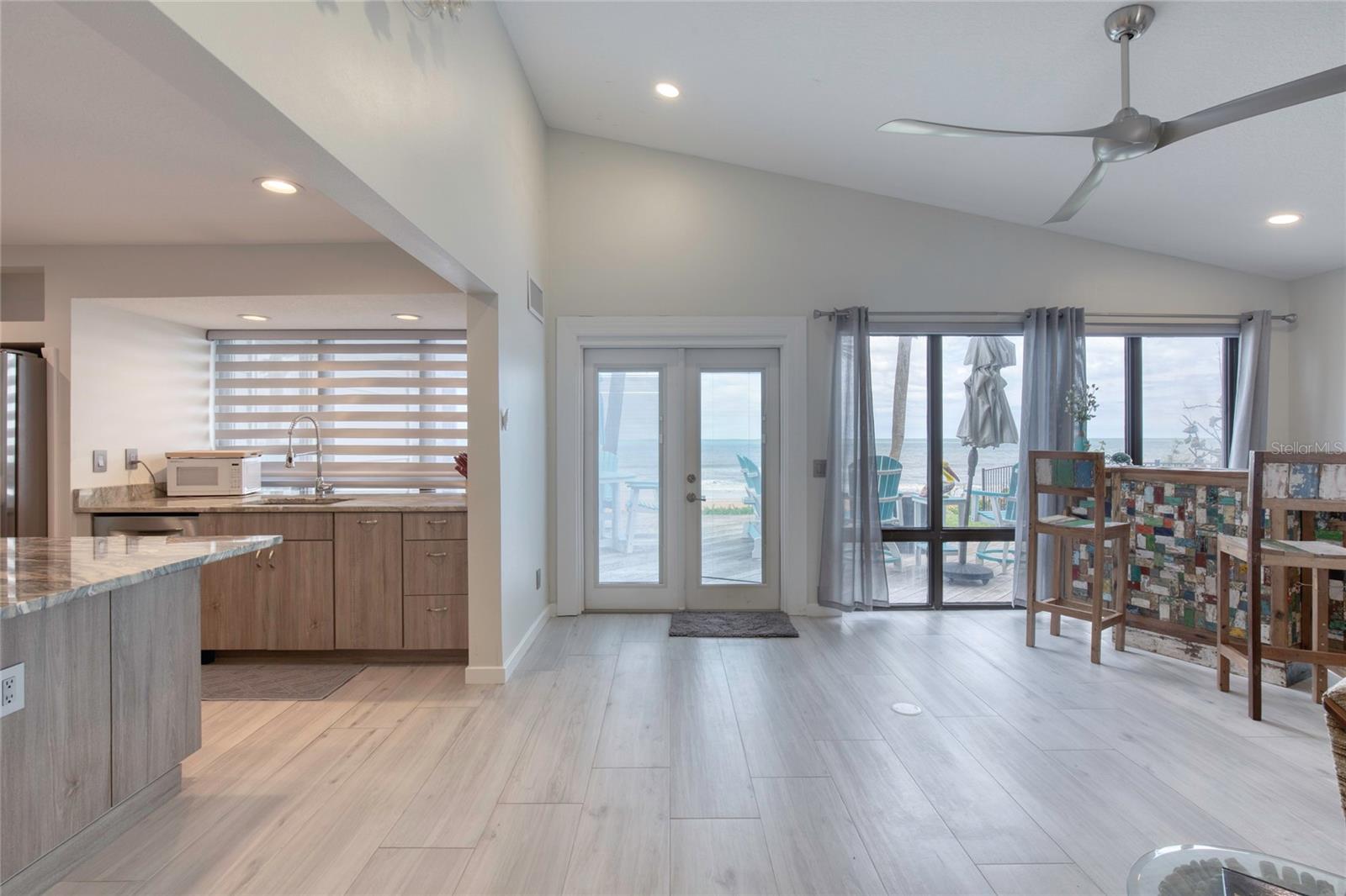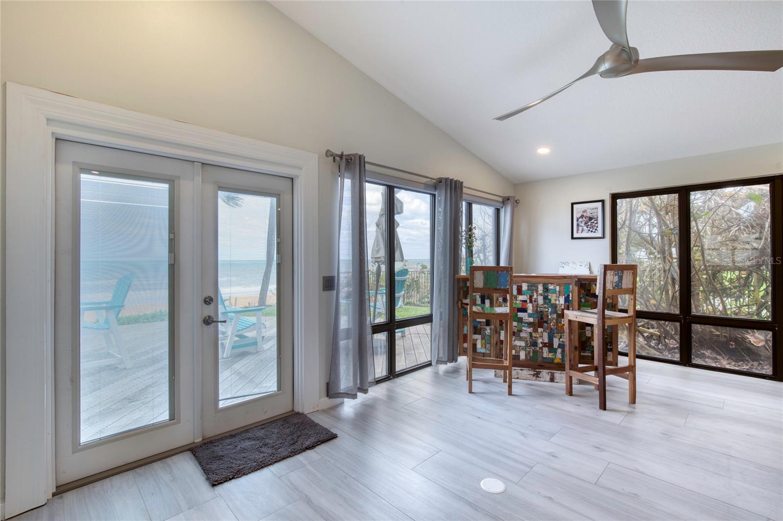 Lindamente renovado em casa na praia !! As vistas incríveis do Oceano Atlântico aguardam na praia sem tração! A paz de espírito com um paredão ultra seguro, reforçado com grandes rochas de Coquina. A casa está escondida de A1a, com paisagismo tropical exuberante. Este é um oásis no coração da comunidade à beira -mar !! Renovado com bom gosto com todos os toques modernos e decorado com vibrações à beira -mar. Esta casa de meados do século moderna é realmente uma descoberta única, oferecida com o fornecimento opcional. Desfrute de um conceito aberto que vive com vistas deslumbrantes do Oceano Atlântico da parede das janelas destacando a maioria dos quartos. A cozinha gourmet tem uma ilha de grandes dimensões incríveis, com assentos para todos, e onde cozinhar sua última captura fresca é uma brisa. O átrio interior fora da cozinha é o lugar perfeito para o café da manhã, as libações noturnas e a trazer o ar livre para dentro. Saia para descobrir o deck expansivo, perfeito para refeições ao ar livre ou simplesmente descansando no oceano.