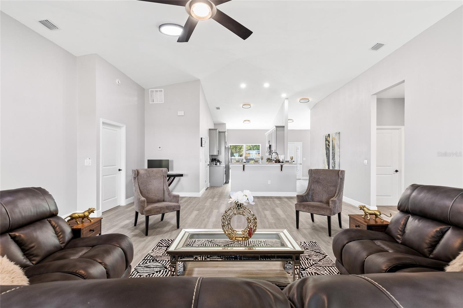 Sem HOA! Sem CDD! Este deslumbrante garagem de 3 quartos de 3 quartos e 2 carros está localizada em Ormond Beach. Prepare -se para se surpreender, pois o caminho da entrada o recebe com um espaçoso (mudroom) à direita e à esquerda uma área de estar e / / ou uma área de jantar. Como você é recebido pela planta aberta, a (Great Area) está cheia de surpresas e oportunidades de decoração, surpreenda -se com os tetos abobadados e muito espaço para um (comer na cozinha e na área de computador). A cozinha tem uma bela variedade de aparelhos de iluminação de saída, utensílios de aço inoxidável, um backsplash único que complementa as bancadas de granito. Os quartos são separados da suíte primária (plano dividido). Há uma área de lavanderia separada. Ao caminhar pelas portas francesas até a varanda, você é recebido com uma atmosfera confortável de paz e relaxamento. Todos os quartos vêm com ventiladores de teto e um sistema de filtragem de água inteira com uma garantia de 1 ano. Esta casa também é acessível para cadeira de rodas. Nenhuma conta de água ou esgoto Esta casa fica em fossa séptica e água de poço). Próximo e conveniente para as praias e campo de golfe circundantes. Apresse -se antes desta casa, diga que se foi. (Tamanhos de quartos a serem verificados pelo agente dos compradores).