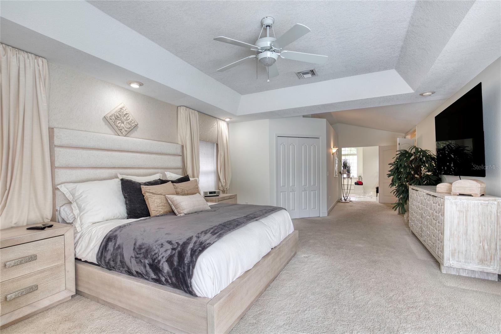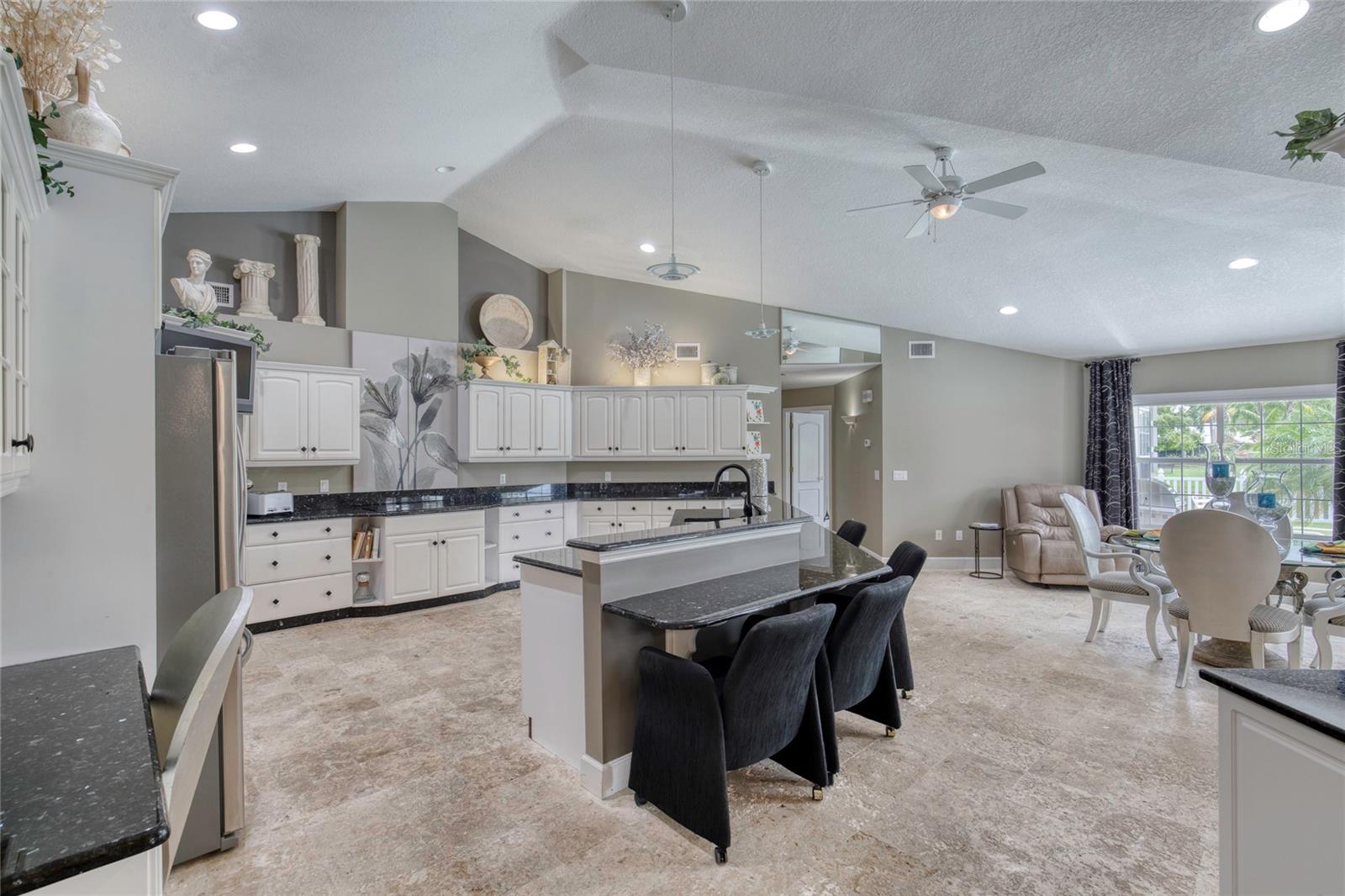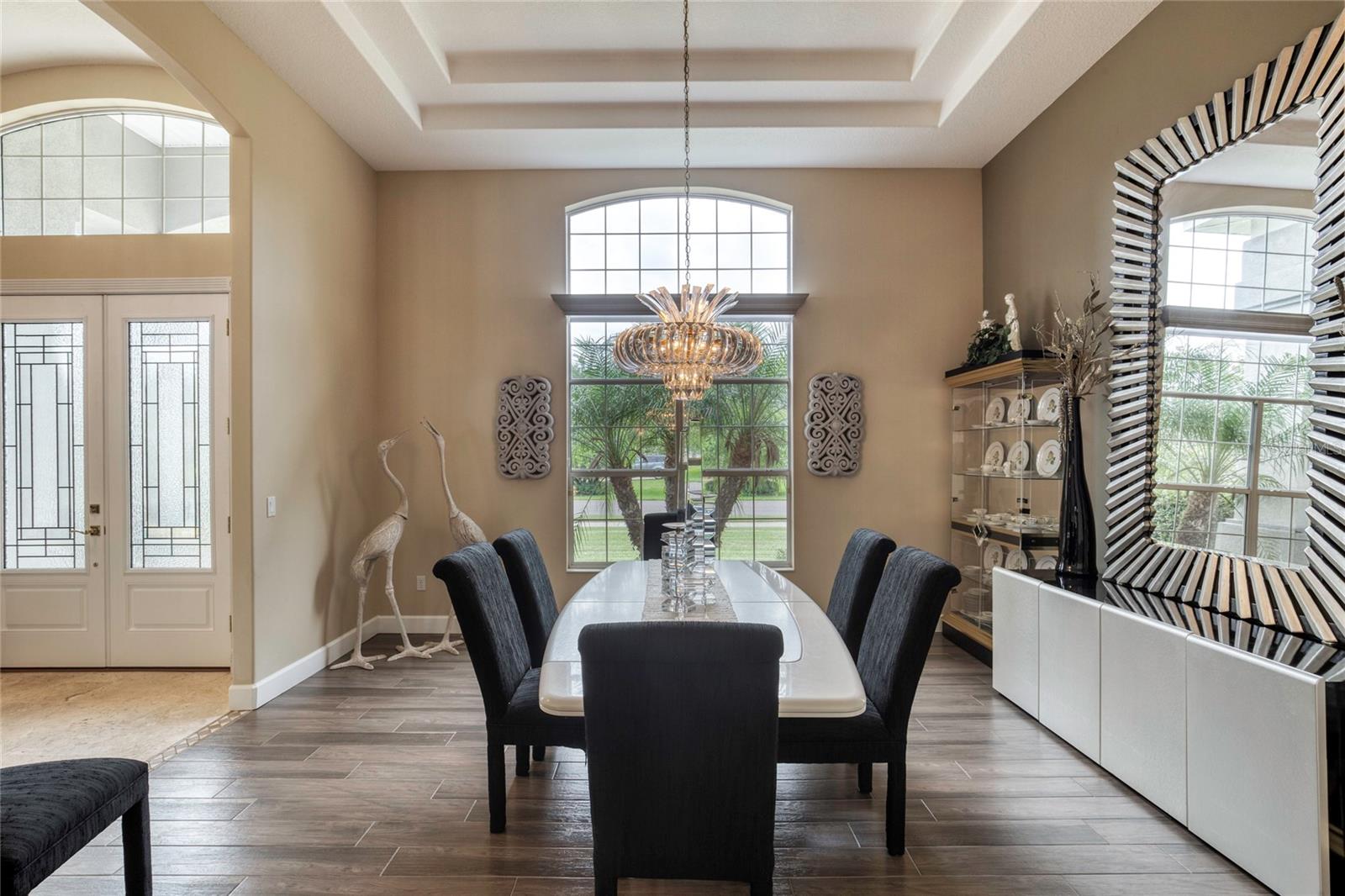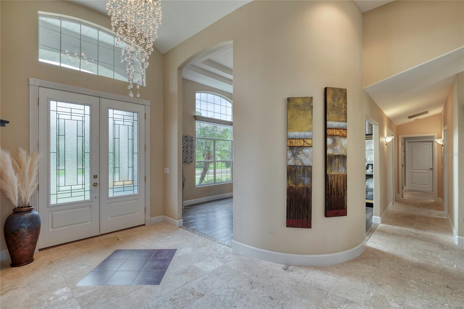 Bem-vindo ao 7 Foxford Chase, uma espaçosa casa à beira do lago na comunidade procurada de Hunters Ridge de Ormond Beach. Esta casa de 4 quartos, 2 quartos e 2 banheiros está em um lote grande de quase 1/2 acres com teto de azulejos, entrada longa para muito estacionamento extra e garagem de 2 carros. Passe pelas novas portas duplas de vidro de chumbo em um interior cuidadosamente projetado, com impressionantes recursos atualizados. Tetos abobadados em todas as áreas de estar de quase 13 pés à esquerda está a sala de jantar formal e, à direita, uma sala de estar formal perfeita para assentos ou entretenimento adicionais. Em frente, a sala de estar afundada apresenta três conjuntos de portas francesas que levam ao Lanai, e um bar embutido com armários de vidro, prateleira de vinho, pia e mini-frigorífico-ideal para hospedagem. Logo depois, a espaçosa cozinha oferece bancadas em granito, armários brancos, um cooktop, fornos duplos e uma ilha central com pia, lava -louças e bar de café da manhã com vista para o canto do café da manhã ensolarado. A suíte primária está escondida por privacidade, com portas francesas para o Lanai, um closet e um grande banho de suíte com vaidades duplas, armário de água privada, banheira de jardim e chuveiro. O segundo banheiro completo também inclui uma vaidade dupla e um chuveiro. Uma lavanderia generosa com pia de utilidade e parede cheia de armários de armazenamento leva à garagem para maior conveniência. Voltar, desfrute de seu próprio oásis privado com um novo quintal cercado, piscina e spa e um lanchone coberto com muito espaço para assentos ou restaurantes ao ar livre. Aprecie o lago sereno com uma bela fonte logo depois da piscina. Tudo isso é definido dentro de um bairro tranquilo e estabelecido. Perfeitamente situado a poucos minutos das escolas de primeira linha, restaurantes populares, supermercados e parques locais, a apenas 15 minutos da praia. Não perca a sua exibição hoje!