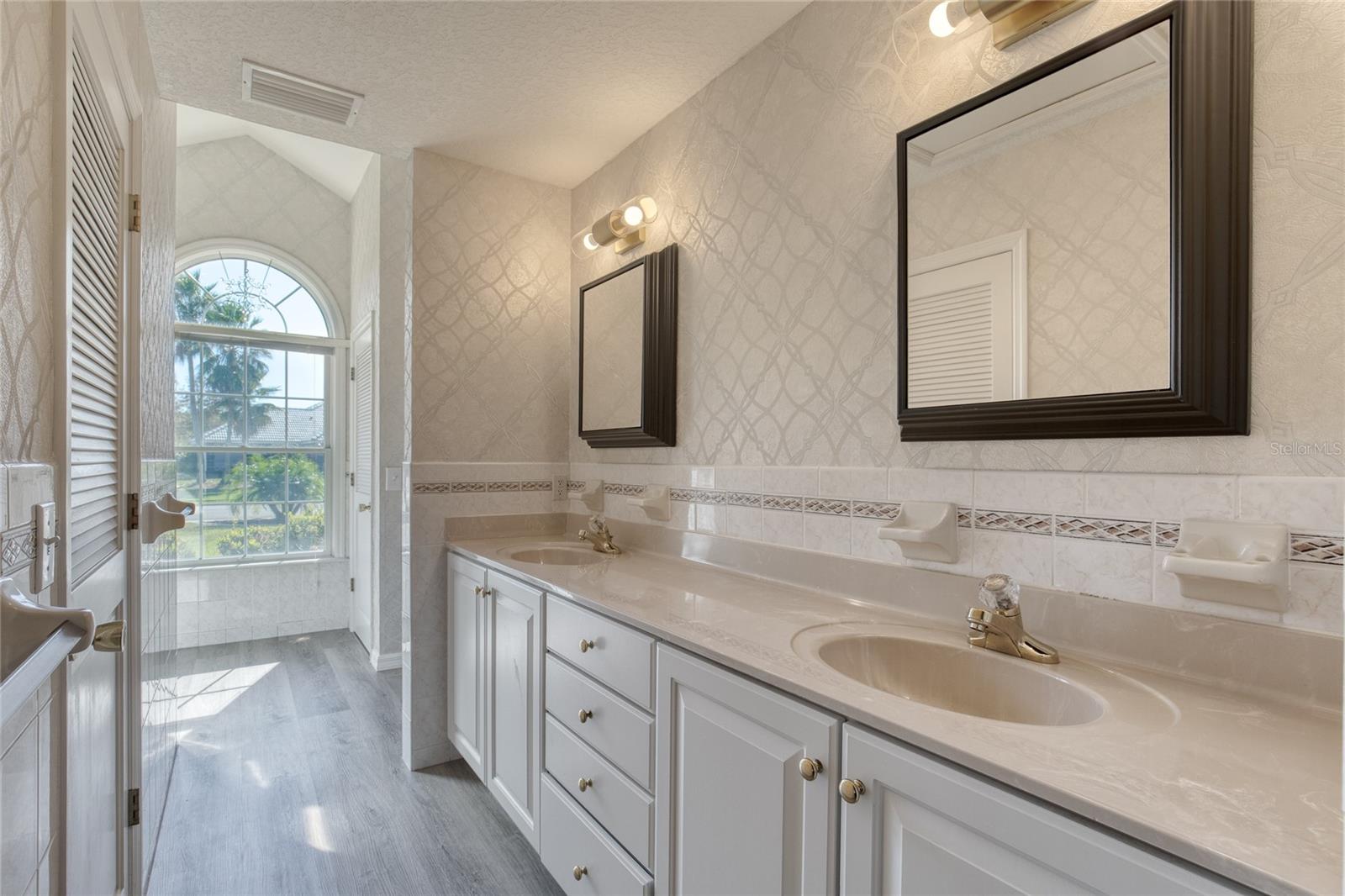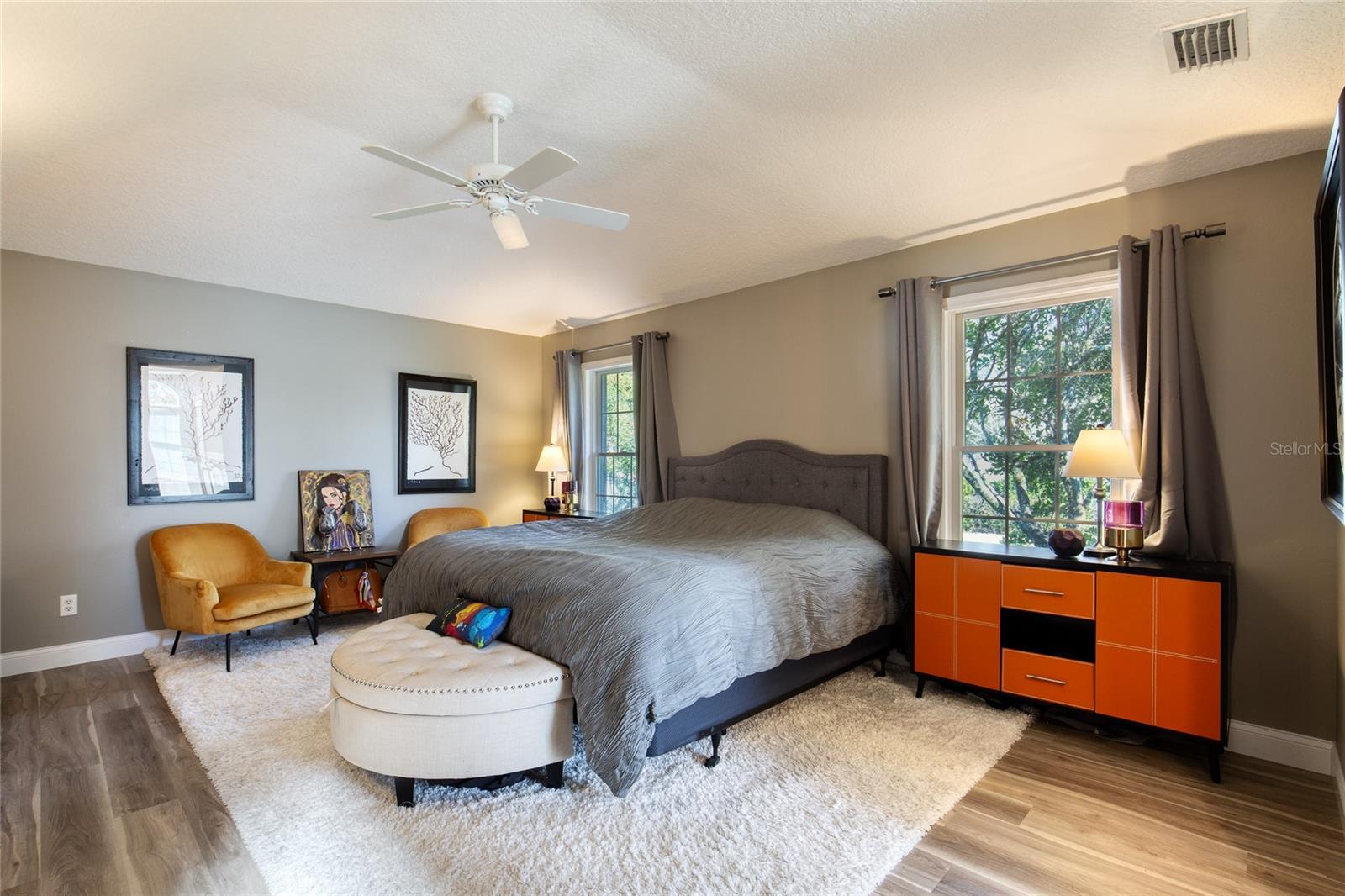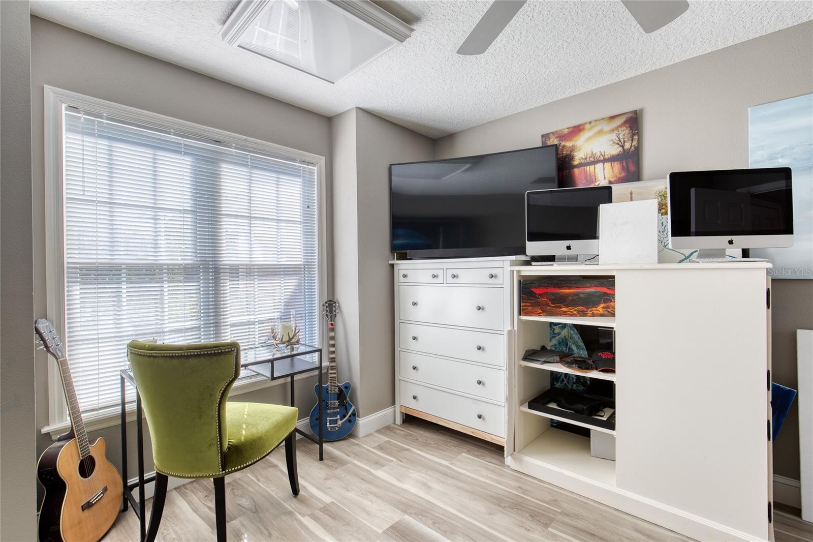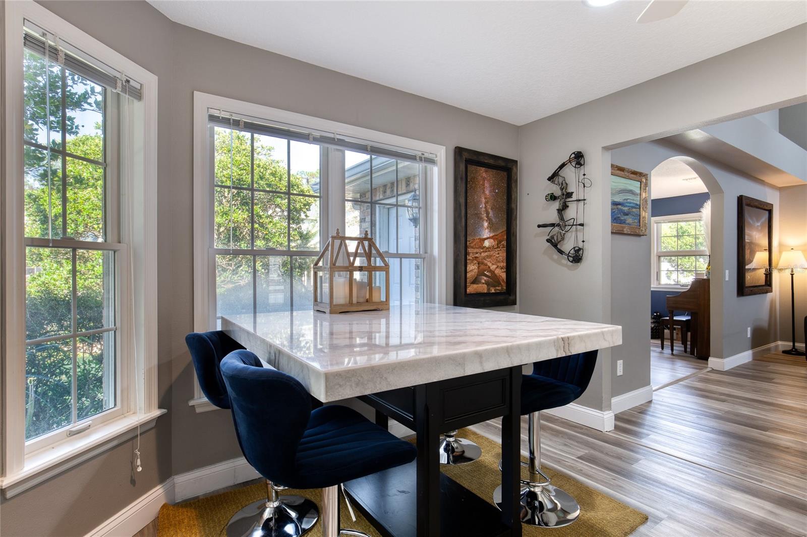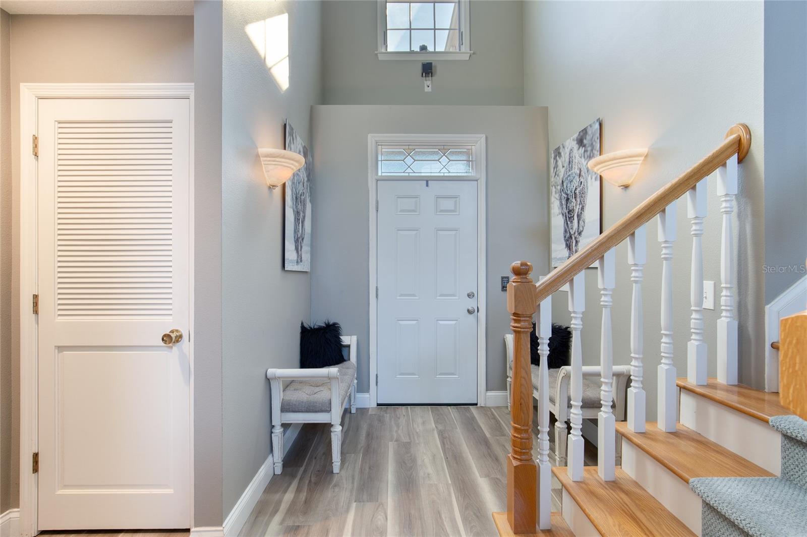 PREÇO PARA VENDER. Os proprietários estão se mudando por motivos familiares. Esta casa de tijolos, quatro quartos e 2,5 banheiros em Hunters Ridge está situada em um terreno de esquina premium sem saída com mais de um terço de acre. Os jardins paisagísticos, adornados com árvores maduras e cercas de privacidade, proporcionam um ambiente tranquilo e tranquilo. As características notáveis incluem todas as janelas e portas do impacto do furacão, incluindo a enorme porta da garagem para dois carros; telas de metal duráveis para janelas; luxuosos pisos de pranchas de vinil nas áreas comuns; um telhado de 2023; um aquecedor de água 2020; e três manipuladores de ar com dois compressores externos instalados em 2020. A copa, reformada em 2021, inclui fornos duplos de parede revestidos de cerâmica, fogão elétrico, micro-ondas, geladeira, lava-louças LG, cafeteria e bancada de quartzo branco com borda em cascata. O quarto totalmente fechado da Flórida se abre para a sala de estar através de um arco decorativo. Tetos de mais de 17 pés e janelas abundantes proporcionam luz natural generosa. O andar principal inclui a suíte principal com banheiro privativo com box de vidro, pias duplas e amplo closet. Também no nível principal estão um quarto adicional, um lavabo e uma lavanderia de tamanho generoso. No andar de cima há um banheiro completo e dois quartos adicionais, um deles com uma ampla área de estar e um closet de estilo primário. A garagem de grandes dimensões inclui closet próprio e uma área no nível superior adequada para armazenamento ou espaço de hobby. A comunidade de Hunters Ridge oferece duas piscinas, um clube, um parque, um parque infantil e quadras de basquete e tênis. Localizada a poucos minutos da I-95, do hospital, das lojas e dos restaurantes, esta casa oferece acesso conveniente às comodidades locais, tudo em um ambiente que parece estar a quilômetros de distância de tudo.