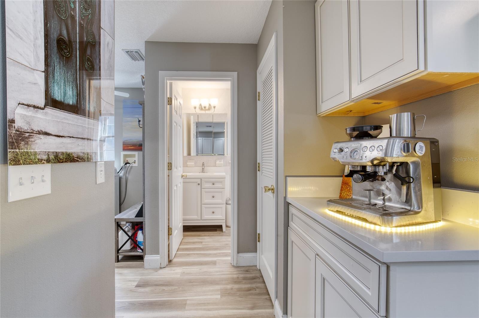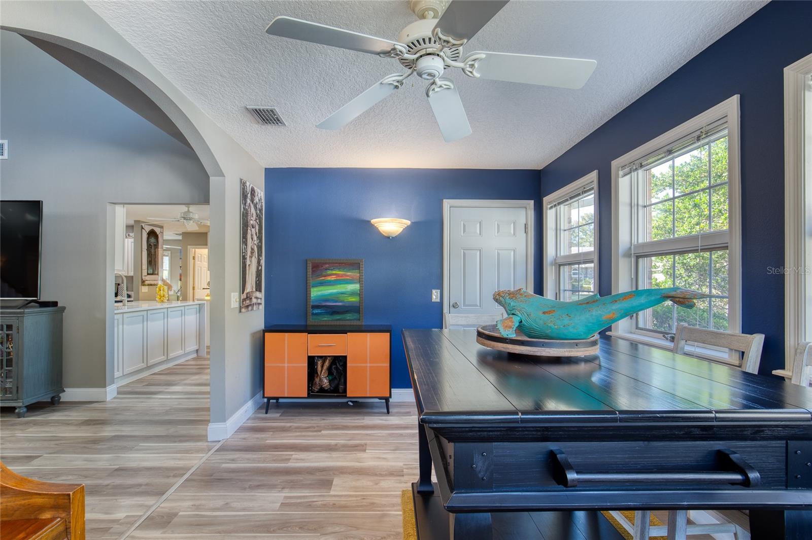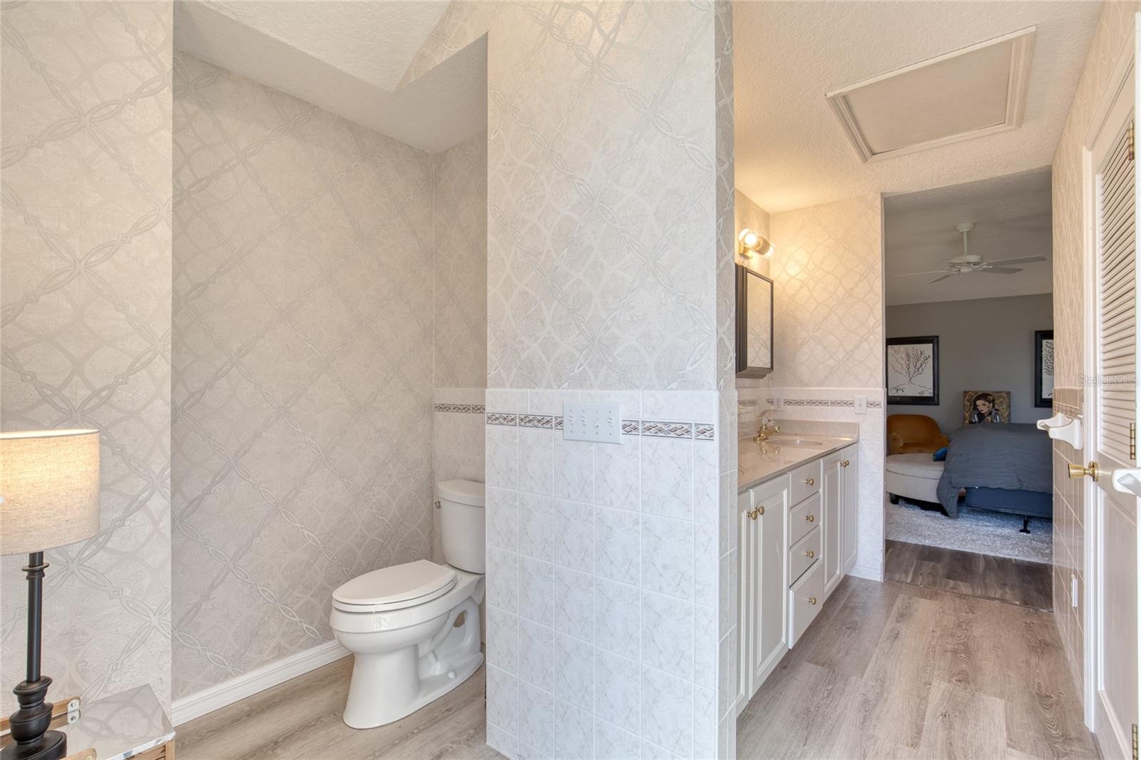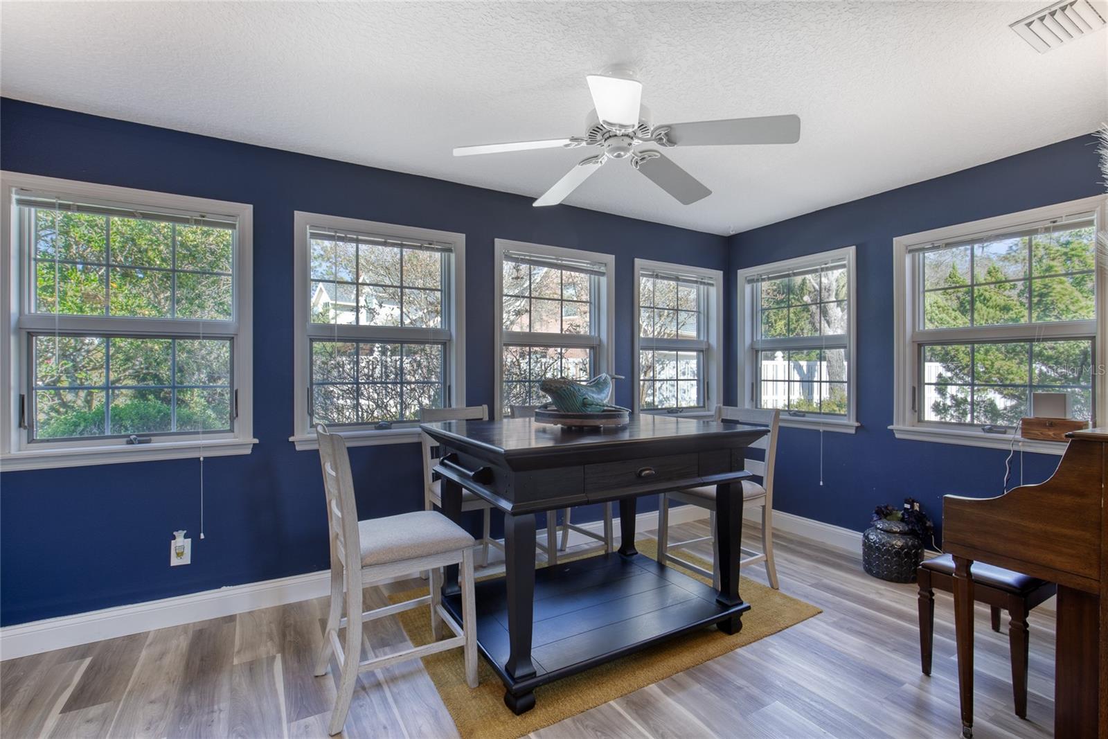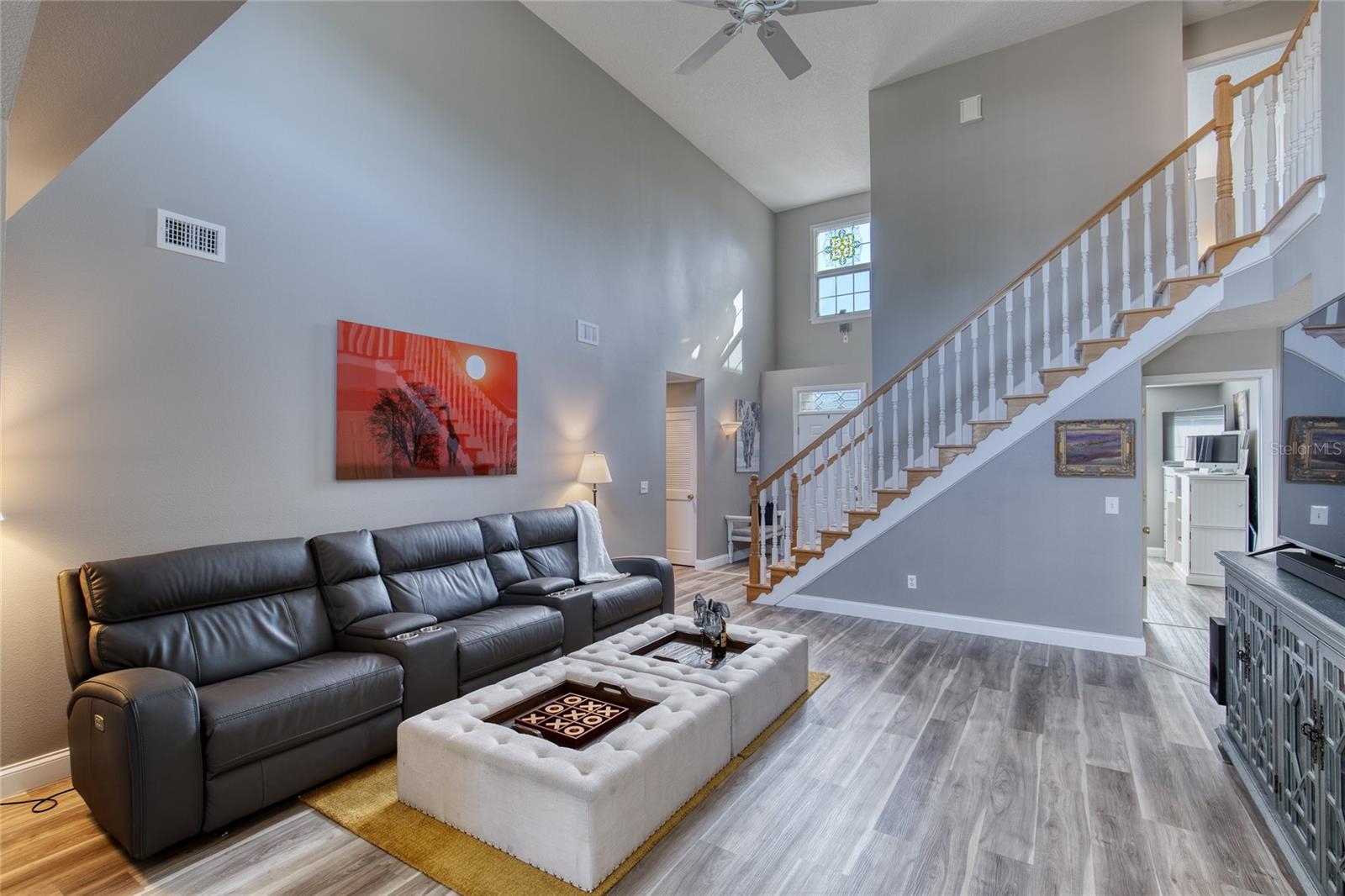 PREÇO PARA VENDER. Os proprietários estão se mudando por motivos familiares. Esta casa de tijolos, quatro quartos e 2,5 banheiros em Hunters Ridge está situada em um terreno de esquina premium sem saída com mais de um terço de acre. Os jardins paisagísticos, adornados com árvores maduras e cercas de privacidade, proporcionam um ambiente tranquilo e tranquilo. As características notáveis incluem todas as janelas e portas do impacto do furacão, incluindo a enorme porta da garagem para dois carros; telas de metal duráveis para janelas; luxuosos pisos de pranchas de vinil nas áreas comuns; um telhado de 2023; um aquecedor de água 2020; e três manipuladores de ar com dois compressores externos instalados em 2020. A copa, reformada em 2021, inclui fornos duplos de parede revestidos de cerâmica, fogão elétrico, micro-ondas, geladeira, lava-louças LG, cafeteria e bancada de quartzo branco com borda em cascata. O quarto totalmente fechado da Flórida se abre para a sala de estar através de um arco decorativo. Tetos de mais de 17 pés e janelas abundantes proporcionam luz natural generosa. O andar principal inclui a suíte principal com banheiro privativo com box de vidro, pias duplas e amplo closet. Também no nível principal estão um quarto adicional, um lavabo e uma lavanderia de tamanho generoso. No andar de cima há um banheiro completo e dois quartos adicionais, um deles com uma ampla área de estar e um closet de estilo primário. A garagem de grandes dimensões inclui closet próprio e uma área no nível superior adequada para armazenamento ou espaço de hobby. A comunidade de Hunters Ridge oferece duas piscinas, um clube, um parque, um parque infantil e quadras de basquete e tênis. Localizada a poucos minutos da I-95, do hospital, das lojas e dos restaurantes, esta casa oferece acesso conveniente às comodidades locais, tudo em um ambiente que parece estar a quilômetros de distância de tudo.