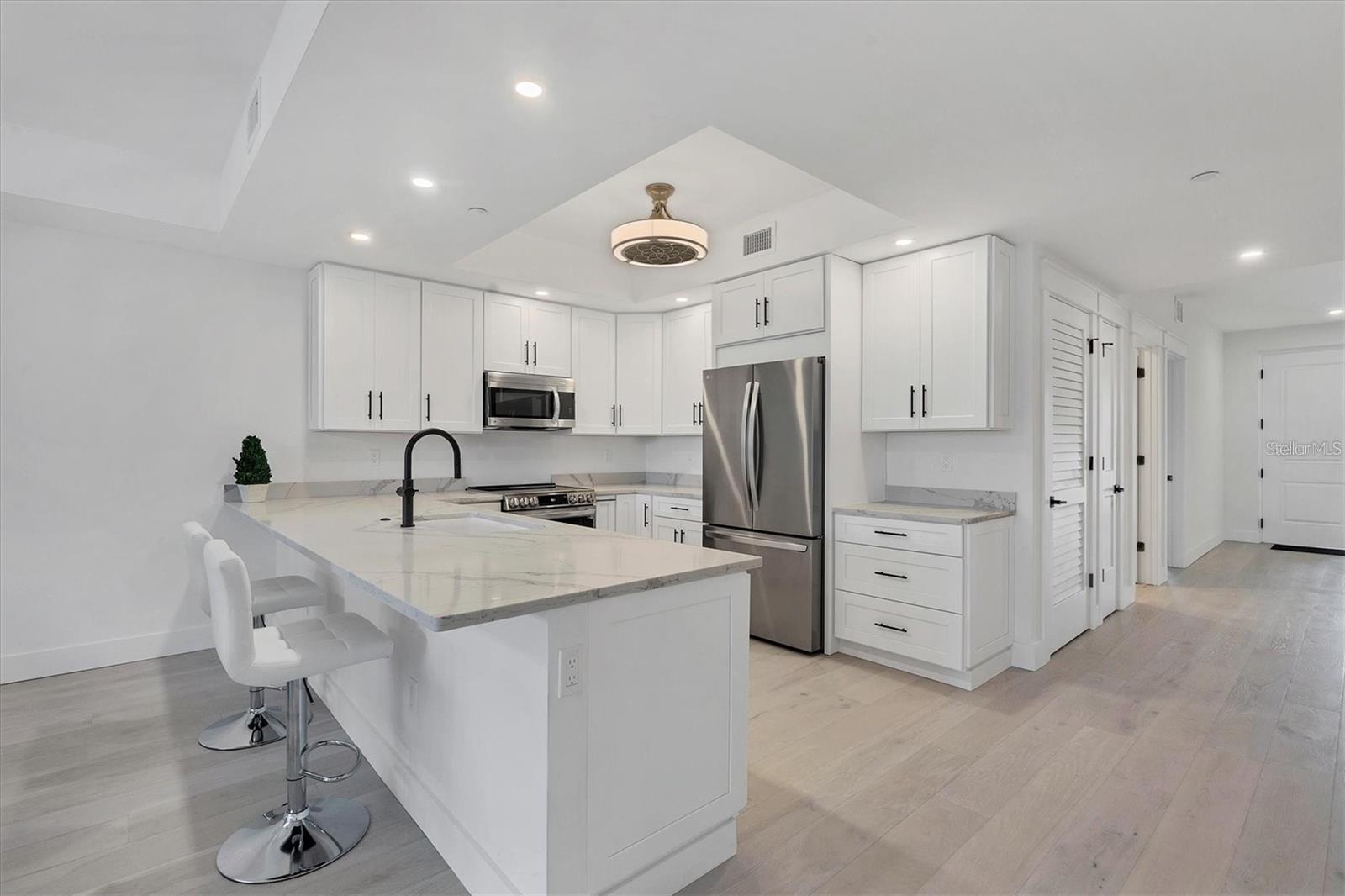 Uma ou mais fotos foram praticamente encenadas. Mudar-se pronto! Esta unidade é o modelo do edifício. Localizado na beira da água de Little Sarasota Bay, em Osprey, Flórida, está o belo condomínio fechado e de 12 acres em Edgewater em Hidden Bay. Este edifício à beira -mar de 16 unidades foi projetado no estilo arquitetônico de Key West. Assista o pôr do sol mais de tirar o fôlego da sua varanda privada nesta unidade de três quartos e dois banheiros. Dentro da unidade, você encontrará uma espaçosa cozinha gourmet com utensílios de aço inoxidável, bancadas em granito, armários de bordo, assentos de contador e muito espaço de armazenamento. A sala de estar e a sala de jantar também são espaçosas e apresentam um piso plano aberto. O quarto principal é expansivo com grandes armários duplos. O banho primário possui vaidades duplas e um chuveiro com estrutura de vidro. Aparelhos de encanamento de Kohler, janelas e portas resistentes ao impacto do furacão, uma lavadora e secadora em tamanho real e uma unidade de ar condicionado central de alta eficiência são recursos padrão. Hidden Bay tem um clube fabuloso recentemente renovado, com uma cozinha completa de catering, uma biblioteca de leitura totalmente abastecida, uma sala de fitness profissional, uma área de entretenimento e uma sala de jantar para jantar ou cartas. A unidade do segundo andar oferece piso de madeira e bancadas premium de quartzo. Há uma piscina aquecida e um spa com um amplo fundo de terraço, estação de grelhar, duas quadras de pickleball iluminadas e uma quadra de tênis, um lago com fontes de água, um lançamento de caiaque, um calçadão de 500 jardas que serpenteia através de manguezais exuberantes e campos de palmeiras para um belo píer de pesca. Cada unidade possui estacionamento subestimado com uma unidade de armazenamento segura. Esta localização fantástica está localizada centralmente entre Veneza histórica e o vibrante centro de Sarasota. É perto de praias locais, aeroportos, restaurantes, várias marinas, compras e muito mais. É deixado um suprimento limitado dessas belas unidades à beira -mar! Venha visitar Edgewater em Hidden Bay- é realmente uma jóia escondida!