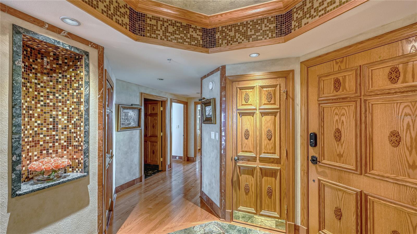 Uma ou mais fotos foram virtualmente encenadas. Experimente vistas deslumbrantes do Intracoastal e do Golfo a partir desta unidade Meridian bem conservada no sétimo andar, com entrada privativa. Com belos pisos de madeira, detalhes em mármore e granito e sancas, esta casa exala elegância. A cozinha está equipada com eletrodomésticos de última geração, incluindo geladeira Sub Zero, lava-louças Miele, forno de parede e micro-ondas Viking, fogão de indução Monogram e amplo espaço de despensa. NOVIDADE Julho de 2024 Ar Condicionado. Esta unidade inclui três quartos espaçosos com armários de cedro e três banheiros completos com balcões de granito. Uma conveniente lavanderia interna aumenta a funcionalidade da casa. A varanda com tela possui persianas elétricas e azulejos meticulosos. Localizado em Oaks Preserve, o Meridian faz parte do The Oaks Golf and Country Club, que oferece dois campos de golfe de 18 buracos, 12 quadras de tênis Har-Tru, 4 quadras de Pickleball, uma academia e uma piscina olímpica júnior. A adesão ao Oaks Club é obrigatória. Viva o estilo de vida do clube de campo nesta comunidade vibrante.