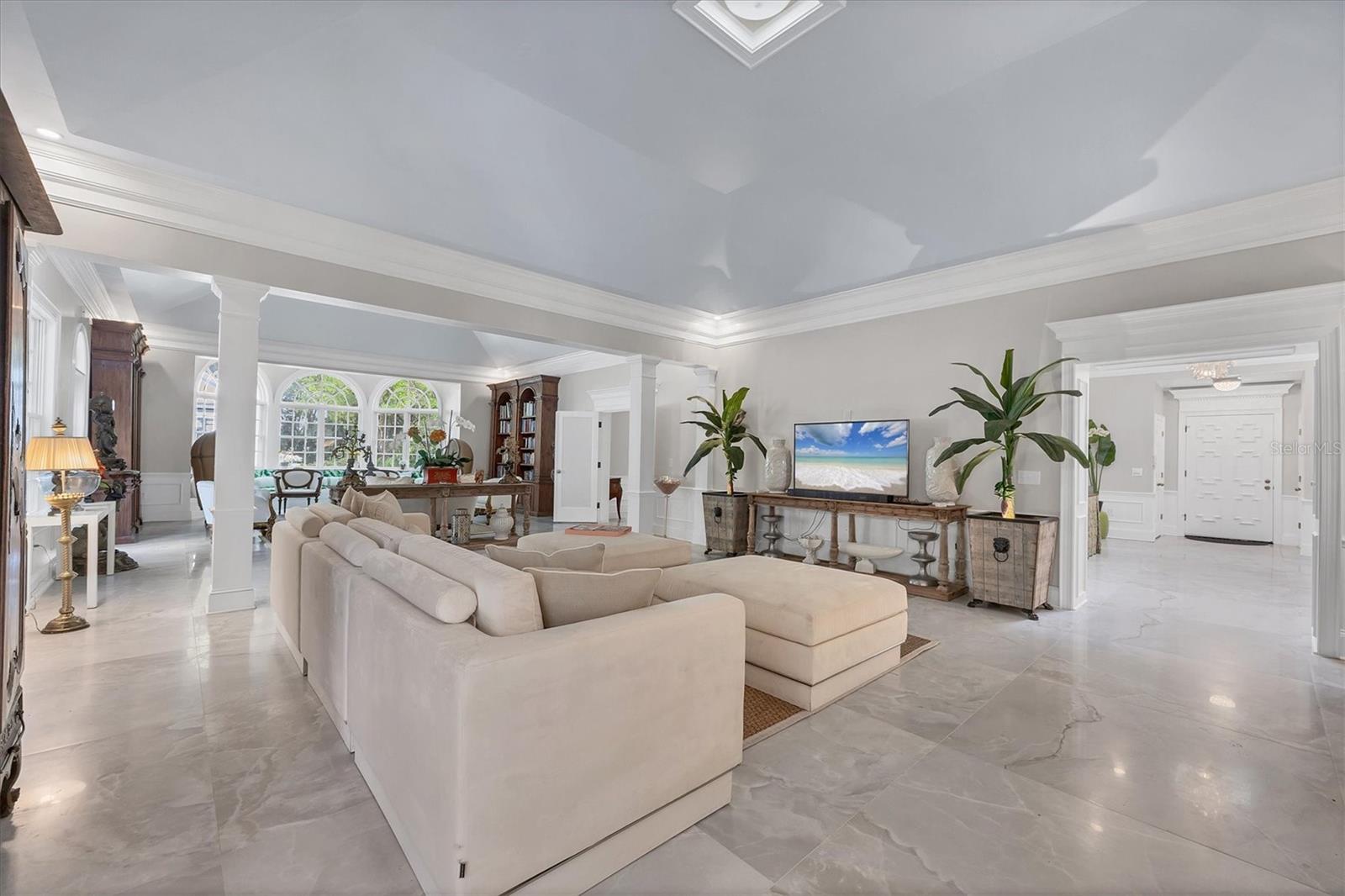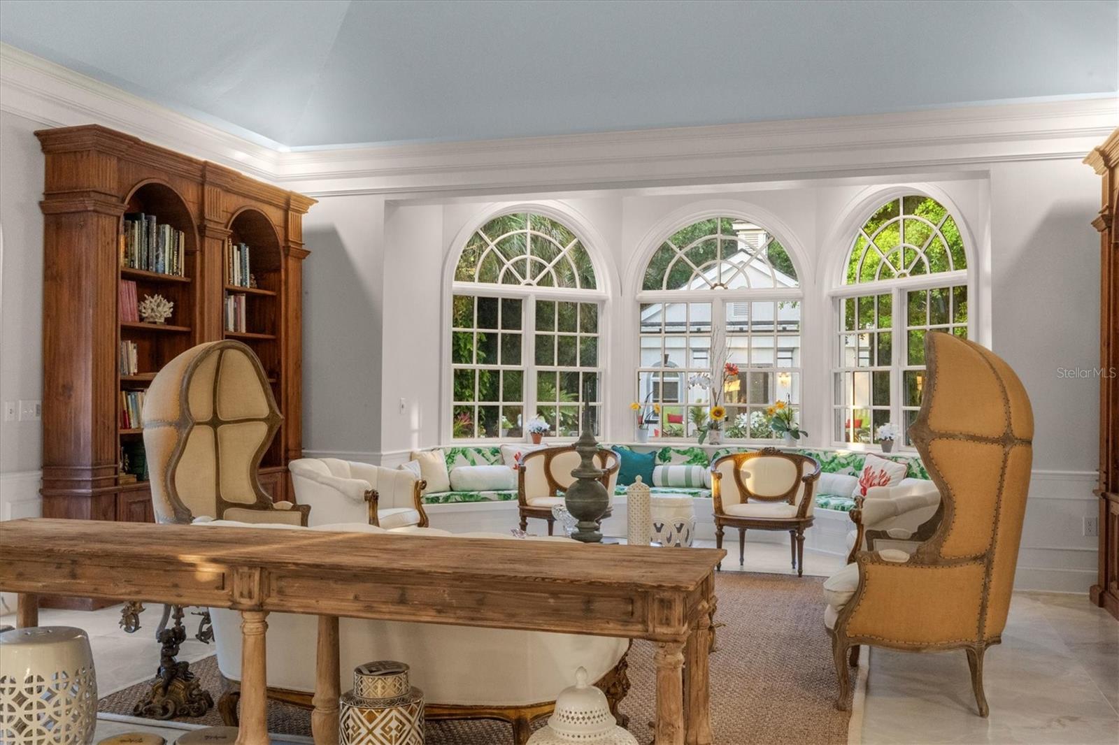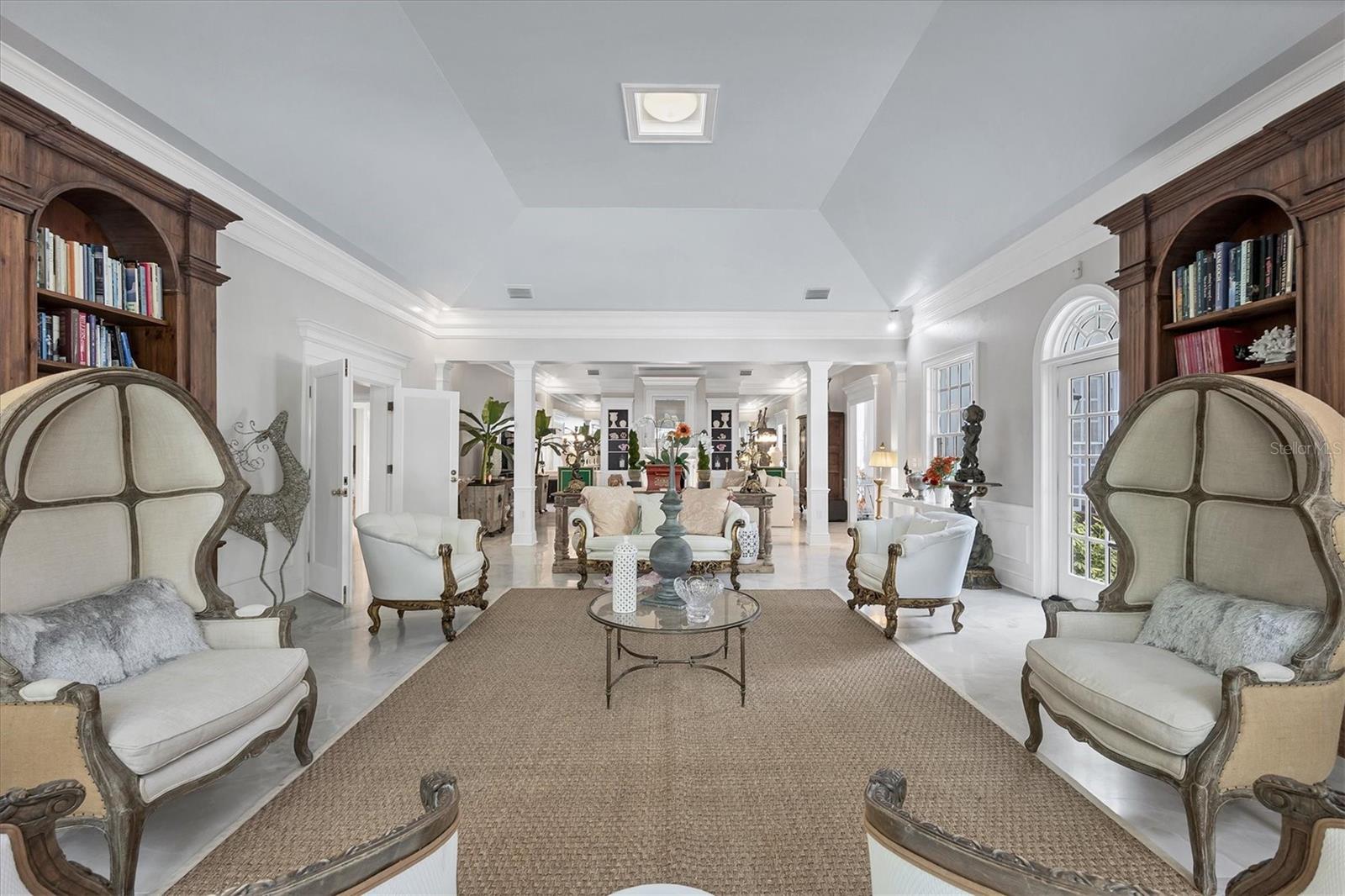 Bem-vindo ao 75 Osprey Point, uma residência que simboliza elegância atemporal e design cuidadoso no prestigiado Oaks Bayside. Em dois lotes amplos totalizando mais de três quartos de acre, esta propriedade arquitetônica foi originalmente projetada pelo renomado arquiteto Bo MacEwen, o visionário por trás do icônico clube The Oaks. Uma mistura harmoniosa de sofisticação tradicional e atualizações modernas o aguarda, com jardins exuberantes no estilo Selby e vistas serenas do lago que realçam o ambiente. O caminho circular com pavimentação que leva a uma encantadora varanda frontal de azulejos convida você a explorar os grandes interiores. Passe pela entrada em um hall de entrada dramático com piso de cerâmica de grande formato, tetos altos com clarabóia, sancas intrincadas e detalhes de acabamento personalizados adornando as paredes. Nichos de arte iluminados oferecem o cenário ideal para exibir suas peças favoritas. Os espaços de estar exalam uma grandeza acolhedora. A sala familiar possui um teto personalizado, uma lareira ladeada por embutidos e arcos elegantes com acabamentos detalhados. A imponente sala de estar possui janelas salientes emoldurando uma área de estar aconchegante com bancos embutidos, enquanto as portas francesas levam a um pátio isolado para momentos de retiro tranquilo. A sala de jantar é igualmente requintada, com teto em bandeja, sancas e detalhes arquitetônicos sofisticados. A cozinha atualizada é o sonho de qualquer chef, combinando perfeitamente estilo e função. Os destaques incluem armários cinza elegantes, bancadas de quartzo, backsplash de azulejos com detalhes dourados, iluminação sob o gabinete e eletrodomésticos premium, como geladeira Sub-Zero, lava-louças KitchenAid e fogão e micro-ondas Samsung. Duas despensas personalizadas e uma geladeira Sub-Zero adicional fornecem amplo armazenamento. A casa principal oferece três quartos generosamente decorados, cada um com tetos altos, sancas e detalhes de acabamento personalizados. Os banheiros dos hóspedes apresentam acabamentos refinados. Uma pousada separada, equipada com seu próprio sistema HVAC, oferece acomodações em estilo estúdio completas com cozinha compacta, ideal para visitar familiares ou amigos. A vida ao ar livre é elevada com uma linda piscina ao ar livre cercada por uma paisagem exuberante, criando um oásis privado. Os jardins são iluminados com iluminação paisagística, mostrando a beleza desta propriedade após o pôr do sol. Como residente de Oaks Bayside, você terá acesso a um cais privado na Intracoastal Waterway, oferecendo vistas deslumbrantes e pôr do sol sereno. A associação ao Oaks Club é obrigatória e oferece comodidades de classe mundial, incluindo dois campos de golfe profissionais, 12 quadras de tênis Har-Tru, uma academia de ginástica de última geração, uma piscina olímpica júnior aquecida, croquet, pickleball e uma variedade de opções de refeições. Convenientemente perto da Pine View School, da Legacy Bike Trail, das praias imaculadas da Costa do Golfo e do centro de Sarasota, esta propriedade é uma porta de entrada para o melhor da vida na Flórida. Descubra o estilo de vida incomparável e a elegância refinada de 75 Osprey Point, uma casa que se destaca em cada detalhe.