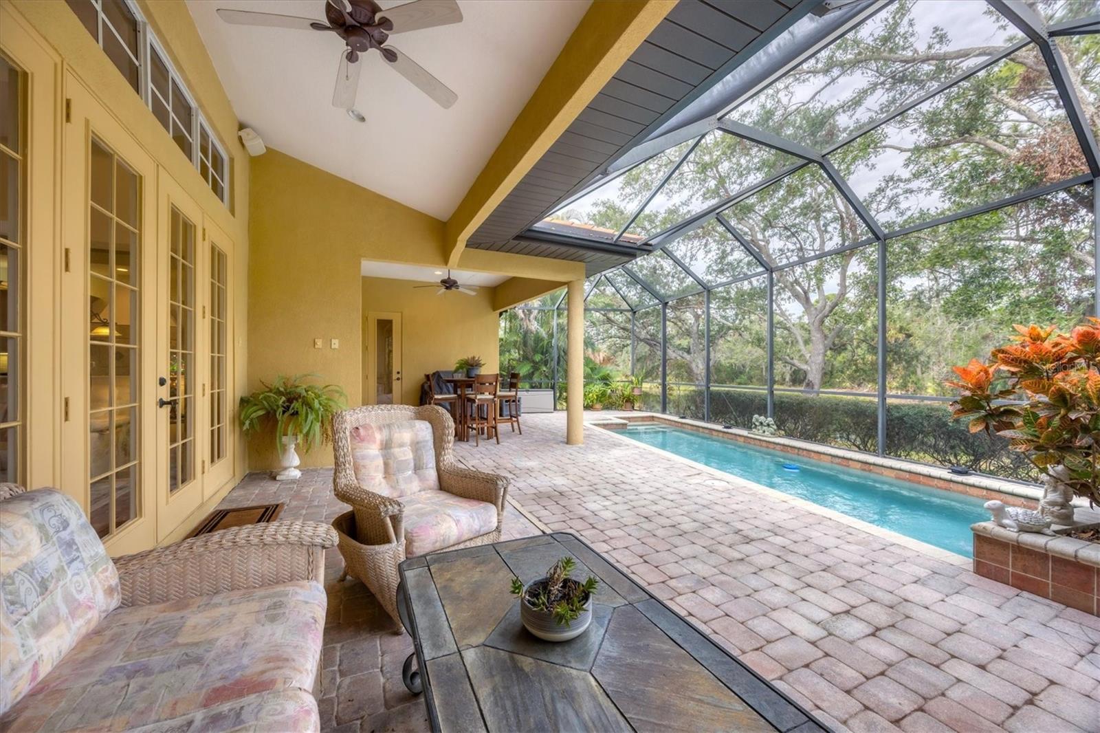 Experimente a mistura ideal de tranquilidade e conveniência nesta requintada residência, projetada pelo renomado construtor Robert Guengerich como seu santuário. Situado no final de um beco sem saída sereno e cercado por carvalhos maduros, esta casa notável oferece um retiro pacífico enquanto permanece perto de tudo o que você precisa. Após a entrada, você será cativado pelos grandes tetos de 13 pés, arcos elegantes e colunas arquitetônicas que exalam sofisticação. Esta propriedade meticulosamente mantida reflete o orgulho de propriedade. Sua planta aberta é ideal para hospedar reuniões ou desfrutar de noites tranquilas, com tetos divididos de Guengerich e uma lareira sob medida. A cozinha do chef está equipada com aparelhos de primeira linha, incluindo um fogão a gás, uma espaçosa ilha central, armários ricos e bancadas em granito. Com mais de 3.100 pés quadrados, esta casa oferece quatro quartos, 3,5 banheiros, um centro de mídia completo e uma garagem de três carros. O confortável EN Suite apresenta madeira personalizada, um teto de bandeja e uma área de estar aconchegante. Para entretenimento, a sala de mídia no andar de cima é o seu local preferido para assistir ao grande jogo ou desfrutar de uma noite de cinema particular. A área externa é igualmente convidativa, com opções para refeições ao ar livre ou um mergulho refrescante na piscina no estilo de colo, tudo na privacidade de um lanai tranquilo. As atualizações recentes incluem tapetes novos, interiores e exteriores recém-pintados e uma nova bomba de piscina concluída em 2024, juntamente com um aquecedor de piscina instalado em 2022 e um sistema de ar condicionado 2021 equipado com luzes azuis ultravioleta para conforto ideal. Esta casa resistiu ao teste final de tempestades e furacões sem sofrer danos contra inundações ou vento, segundo o proprietário. Além disso, os serviços de controle de pragas, paisagismo e ar condicionado são transferíveis para novos proprietários, garantindo cuidados e manutenção contínuos. A irrigação de paisagismo é definida com eficiência em um cronômetro usando água de poço, enquanto a casa utiliza sistemas públicos de água e esgoto. No bairro exclusivo de Oak Creek, esta propriedade é uma das 27 residências onde as casas raramente ficam disponíveis. Sua localização privilegiada oferece fácil acesso à Tamiami Trail, ao Oaks Country Club, à Pine View School e a uma curta viagem de carro do centro de Sarasota, Veneza e as renomadas praias de Siesta e Nokomis. A trilha de Junção de Osprey, as proximidades, conecta você à trilha herdada, oferecendo quilômetros de oportunidades de ciclismo cênico. Experimente o auge da Flórida que vive neste lar excepcional.