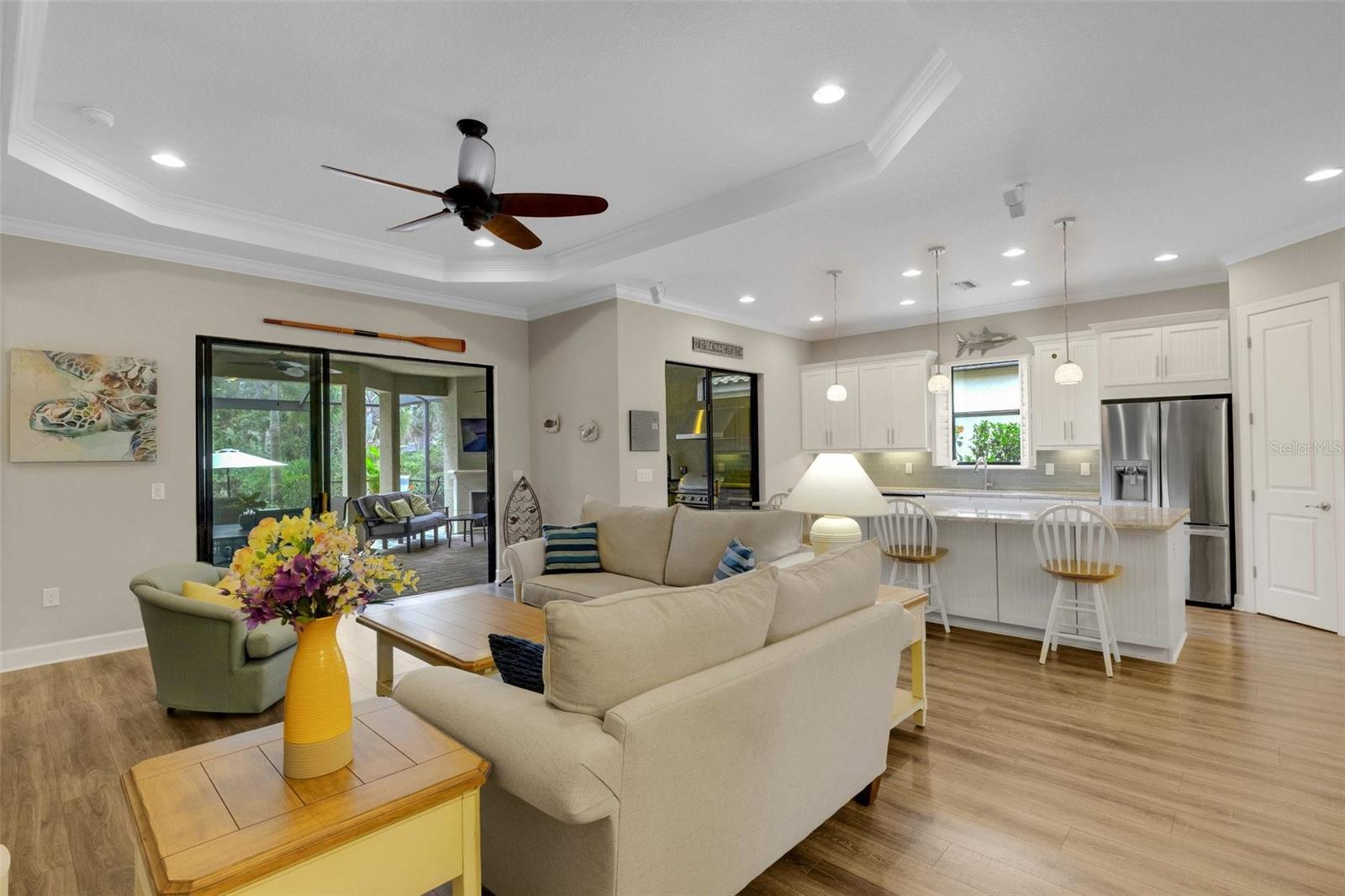 Elegância casual e costeira nesta encantadora comunidade à beira -mar - Bayside, na Little Sarasota Bay! O estilo de vida da Flórida que você sempre sonhou aguarda você em Bayside, em Little Sarasota Bay - um enclave fechado de apenas 49 casas escondidas na baía em Osprey Florida - um dos segredos mais bem guardados da nossa área, idealmente localizados entre Sarasota e Veneza! Esta encantadora casa de piscina oferece 3 quartos, 3 banheiros completos, garagem de carro em tandem 3, uma sala, além de uma sala de estar ao ar livre equipada com uma cozinha e lareira ao ar livre! Situado em um lote premium altamente cobiçado em uma seção de Bayside que ** não requer seguro contra inundações **, os vendedores ficam felizes em informar que esta casa ficou incólume por tempestades recentes! Aproveite a privacidade da reserva enquanto observa a beleza, os pássaros e a vida selvagem da Flórida! O espaço ao ar livre com piscina aquecida a gás e spa, sala de estar coberta, lareira ao ar livre e cozinha ao ar livre são o que é o estilo de vida da Flórida - uma extensão do interior para o ar livre! Você pode até passar mais tempo ao ar livre do que dentro! De volta para dentro, você encontrará atenção dada a todos os detalhes com molduras de coroa em todos os principais espaços e quartos, tetos de volume e tetos de bandeja após a entrada no vestíbulo, sala de estar e quarto primário. Sem carpete nesta casa da Flórida! O piso laminado de tábuas de vinil de luxo é preferido nas casas da Flórida e você o encontrará nos principais espaços e quartos com piso de azulejos de cerâmica nos banheiros. A cozinha gourmet inspirada no chef com despensa, possui uma ilha expansiva com bancadas de quartzo deslumbrantes e excelente para entretenimento. Os aparelhos inoxidáveis incluem a geladeira da porta francesa com freezer abaixo, lava -louças, pia única, alcance de gás, microondas. Timeless Cottage-style 42” white cabinetry with crown molding and a beautiful glass subway tile backsplash completes the design along with under cabinet lighting for beautiful ambiance. Built in 2016 by Taylor Morrison, with over $220k in BUILDER UPGRADES, be sure to ask for a complete list of upgrades and seller improvements, some of which include: outside grill vent, plantation shutters, shelving storage in the garage, & outside lighting around pool Área de um estilo de vida ao ar livre ou relaxante à beira da piscina. Siesta Key Beach, Nokomis Beach, Venice Beach e muitas oportunidades de refeições à beira -mar no ponto e tiki em Point Spanish, Casey Key Fish House, Deep Lagoon, Pop's Sunset Grill e muito mais !!! Assista ao Tour Virtual e The 360 Photo Tour - Não demore - agende uma exibição hoje !!!