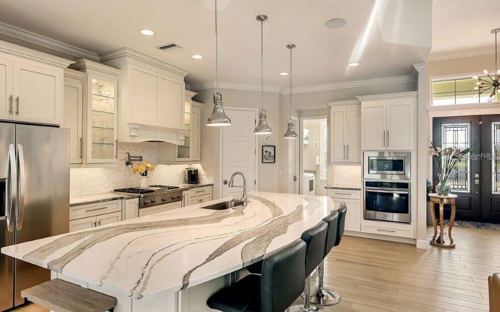 Vistas desobstruídas da baía e luxo costeiro refinado definem esta excepcional residência à beira-mar no condomínio fechado de Bayside. Construída sob medida em 2017 por Rob Allegra e idealmente posicionada em um beco sem saída privado entre Sarasota e Veneza, esta casa oferece uma rara oportunidade de experimentar o melhor do estilo de vida da Costa do Golfo da Flórida. Vistas deslumbrantes da baía e da Intracoastal Waterway cumprimentam você na entrada, enquanto a grande sala dramática apresenta uma cúpula impressionante com tetos altos de 22 pés, janelas envolventes, vigas arquitetônicas e marcenaria detalhada que emolduram lindamente o cenário à beira-mar. Os controles deslizantes de impacto abrem perfeitamente a área de estar para uma ampla varanda coberta, onde o pôr do sol de tirar o fôlego, os golfinhos e a suave brisa costeira criam um cenário diário inesquecível. A cozinha aberta do chef foi projetada tanto para entretenimento quanto para a vida diária, oferecendo eletrodomésticos de aço inoxidável de alta qualidade, fogão a gás com enchimento de panela, refrigerador de vinho, armários abundantes e uma ilha de quartzo enorme. A vida ao ar livre brilha com tetos com painéis de madeira, piso de mármore crema pro, lareira a gás e cozinha externa totalmente equipada com churrasqueira e geladeira de bebidas. A piscina e spa de água salgada com aquecimento solar e bomba de calor, chuveiro ao ar livre e cais privativo com elevador completam o retiro definitivo à beira-mar. A suíte principal desfruta de belas vistas para o mar e possui uma área de estar, teto duplo, closets duplos personalizados e um banheiro luxuoso com pia dupla e box amplo. Dois quartos adicionais com banheiro privativo, um escritório ou escritório e um lavabo proporcionam conforto e flexibilidade. O piso de cerâmica com aparência de madeira é complementado por janelas e portas de impacto, um sistema de segurança inteligente, gerador para toda a casa e sistema de condicionamento de água. Localizada a poucos minutos de Casey Key, Nokomis Beach, Oscar Scherer State Park e Legacy Trail, esta casa oferece acesso fácil a praias, passeios de barco, restaurantes e recreação. Uma extraordinária residência à beira-mar onde o luxo, o conforto e a beleza costeira se unem, oferecendo o estilo de vida que você sempre imaginou.