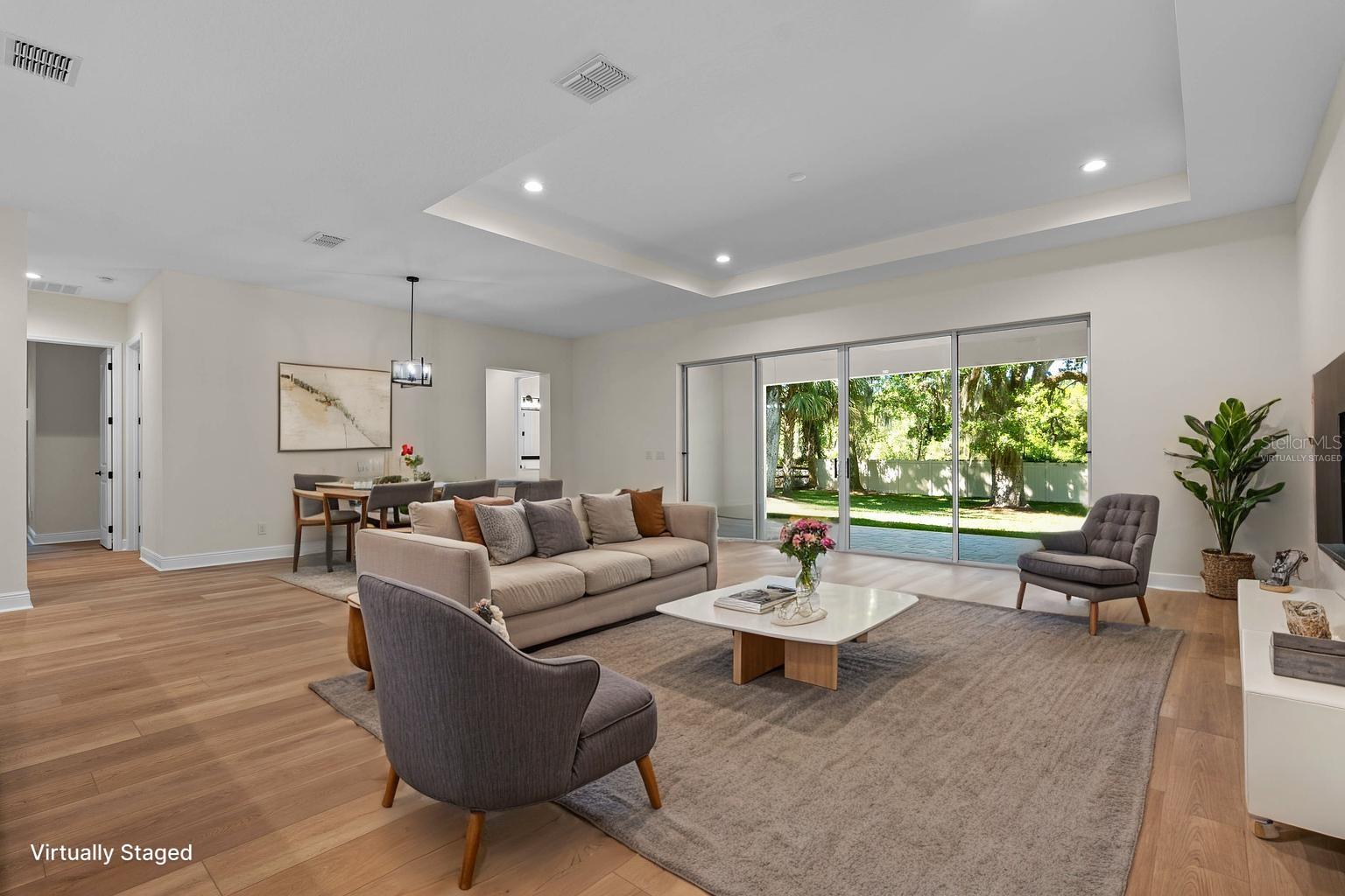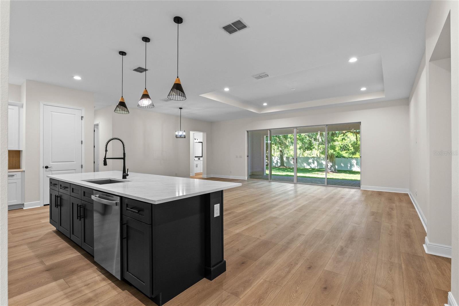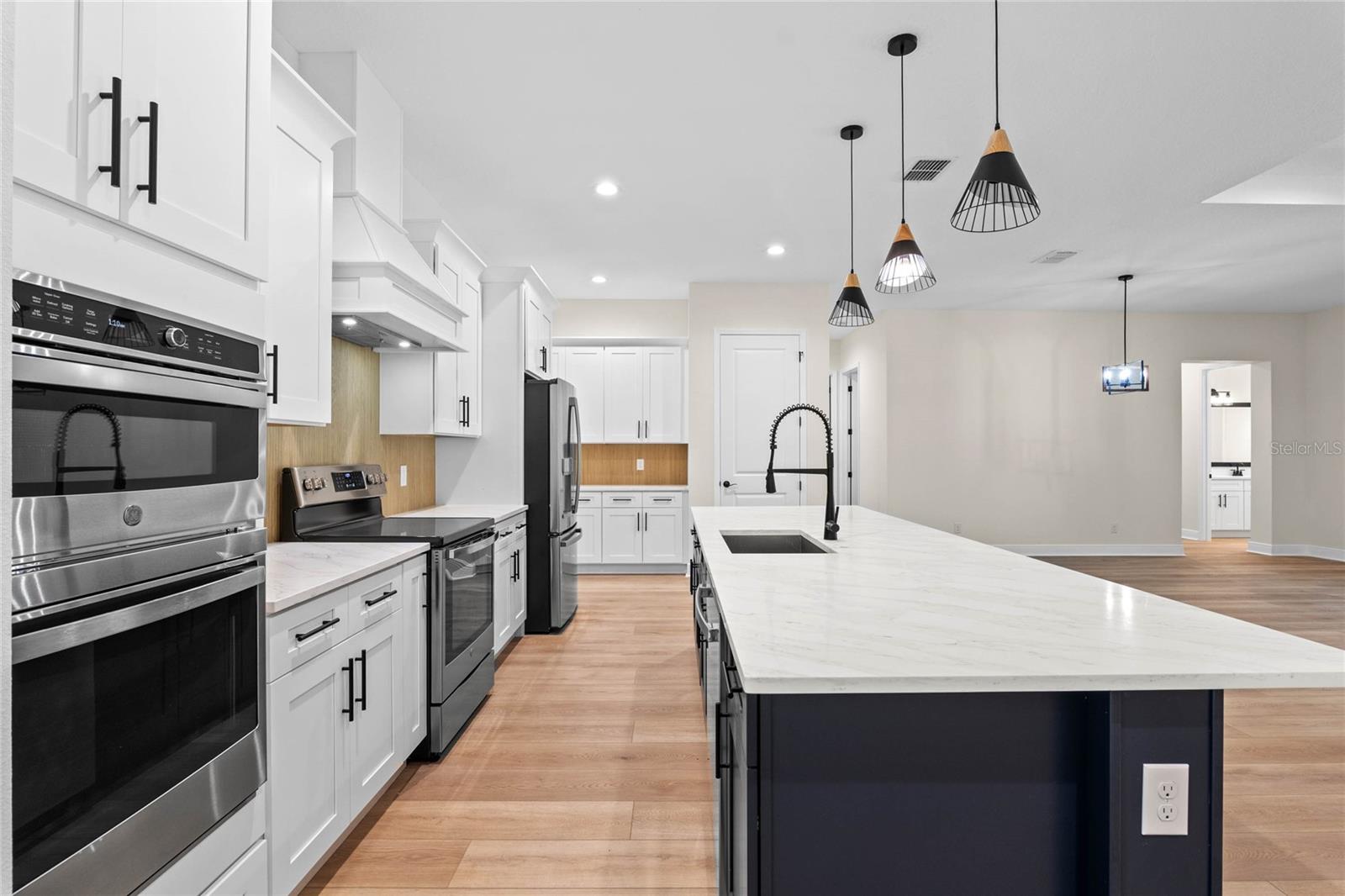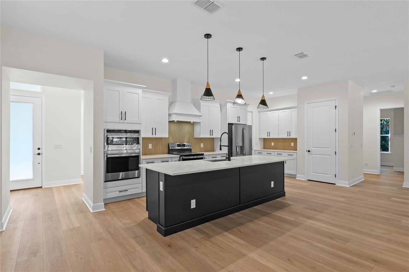 Ajuste de preço! Bem-vindo a esta casa deslumbrante e totalmente nova situada em um espaçoso terreno de 0,50 acres sem HOA. Esta propriedade requintada oferece mais de 2.640 pés quadrados de área útil, com 4 quartos, 3 banheiros completos e um versátil espaço flexível/escritório/escritório. A cozinha do chef é um destaque, apresentando uma grande ilha/balcão de café da manhã, bancadas em granito, portas e gavetas com fechamento suave, eletrodomésticos em aço inoxidável GE Profile, exaustor e despensa. A cozinha se conecta perfeitamente ao quintal através de um controle deslizante de 4 painéis, proporcionando amplo espaço para uma potencial piscina e deck. As características adicionais incluem uma lavanderia interna com pia e armários extras, piso de vinil luxuoso por toda parte e uma sala de jantar/família separada com teto de bandeja. Para quem precisa de arrumação extra, o sótão foi equipado com tábuas de chão para acomodar caixas e artigos de férias. O quarto principal e o banheiro têm um santuário de relaxamento, completo com pias duplas, banheira e chuveiro separados, closet espaçoso com prateleiras e gavetas embutidas, chuveiros até o teto, iluminação cam, espelhos separados e entrada pela porta do celeiro. A varanda coberta oferece um espaço convidativo para a vida interna/externa, perfeito para entretenimento ou desfrutar de uma tarde tranquila. A garagem para 3 carros oferece espaço adicional que pode ser usado como área de treino, veículo extra, oficina ou estacionamento para carrinhos de golfe. Cada detalhe desta casa foi meticulosamente considerado. Localizada na desejável área de Oviedo, esta casa fica perto da Escola Secundária de Oviedo, Oviedo Mall/Teatro, 417, parques, restaurantes e lojas. O bairro é tranquilo e possui excelentes escolas.