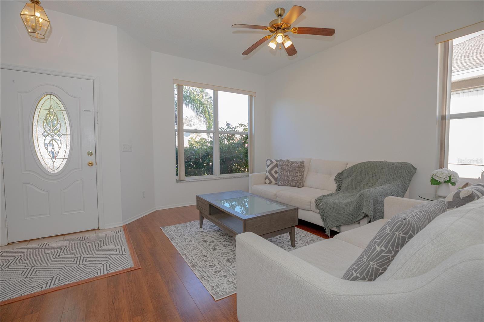 Bem-vindo ao lar! Esta deslumbrante residência familiar de 3 quartos e 2 banheiros oferece a combinação perfeita de conforto e estilo. O coração da casa é uma cozinha lindamente projetada com eletrodomésticos de aço inoxidável, bancadas de granito e amplo espaço para criações culinárias. A espaçosa suíte master é um refúgio à parte, com banheiro principal com pias duplas, box separado e banheira de imersão relaxante. Aproveite a conveniência de uma garagem para 2 carros e o charme adicional de lindos ventiladores de teto por toda parte. Relaxe na varanda da varanda dos fundos, perfeita para reuniões ao ar livre ou manhãs tranquilas. O jardim paisagístico, completo com uma mangueira madura, acrescenta um toque de paraíso à sua vida cotidiana. Não perca esta joia - agende sua exibição privada hoje mesmo!