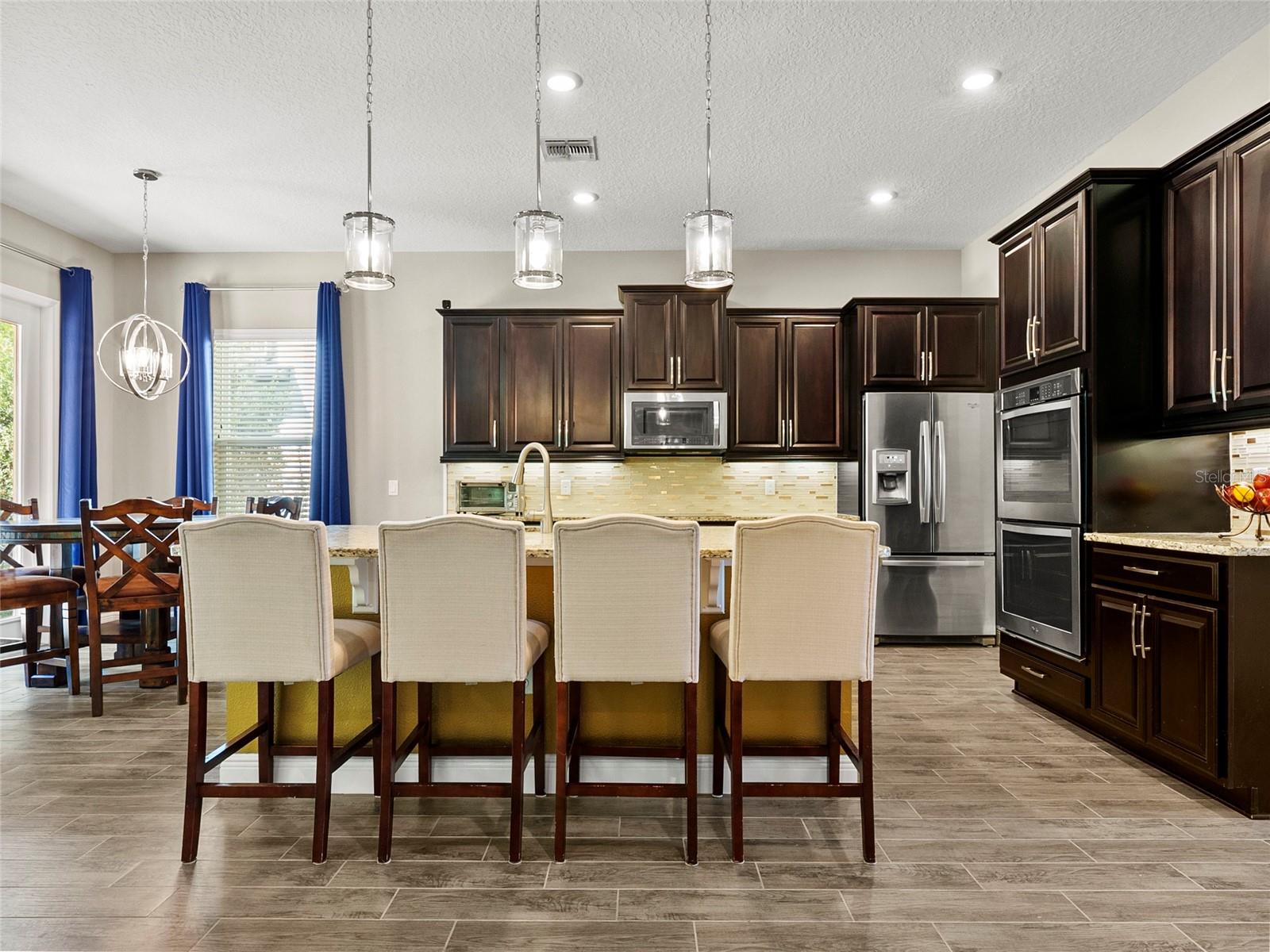 De volta ao mercado - o financiamento dos compradores caiu !! Empréstimo de VA assumido a 2,49% disponível. A impressionante residência de 5 quartos com uma piscina de água salgada aquecida, vistas para preservar e acabamentos de luxo, localizada na comunidade fechada muito procurada dos jardins de Oviedo. Esta casa de dois andares, com eficiência de energia lindamente projetada, oferece mais de 4.200 pés quadrados de espaço de estar e mostra a planta do piso Kerrville II por casas de mérito. Desde o momento em que você entra, você notará a atenção aos detalhes, começando com uma elegante porta da frente de vidro que se abre para um grande hall de entrada com tetos altos e pisos de ladrilhos de cerâmica com aparência de madeira que fluem perfeitamente por todo o nível principal de conceito aberto. As espaçosas áreas de estar e jantar são ideais para o conforto divertido e diário, ancorado por uma cozinha gourmet com bancadas em granito, utensílios de aço inoxidável, uma grande ilha com assentos de bar e ricos armários de café expresso. Apenas na área de estar principal, há um quarto privado desejável no primeiro andar, perfeito para os hóspedes ou uma vida multigeracional, com seu próprio banheiro completo e acesso direto ao espaço ao ar livre. Conectar ambos os níveis é uma escada elegante de madeira com detalhes em fuso de ferro, adicionando um toque de sofisticação ao design da casa. No andar de cima, você encontrará a expansiva suíte primária, um retiro privado com um banheiro semelhante ao spa, oferecendo uma banheira de imersão, armário de água privado, chuveiro de ladrilhos com prateleiras embutidas e um grande closet personalizado. Todos os quartos secundários também estão localizados no segundo andar e apresentam armários espaçosos. O nível superior também inclui um loft generoso com um bar molhado embutido e uma sala de mídia dedicada-perfeita para noites de cinema, dia de jogo ou convidados divertidos. Saia do seu oásis de quintal privado, com uma piscina de água salgada aquecida, aprimorada por um pátio exibido, vistas cobertas e tranquilas da reserva arborizada. A piscina vem equipada com um limpador de piscina robótica para manutenção fácil, tornando -a tão prática quanto relaxante. As atualizações adicionais incluem uma garagem de três carros, uma garagem de pista de tijolos, um teto de ladrilhos e paisagismo lindamente mantido que aumenta o apelo do freio. A casa também está equipada com um kit de transferência de geradores externos, atendendo ao painel de 150 ampadas no térreo-fornecendo a paz de espírito adicional durante a temporada de tempestades. Esta casa oferece a mistura perfeita de acabamentos de luxo, layout atencioso e ambiente tranquilo, tudo dentro de um condomínio fechado seguro. Não perca a oportunidade de tornar essa propriedade excepcional a sua. Agende sua turnê privada hoje!