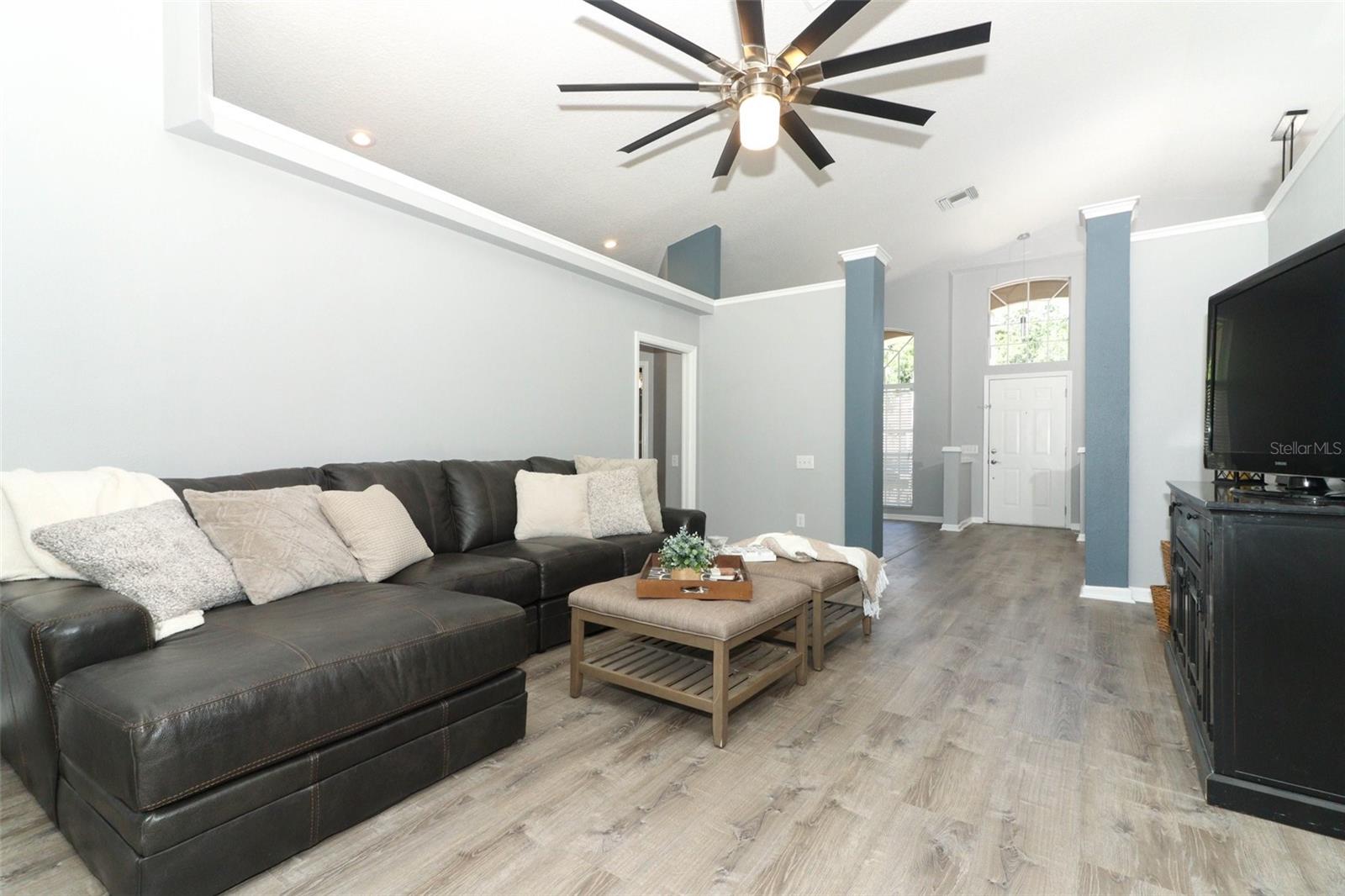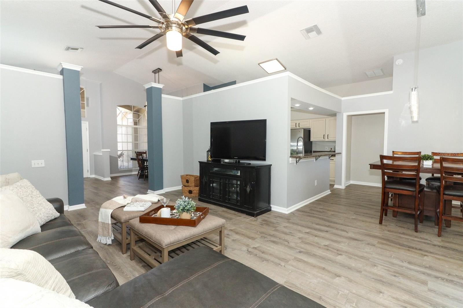 Mudar pronta 4 quartos 2 banheiros Piscina para casa em um beco sem saco com conservação privada em seu quintal !!! Riverside em Twin Rivers, em Oviedo, com toques reformados por toda parte. Piso de vinil de luxo ... sem tapete !!! Vista espetacular da piscina com luz natural o cumprimenta na entrada. Dinning e sala de estar formal com quarto de família adicional e espaço de lanchonete. A cozinha tem vista para o pátio e o quintal. Dividido planejado. As atualizações recentes incluem: telhado 2017, AC 2020, aquecedor de água novo elemento 2022, bomba de piscina e filtro de areia 2020-2021, microondas e lavadora de louça 2025. Novo hardware e dobradiças em todas as portas. Fãs de iluminação e teto contemporâneos. Lavanderia interna. Pátio cercado pouco mais de 0,26 acres. A suíte principal do banheiro oferece suas pias, chuveiro de pedra atualizado, banheira de imersão e enorme closet. O banho de hóspedes abre para a área da piscina e o chuveiro na piscina no convés para enxaguar. Persianas por toda parte. O gás natural para churrasqueira e piscina e spa pode ser reconectado.