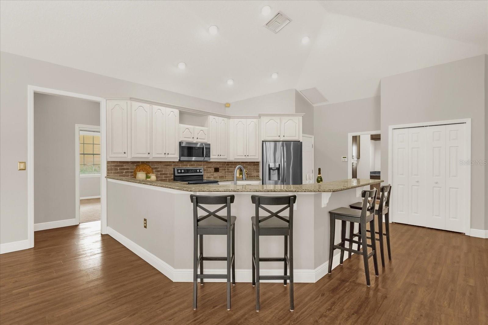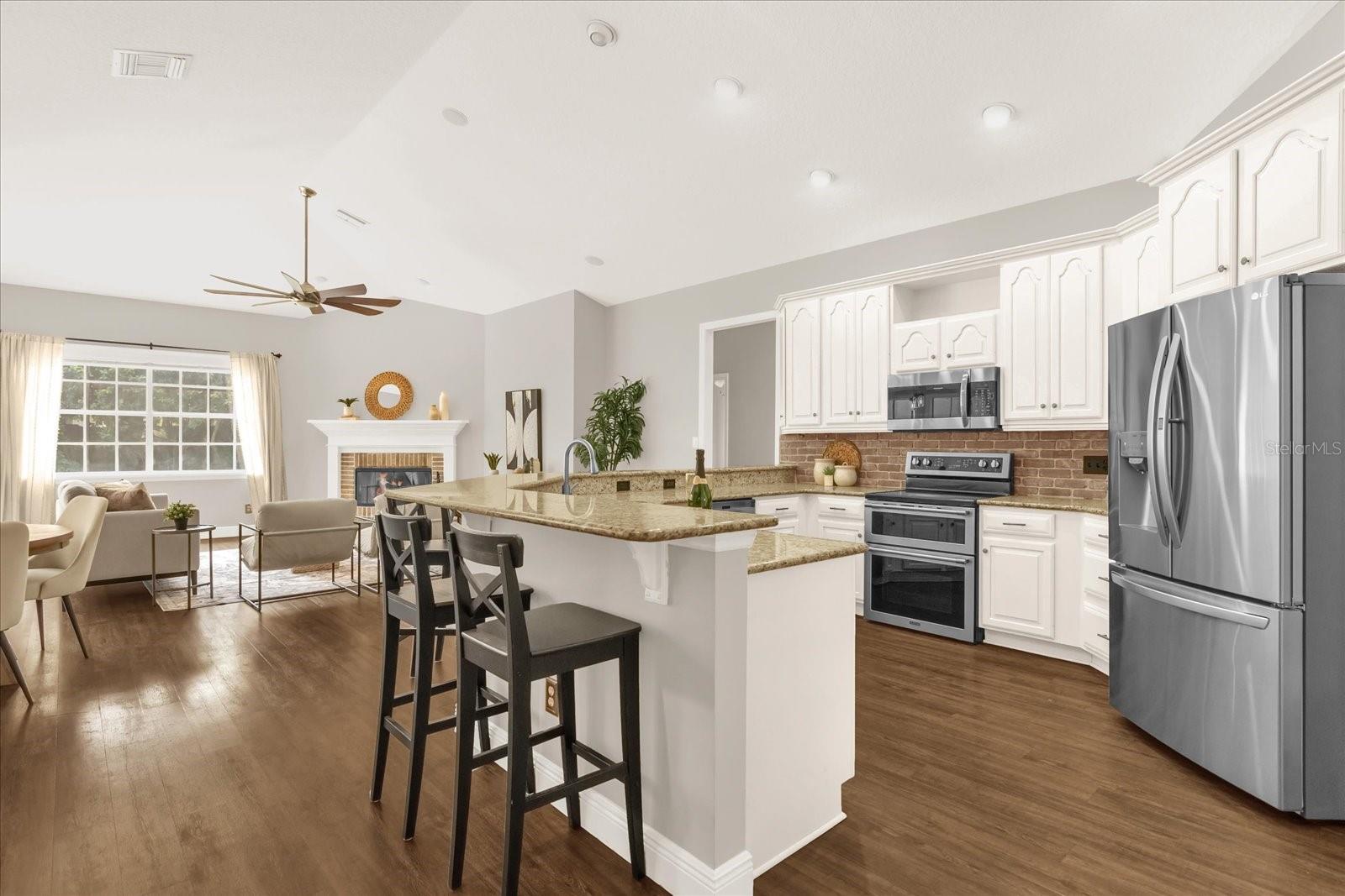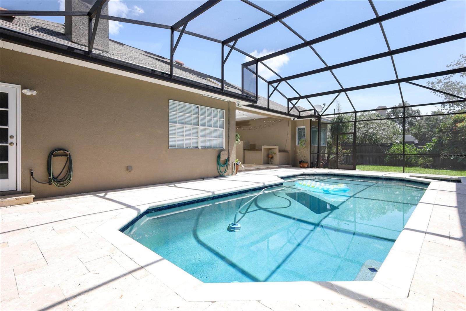 Linda piscina de 3 quartos de 4 quartos na casa da Comunidade Oviedo desejável de Kingsbridge West! This amazing home is nestled on a tranquil and quiet tree-lined street, has tons of recent upgrades including brand new Carrier AC unit, luxury vinyl plank flooring in the kitchen and living area, fully remodeled master bathroom, kitchen revamped with back splash, lighting and stainless appliances, pool resurface and new tile, summer kitchen for grilling, beautiful travertine on the pool deck and covered patio, pool cage repainted, septic drain field Substituído e carpete novo na semana passada! O piso plano aberto flexível e o Oasis privado externo permitem uma vida divertida e cotidiana. Esta casa está se movendo pronta e verifica todas as caixas! O Kingsbridge West oferece comodidades de estilo resort, incluindo quadras de tênis iluminadas, playground e píer de pesca com lago de 120 acres de longo prazo, abastecido com graves e branqueamento azul! Não perca a oportunidade de possuir esta magnífica piscina de Oviedo em casa! Agende sua turnê privada hoje!