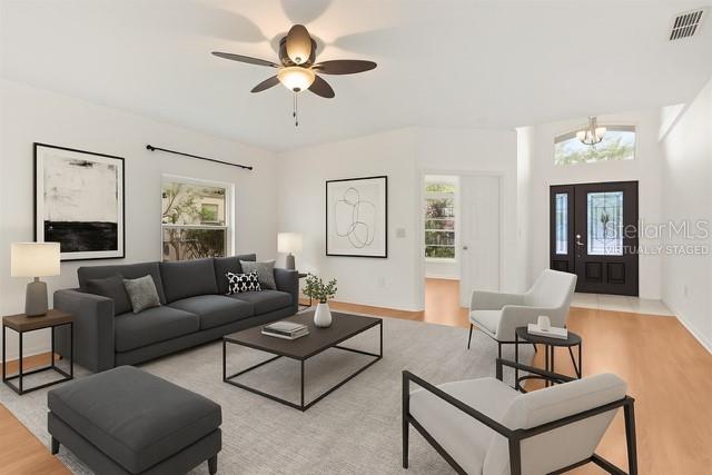Linda casa em Oviedo, pronta para morar, sem vizinhos nos fundos! Esta residência de 3 quartos e 2 banheiros foi cuidadosamente mantida e está localizada em uma subdivisão desejável zoneada para as melhores escolas de Oviedo, perto de lojas, restaurantes, Oviedo on the Park, UCF e 417. A casa possui espaçosas áreas de estar e jantar abertas com piso de superfície dura, uma cozinha gourmet reformada em 2024 com bancadas de quartzo, pias de porcelana, armários de madeira maciça de 42”, despensa, área de café da manhã e eletrodomésticos mais novos de aço inoxidável. A suíte principal ampla oferece closet e banheiro privativo embutido, enquanto ambos os banheiros possuem balcões de quartzo atualizados. Saia para a varanda coberta de 15x12 para desfrutar de vistas tranquilas da floresta e do lago. As atualizações recentes incluem um telhado mais novo (2017), AC (2017), aquecedor de água (2022), pintura externa (2014) e janelas/corrediças de reposição, além de um galpão externo com eletricidade. Com taxas HOA baixas e escolas com classificação A, esta propriedade oferece a combinação perfeita de conforto, conveniência e tranquilidade.
