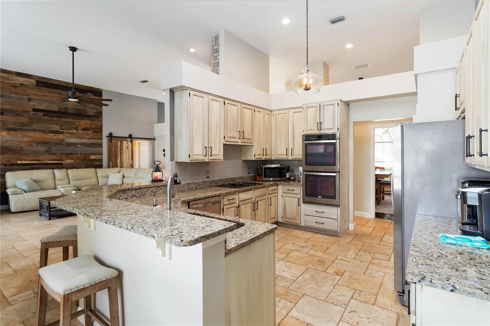 Casa com piscina lindamente conservada em um terreno de esquina enorme com cerca de vinil, localizada no cobiçado condomínio fechado de River Walk, em Oviedo. Esta casa de 4 quartos e 2,5 banheiros apresenta uma planta dividida funcional, garagem para 3 carros e um retiro com piscina privativa projetado para relaxar e se divertir. As principais atualizações incluem um telhado arquitetônico de 30 anos (2018), sistema de ar condicionado (2018), re-tubulação para toda a casa (2014), aquecedor de piscina (2020) e uma piscina recapeada com azulejos atualizados, proporcionando tranquilidade e um espaço ao ar livre renovado nos próximos anos. Entre pelas elegantes portas duplas de vidro e você encontrará um layout aberto e convidativo com tetos abobadados, parede com detalhes personalizados, lareira de tijolos e belos pisos de travertino e madeira de acácia por toda parte. A cozinha foi atualizada com bom gosto com bancadas de granito, eletrodomésticos de aço inoxidável e se abre para uma espaçosa sala grande com controles deslizantes triplos que levam à varanda de grandes dimensões e à área da piscina. Os destaques adicionais incluem uma copa, área de jantar formal e uma sala de estar frontal que pode facilmente servir como escritório ou espaço flexível. A suíte principal possui ricos pisos de madeira, closets duplos e um impressionante banheiro remodelado com armários de madeira maciça, balcões de mármore, piso de travertino, box amplo com detalhes em mosaico e banheira de imersão estilo spa. Acima da garagem, você encontrará uma área de armazenamento substancial que oferece muito espaço extra para itens sazonais ou hobbies. River Walk é conhecida por suas casas bem cuidadas, ruas arborizadas e escolas de alto nível em Oviedo. Convenientemente localizada perto de UCF, Siemens, Lockheed Martin e Research Park, esta casa combina perfeitamente conforto, qualidade e localização!