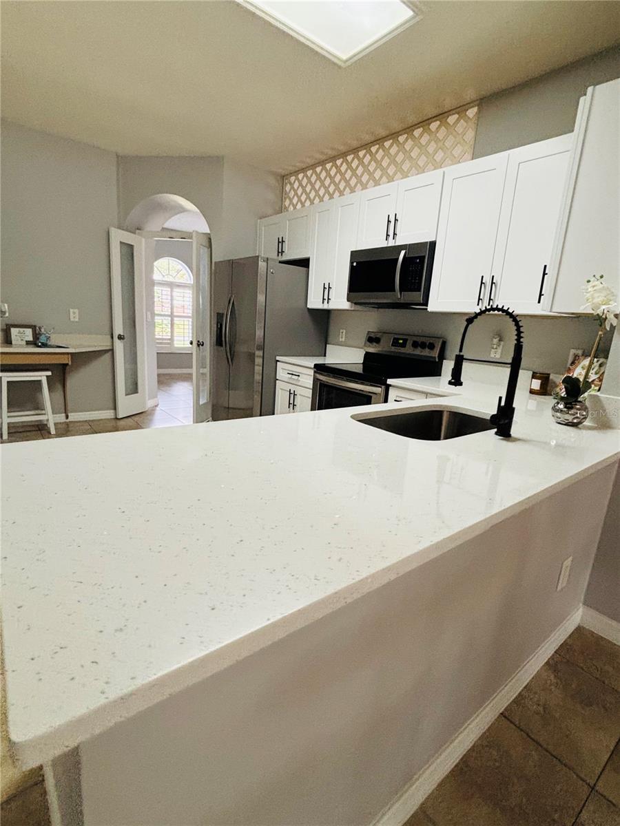 Bem-vindo a esta casa térrea de 4 quartos lindamente atualizada, localizada no altamente desejável condomínio fechado Ekana Green, em Oviedo. As atualizações cuidadosas concluídas em 2025 incluem uma COZINHA NOVA, NOVO SISTEMA DE A/C, NOVAS CALHAS e um NOVO SISTEMA DE ASPERSO. A cozinha moderna possui bancadas de quartzo e backsplash, uma pia de pia única e novos micro-ondas e fogão, e se abre perfeitamente para a sala da família, criando um espaço aberto e iluminado no estilo da Flórida, com vistas tranquilas do exuberante quintal e das palmeiras. A planta baixa repleta de luz oferece persianas elegantes e piso de cerâmica por toda parte, e inclui salas de estar e jantar formais, uma copa e uma espaçosa sala de família. Saia para um grande quintal perfeito para entretenimento, brincadeira ou relaxamento, com a opção de adicionar uma piscina e/ou uma cerca para maior privacidade. Esta casa coloca você em uma localização imbatível com ESCOLAS A-RATED, incluindo a Hagerty High School. Você está a poucos minutos de Oviedo on the Park, Oviedo Mall, UCF, Waterford Lakes, parques locais, lojas, restaurantes e conveniências do dia a dia. As principais rodovias – 419, 434, 426 e 417 – estão todas próximas para facilitar o deslocamento. Não perca a chance de possuir esta joia. Agende sua exibição privada hoje mesmo!