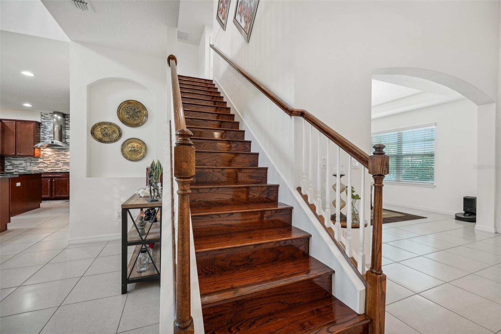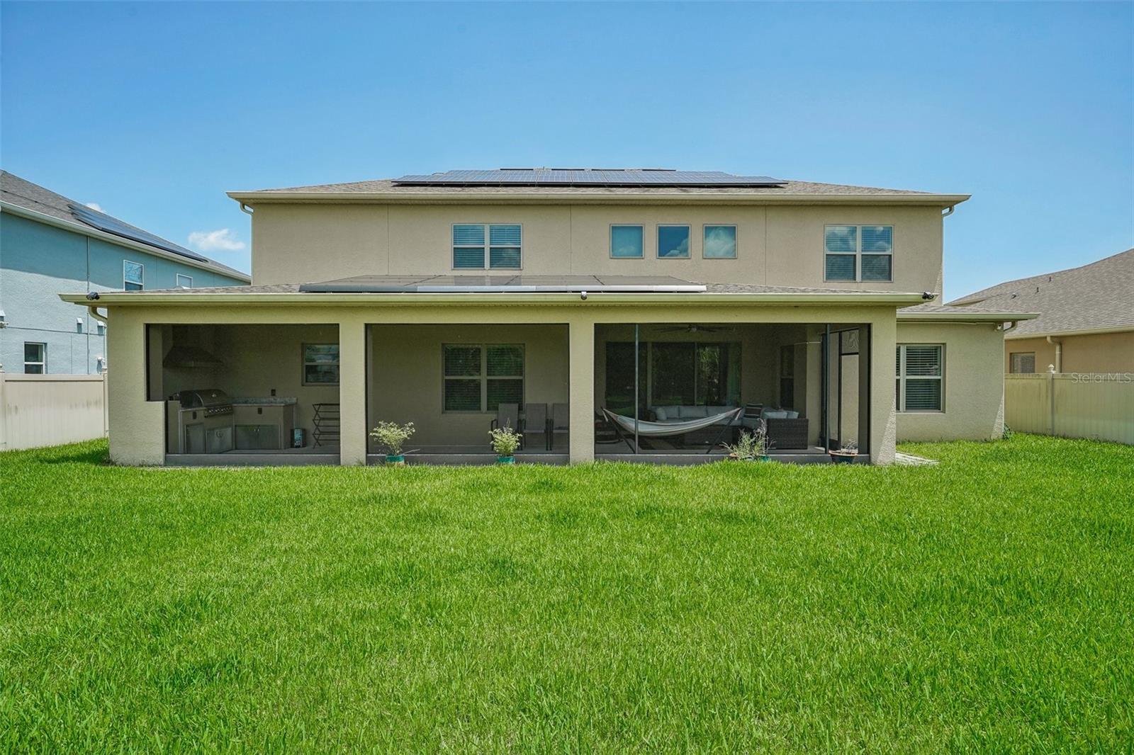 PREÇO REDUZIDO!! Entre no epítome do luxo moderno com esta requintada residência de 6 quartos, 3 e 1/2 banheiros e garagem para 3 carros, abrangendo mais de 4.200 pés quadrados de elegância incomparável no condomínio fechado de Southern Oaks. Esta propriedade excepcional é um verdadeiro testemunho da fusão de tecnologia avançada, recursos luxuosos e design atemporal, criando uma experiência de vida que transcende o comum. Fora do hall de entrada, uma sala flexível ou escritório fica à direita e a sala de jantar FORMAL à esquerda. Você então entra no centro da casa e em uma grande sala de família. A partir daqui você pode caminhar até a bela LANAI ESTENDIDA COM COZINHA DE VERÃO e amplo espaço para adicionar sua própria piscina. A sala familiar se abre para a reluzente cozinha GOURMET, que possui amplo balcão, fogão de topo liso com exaustor, despensa, ilha central e ilha de trabalho adicional maior com balcão para café da manhã. De um lado da cozinha, uma sala de jantar casual e entrada para uma lavanderia. A espaçosa e elegante suíte do proprietário está situada no lado oposto do primeiro andar para maior privacidade e conveniência. A suíte inclui dois closets e um banheiro com duas pias e penteadeiras, uma convidativa banheira de jardim e um chuveiro separado, grande e contemporâneo. Suba as lindas escadas de PINHO até o segundo andar até um loft com vista para a sala da família. Todos, exceto um dos quartos secundários, possuem closets. Uma sala de jogos e uma sala de mídia compartilham este nível com os quartos. Mergulhe em um mundo de luxo cinematográfico com um home theater meticulosamente atualizado com sistema Dolby Atmosphere, uma grande tela de 120 polegadas, projetor e assentos de teatro, oferecendo uma experiência de teatro no conforto da sua casa. TUDO ALIMENTADO POR TESLA POWER WALL E PAINÉIS SOLARES. Com sua variedade de recursos luxuosos e soluções de energia sustentável, representa uma oportunidade excepcional de experimentar o que há de melhor na vida moderna e luxuosa. Agende sua exibição hoje mesmo!