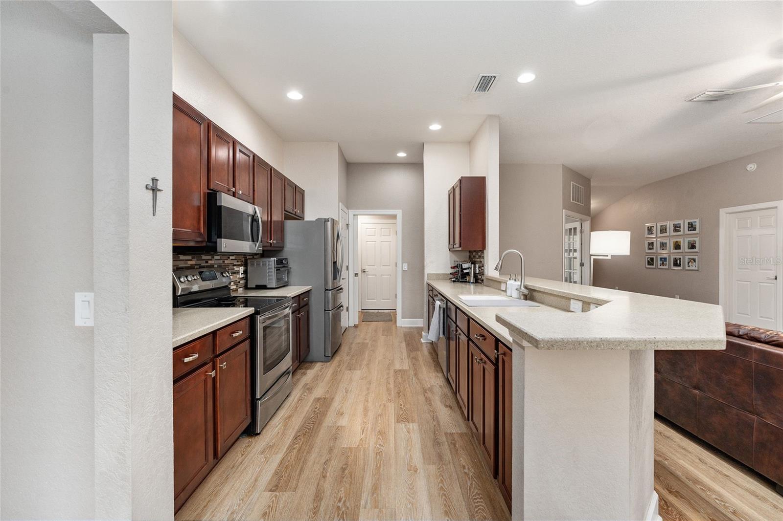 NOVO PREÇO! O NOVO TAPETE NEUTRO PARA OS 3 QUARTOS APENAS FOI INSTALADO! PARECE UMA CASA NOVA. Bem-vindo 10015 Ketch Kay Ln em Windward of Lakeside Landing. Dê um pulo até The Villages com um carrinho de golfe Street Legal! Aproveite o estilo de vida da Flórida no fantástico clube completo com piscina estilo resort, duas banheiras de hidromassagem e academia, além de um fabuloso estilo de vida livre de manutenção. O HOA faz tudo por você! Este modelo Pelican de três quartos e dois banheiros foi projetado pensando na geração de trabalho em casa. Esta casa tem um arrumos/escritório para lhe dar a privacidade que necessita para realizar o seu trabalho além de 3 Quartos! O novo piso LVP percorre toda a parte principal da casa, desde a porta da frente até a cozinha. A preparação das refeições será um sonho com todos os armários extras e o balcão de superfície sólida que esta casa tem a oferecer. Os eletrodomésticos em inox contribuem para a aparência clean. Está configurado em conceito aberto para que você possa desfrutar da sua companhia na grande sala enquanto prepara um banquete na cozinha. Falando em sala grande, dê uma olhada na lareira elétrica! Realmente dá o clima com as chamas dançantes. É ainda funcional para fornecer um pouco de calor nas manhãs frias da Flórida. Você também vai gostar da planta dividida com quartos familiares e banheiro de um lado, e o quarto principal está localizado no lado oposto da casa. O grande primário tem dois armários e um banheiro privativo completo com chuveiro romano, pias duplas e vaso sanitário separado. O entretenimento ao ar livre é muito fácil com a varanda com tela 28x8 e o quintal espaçoso. Até mesmo uma garantia doméstica limitada será fornecida para sua tranquilidade. (Plano de até US$ 650) Restaurantes e compras ficam a poucos minutos de distância na Hwy 466. Veja o vídeo profissional online em: https://www.youtube.com/watch?v=-I6SWxserPg Por que não tornar esta linda casa em Lakeside Landing sua?