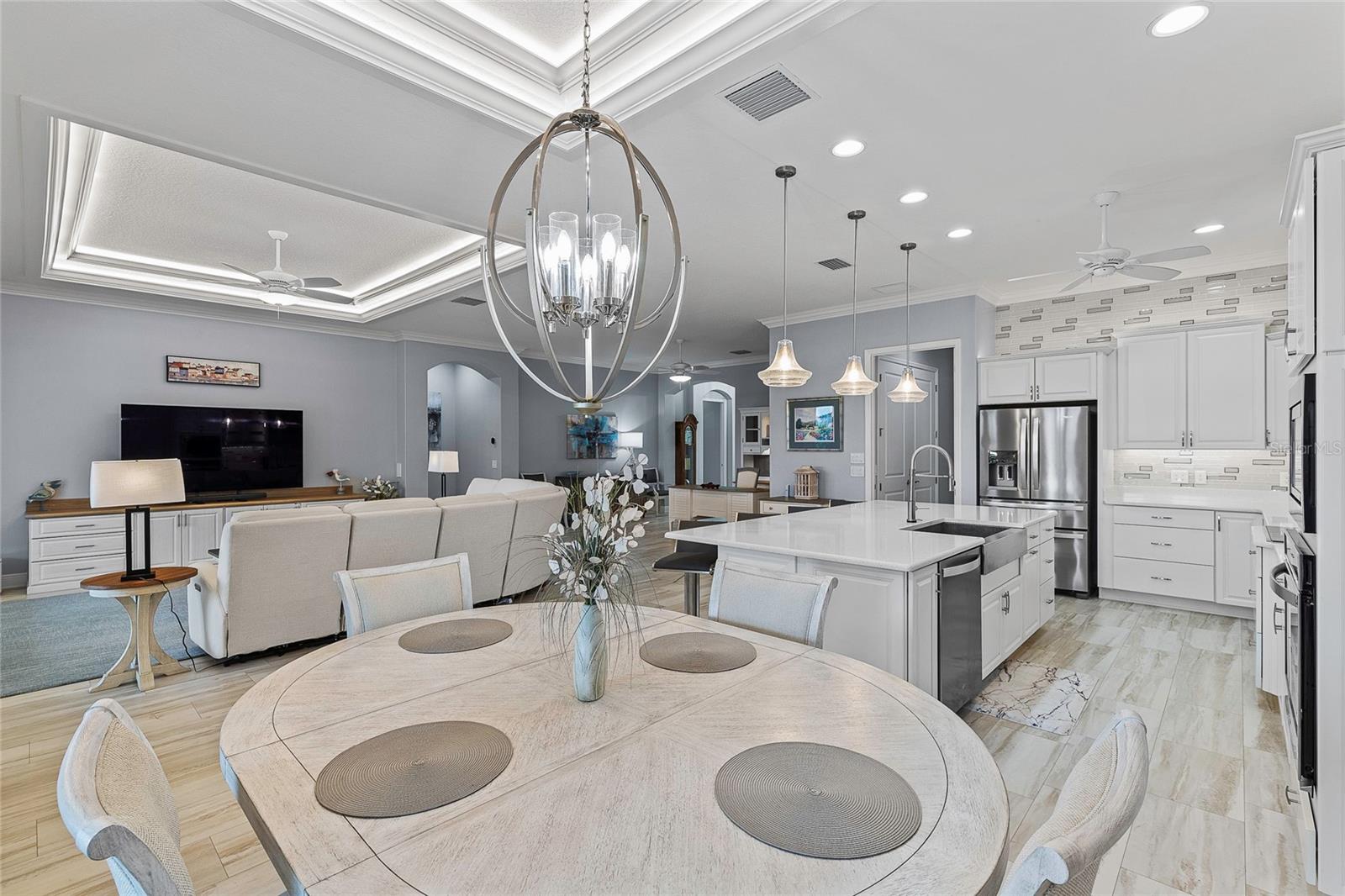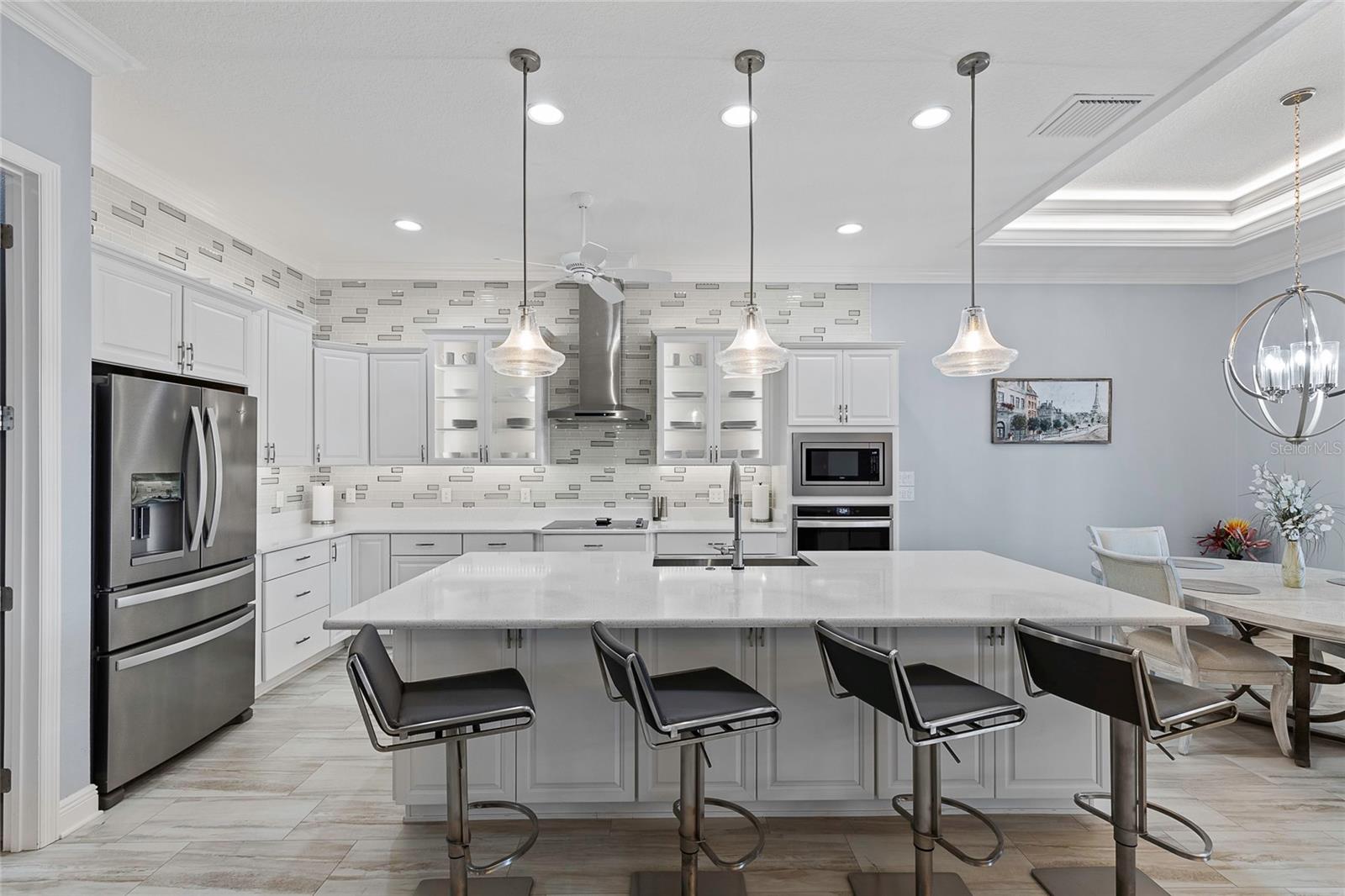 Descubra elegância e sofisticação incomparáveis nesta casa de designer modelo Laurel Oak localizada na muito procurada comunidade de Oxford Oaks! Oferecendo 3 quartos, 2 banheiros e meio e 2.428 pés quadrados de área útil, esta joia absoluta certamente brilha! A partir do momento em que você passa pela deslumbrante porta de vidro chanfrado e entra no grande hall de entrada, você é envolvido por uma sensação de tranquilidade. A casa possui sancas requintadas, pintura interior neutra e serena, bancadas de quartzo por toda parte, iluminação de cozinha sob o armário, gavetas com fechamento suave e tetos duplos com iluminação oculta na grande sala, sala de jantar e quarto principal. A cozinha gourmet é uma delícia para o chef, com eletrodomésticos de última geração, BANCADAS DE QUARTZO IMPRESSIONANTES, BACKSPLASH DE AZULEJO de tirar o fôlego, AMPLO armazenamento, iluminação sob o armário, GAVETAS SOFT-CLOSE, uma ILHA ESPAÇOSA com uma grande pia de fazenda em aço inoxidável. Adjacente à cozinha, a área de jantar e a sala de estar fluem perfeitamente, facilitando a realização de reuniões. Retire-se para a luxuosa suíte master, completa com um CHUVEIRO ROMANO tipo spa, BANCADAS DUPLAS, BANCADAS DE QUARTZO e um generoso armário PERSONALIZADO. Os quartos adicionais são igualmente espaçosos e bem equipados, completos com PERSIANAS DE PLANTAÇÃO em toda a casa, oferecendo conforto e privacidade para familiares ou convidados. Para aumentar o fascínio desta casa requintada, há uma lavanderia dedicada completa com uma área de mesa/escritório embutida. Este espaço é complementado por um elegante lavabo adornado com venezianas, convenientemente situado em frente a uma vasta despensa de cozinha. Depois de se apaixonar pelo interior, saia para sua ENORME varanda fechada com tela pelas PORTAS FRANCESAS, onde você descobre um local ideal para desfrutar de café da manhã ou coquetéis à noite com vista para o quintal totalmente cercado. Com ILUMINAÇÃO ENCASTRADA, 6 ventiladores de teto e lindo piso em epóxi, este refúgio ao ar livre é perfeito para animais de estimação, brincadeiras e relaxamento, garantindo diversão sem fim sem a intrusão dos vizinhos dos fundos. Sem mencionar que há muito espaço para uma piscina!!! Uma das muitas características que se destacam desta incrível casa é a GARAGEM PARA 3 CARROS. Esta é uma VERDADEIRA GARAGEM PARA 3 CARROS (não apenas uma garagem para carrinhos de golfe) que oferece amplo espaço para veículos e arrumação, tornando a organização fácil e eficiente. Esta casa absolutamente impecável está situada em uma das melhores comunidades ao redor - Oxford Oaks! Este condomínio oferece comodidades fabulosas por uma taxa HOA muito baixa de US$ 55/mês, incluindo uma piscina estilo resort, quadras de picles, tênis e basquete, equipamentos de ginástica ao ar livre e um playground divertido! Não perca a oportunidade de possuir esta casa requintada que combina luxo, privacidade e conveniências modernas. Agende hoje mesmo seu tour privado e experimente a elegância e conforto que esta propriedade excepcional tem a oferecer. ***Não deixe de conferir o VÍDEO PASSEIO PASSADO!!!***