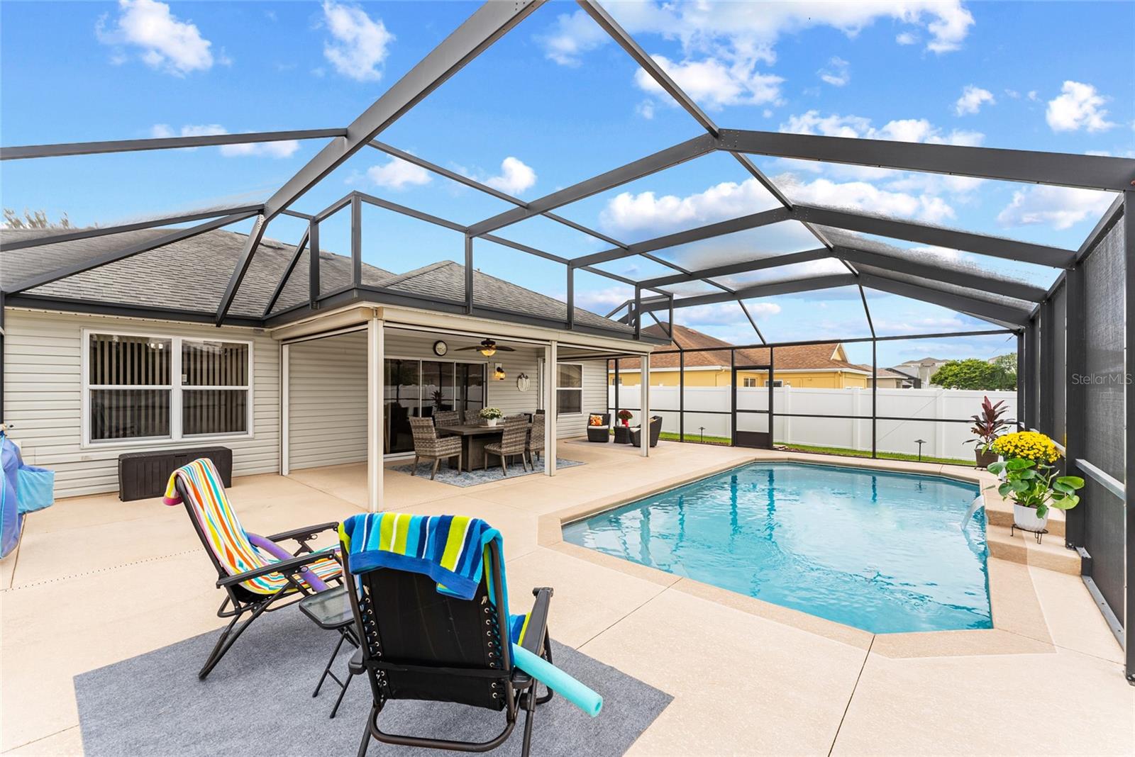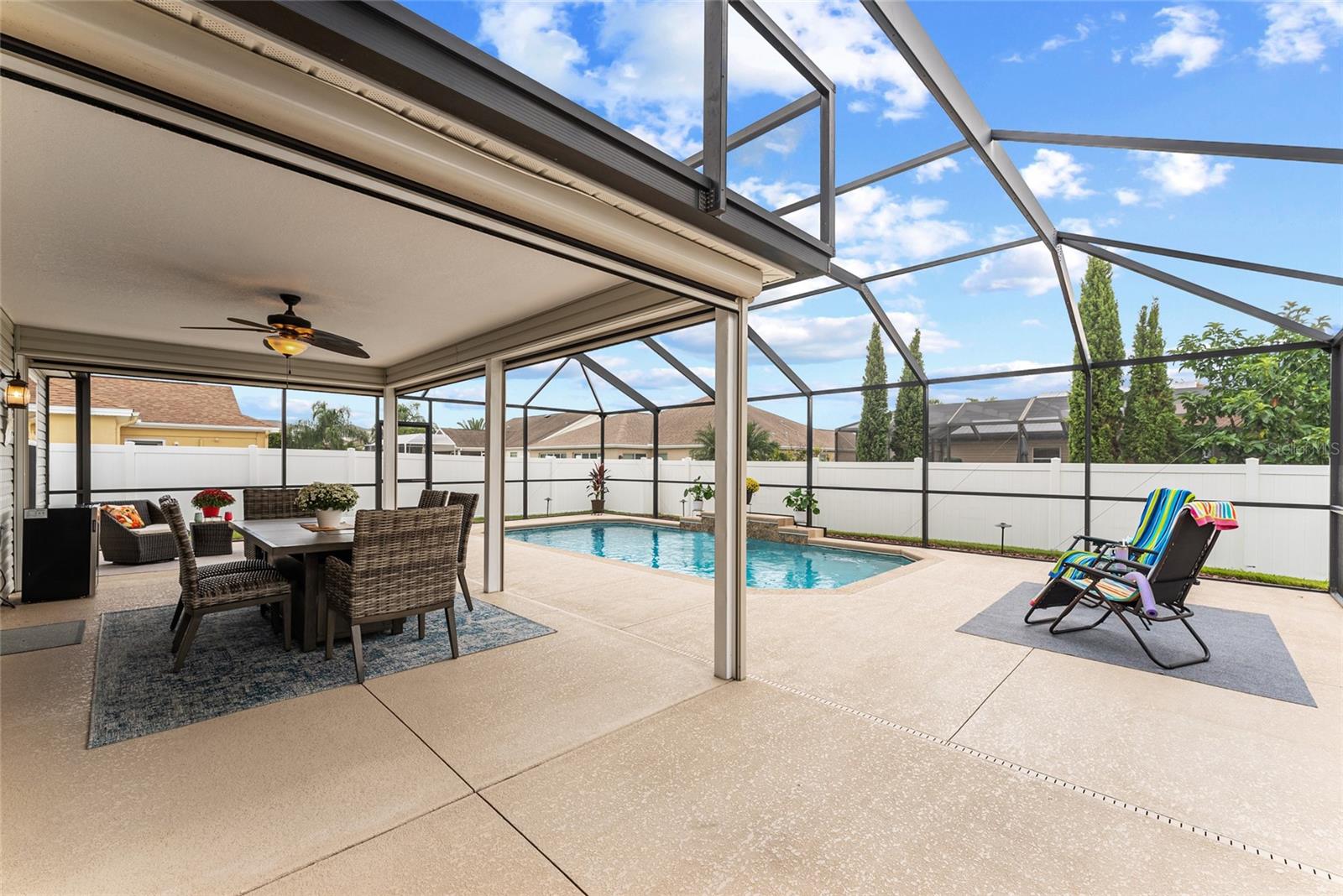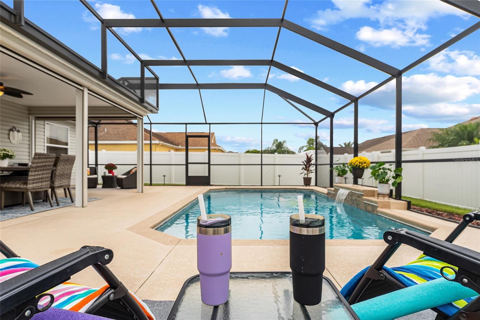 TOTALMENTE MOBILIADO e ACESSORIZADO designer Jasmine POOL HOME em comunidade para todas as idades com ACESSO A CARRINHO DE GOLFE a muitos restaurantes e varejistas em The Villages e perto da Villages Elementary Charter School. Esta casa construída na Turnkey Villages está localizada no bairro de TODAS AS IDADES de BISON VALLEY. SEM PAGAMENTOS DE TÍTULOS, TAXAS DE MANUTENÇÃO OU TAXAS DE COMODIDADE MENSAIS! O custo da Associação de Proprietários de Casa é de aproximadamente US$ 345 anuais. Aproveite seu quintal PRIVADO CERCADO com PISCINA DE CACHOEIRA e deck de piscina em uma EXPANSIVA BIRDCAGE que oferece várias áreas de estar e também abrange a LANAI COBERTA. A casa foi atualizada com piso LAMINADO, VENTILADORES DE TETO ILUMINADOS e tratamentos de janela por toda parte. O EAT IN KITCHEN dispõe de bancada em GRANITO, ARMÁRIOS EXPRESSO, ELETRODORES DE COZINHA EM INOX, mesa e cadeiras de cozinha e BAR DE PEQUENO ALMOÇO com banquetas abertas para a Sala que está BEM MOBILIADA, incluindo SOFÁ E CADEIRA RECLINÁVEIS, mesas, cadeiras laterais, iluminação TV DE TELA PLANA DE PAREDE, SISTEMA DE SOUND BAR SURROUND e LAREIRA ELÉTRICA. À direita desta área está a SUÍTE PRIMÁRIA, completa com CAMA QUEEN, mesinhas de canto, lençóis, tapete, acessórios, WALK IN CLOSET PERSONALIZADO e BANHEIRO SUITE. O banheiro possui BALCÃO DE GRANITO, pias duplas, armário de roupa de cama e WALK IN SHOWER. A lavanderia com LAVADORA E SECADORA GRANDE, pia funda e armário grande está localizada ao lado da Suíte Primária para máxima comodidade. No lado oposto da casa fica a ALA DE HÓSPEDES com dois QUARTOS DE HÓSPEDES, um com DUAS CAMAS DE CASAL e outro com CAMA QUEEN. Ambos com PRATELEIRAS PERSONALIZADAS, VENTILADORES DE TETO ILUMINADOS e incluem roupa de cama, tapete e acessórios. Um BANHEIRO DE HÓSPEDES com combinação de banheira/chuveiro completa a Ala de Hóspedes. Da sala de estar, STACKING SLIDERS se abrem para a LANAI COBERTA, completa com MESA DE JANTAR E CADEIRAS DE FIREPIT, REFRIGERADOR DE BEBIDAS e TELAS DE SOL/VENTO COM ALIMENTAÇÃO REMOTA que podem envolver a varanda. O grande deck da piscina com gaiola oferece um bom sol, mas sem insetos e possui VÁRIOS GRUPOS DE ASSENTOS que também PERMANECEM NA CASA. Do lado de fora da gaiola há um grande pátio com churrasqueira que também permanece com a casa. A GARAGEM PARA DOIS CARROS possui escada de acesso ao sótão, armário mecânico, AQUECEDOR DE ÁGUA ELÉTRICO 2022 e arrecadação. Localizado perto da escola primária The Villages Charter, das escolas públicas de Wildwood e de várias outras. TODOS OS MÓVEIS, ROUPA DE CAMA, OBRAS DE ARTE, ACESSÓRIOS, Utensílios de COZINHA, TVs etc. foram adquiridos em 2023/2024. COMECE A VIVER SUA MELHOR VIDA nesta linda CASA COM PISCINA com ACESSO A CARRINHO DE GOLFE às Aldeias. Carrinho de golfe Yamaha Gas 4 Seat disponível como venda adicional. Esta excelente propriedade também pode ser adquirida para arrendamento de longa duração com arrendamento mínimo permitido de 6 meses.