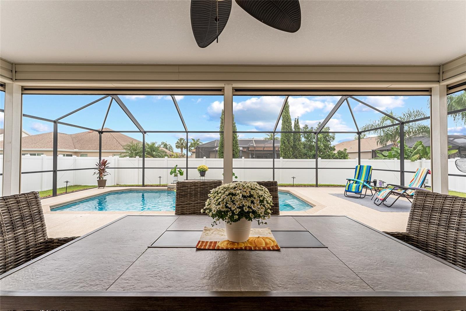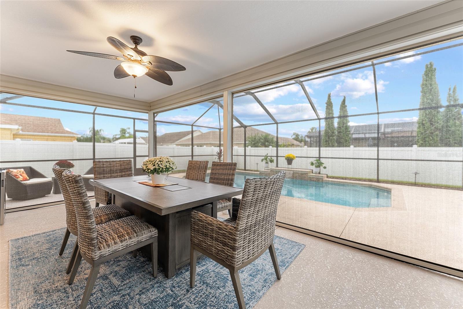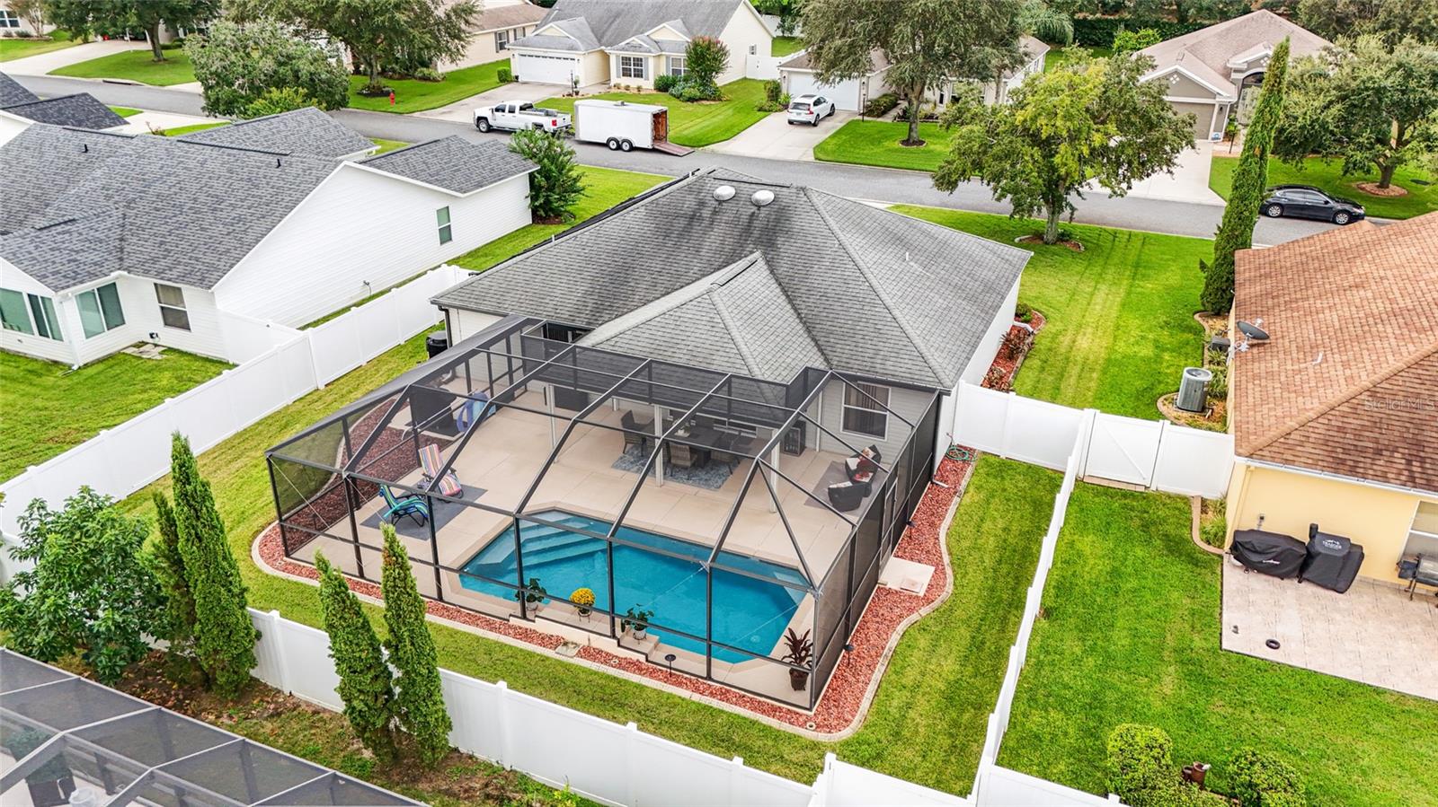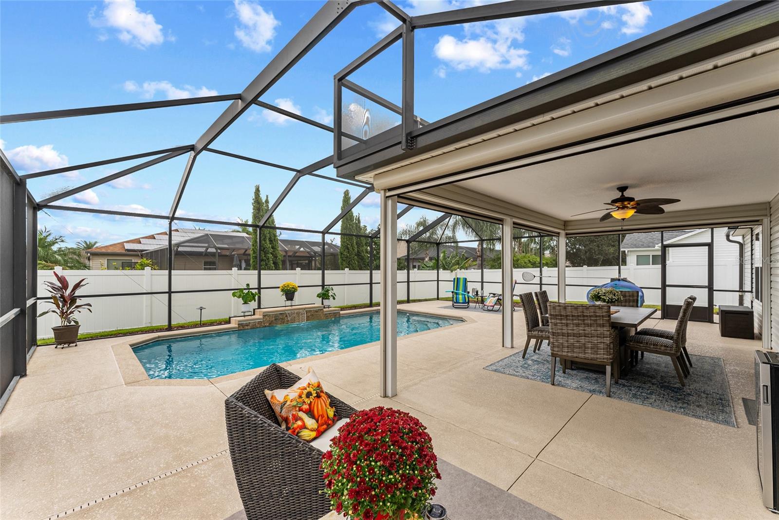 TOTALMENTE MOBILIADO e ACESSORIZADO designer Jasmine POOL HOME em comunidade para todas as idades com ACESSO A CARRINHO DE GOLFE a muitos restaurantes e varejistas em The Villages e perto da Villages Elementary Charter School. Esta casa construída na Turnkey Villages está localizada no bairro de TODAS AS IDADES de BISON VALLEY. SEM PAGAMENTOS DE TÍTULOS, TAXAS DE MANUTENÇÃO OU TAXAS DE COMODIDADE MENSAIS! O custo da Associação de Proprietários de Casa é de aproximadamente US$ 345 anuais. Aproveite seu quintal PRIVADO CERCADO com PISCINA DE CACHOEIRA e deck de piscina em uma EXPANSIVA BIRDCAGE que oferece várias áreas de estar e também abrange a LANAI COBERTA. A casa foi atualizada com piso LAMINADO, VENTILADORES DE TETO ILUMINADOS e tratamentos de janela por toda parte. O EAT IN KITCHEN dispõe de bancada em GRANITO, ARMÁRIOS EXPRESSO, ELETRODORES DE COZINHA EM INOX, mesa e cadeiras de cozinha e BAR DE PEQUENO ALMOÇO com banquetas abertas para a Sala que está BEM MOBILIADA, incluindo SOFÁ E CADEIRA RECLINÁVEIS, mesas, cadeiras laterais, iluminação TV DE TELA PLANA DE PAREDE, SISTEMA DE SOUND BAR SURROUND e LAREIRA ELÉTRICA. À direita desta área está a SUÍTE PRIMÁRIA, completa com CAMA QUEEN, mesinhas de canto, lençóis, tapete, acessórios, WALK IN CLOSET PERSONALIZADO e BANHEIRO SUITE. O banheiro possui BALCÃO DE GRANITO, pias duplas, armário de roupa de cama e WALK IN SHOWER. A lavanderia com LAVADORA E SECADORA GRANDE, pia funda e armário grande está localizada ao lado da Suíte Primária para máxima comodidade. No lado oposto da casa fica a ALA DE HÓSPEDES com dois QUARTOS DE HÓSPEDES, um com DUAS CAMAS DE CASAL e outro com CAMA QUEEN. Ambos com PRATELEIRAS PERSONALIZADAS, VENTILADORES DE TETO ILUMINADOS e incluem roupa de cama, tapete e acessórios. Um BANHEIRO DE HÓSPEDES com combinação de banheira/chuveiro completa a Ala de Hóspedes. Da sala de estar, STACKING SLIDERS se abrem para a LANAI COBERTA, completa com MESA DE JANTAR E CADEIRAS DE FIREPIT, REFRIGERADOR DE BEBIDAS e TELAS DE SOL/VENTO COM ALIMENTAÇÃO REMOTA que podem envolver a varanda. O grande deck da piscina com gaiola oferece um bom sol, mas sem insetos e possui VÁRIOS GRUPOS DE ASSENTOS que também PERMANECEM NA CASA. Do lado de fora da gaiola há um grande pátio com churrasqueira que também permanece com a casa. A GARAGEM PARA DOIS CARROS possui escada de acesso ao sótão, armário mecânico, AQUECEDOR DE ÁGUA ELÉTRICO 2022 e arrecadação. Localizado perto da escola primária The Villages Charter, das escolas públicas de Wildwood e de várias outras. TODOS OS MÓVEIS, ROUPA DE CAMA, OBRAS DE ARTE, ACESSÓRIOS, Utensílios de COZINHA, TVs etc. foram adquiridos em 2023/2024. COMECE A VIVER SUA MELHOR VIDA nesta linda CASA COM PISCINA com ACESSO A CARRINHO DE GOLFE às Aldeias. Carrinho de golfe Yamaha Gas 4 Seat disponível como venda adicional. Esta excelente propriedade também pode ser adquirida para arrendamento de longa duração com arrendamento mínimo permitido de 6 meses.