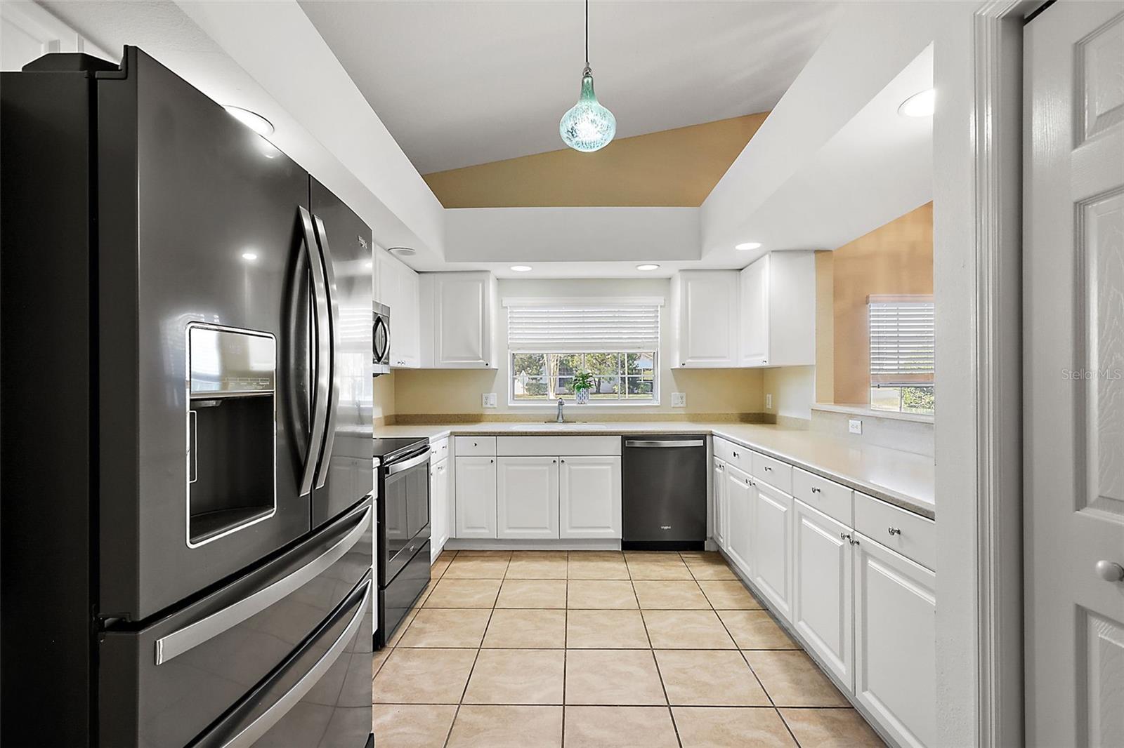 Bem-vindo a esta encantadora casa de 3/2, situada no cobiçado condomínio fechado de Lakeside Landings, onde conforto e tranquilidade se encontram. Situada em um espaçoso LOTE DE CANTO, esta propriedade oferece uma vista panorâmica de uma lagoa próxima e total privacidade traseira da sala de estar, do quarto e da varanda. Ao se aproximar, você será recebido por um jardim frontal aprimorado, com paisagismo exuberante, uma calçada pavimentada e uma passarela acolhedora até sua porta da frente. A área fechada da varanda frontal oferece um local aconchegante para o seu café da manhã e um retiro para apreciar a beleza das exuberantes samambaias próximas e outras plantações durante todo o ano. No interior, descubra uma ampla sala iluminada e arejada, recentemente pintada, com piso laminado e tetos abobadados, apresentando ângulos arquitetônicos únicos. A sala de jantar, com lustre, tem uma passagem conveniente para a cozinha, favorecendo a luz e a facilidade de trabalho da cozinha à mesa. A cozinha branca, recém-pintada, tem extensas bancadas em Corian e pias brancas, com eletrodomésticos atualizados e mais novos em um cinza ardósia elegante e resistente a “impressões digitais”. A grande janela sobre as pias convida a uma visão agradável e reflexiva do ambiente tranquilo. Há também uma despensa para armazenamento de alimentos. O quarto principal possui um novo piso LUXURY VINYL PLANK, pintura fresca e dois grandes armários separados, também com piso de vinil. O banheiro principal possui banheira de imersão de jardim, pias duplas com balcões de Corian e chuveiro de azulejos. Com dois quartos adicionais, um com carpete e outro com laminado, também pintados de fresco. Cada quarto tem seu próprio armário, além de banheira/chuveiro completo no segundo banheiro. A lavanderia branca possui uma nova máquina de lavar e secar roupa KENMORE ELITE de carregamento superior, com armários para armazenamento e uma pia. Recentemente instalado está um “Sistema de Água Quente Comfort”, com ou sem temporizador. Isso fornece água quente instantânea para qualquer área da casa. A porta da garagem teve recentemente todas as rodas metálicas substituídas e está em boas condições de funcionamento, incluindo um teclado externo para fácil acesso. Todas as telas foram substituídas recentemente. Com seu belo paisagismo, terreno de esquina, layout espaçoso e detalhes atenciosos, esta casa oferece um estilo de vida incomparável em Lakeside Landings. Você vai adorar o sistema de água quente confortável recentemente instalado. Não perca a oportunidade de tornar seu lindo imóvel! Lakeside Landings está convenientemente localizado perto da CR 472 (Rainey Trail) entre US 301 e Buena Vista Blvd em The Villages. As comodidades da comunidade incluem piscina estilo resort (uma das maiores da região) e spa, clube, instalações para exercícios, pickleball, tênis, playground, área de praia com acesso ao Lago Miona e muito mais! Os residentes de Lakeside Landings também desfrutarão da proximidade das THE VILLAGES CHARTER SCHOOLS, lojas, restaurantes, bancos e da comunidade The Villages, bem como da Lake Sumter Landing Market Square em The Villages, que oferece uma variedade de opções de restaurantes, cinemas e eventos noturnos. entretenimento 365 dias por ano. Walmart, Fresh Market e Publix ficam a poucos minutos de distância na CR 466. Não perca a oportunidade de possuir esta casa excepcional em uma localização privilegiada - agende sua exibição hoje mesmo!