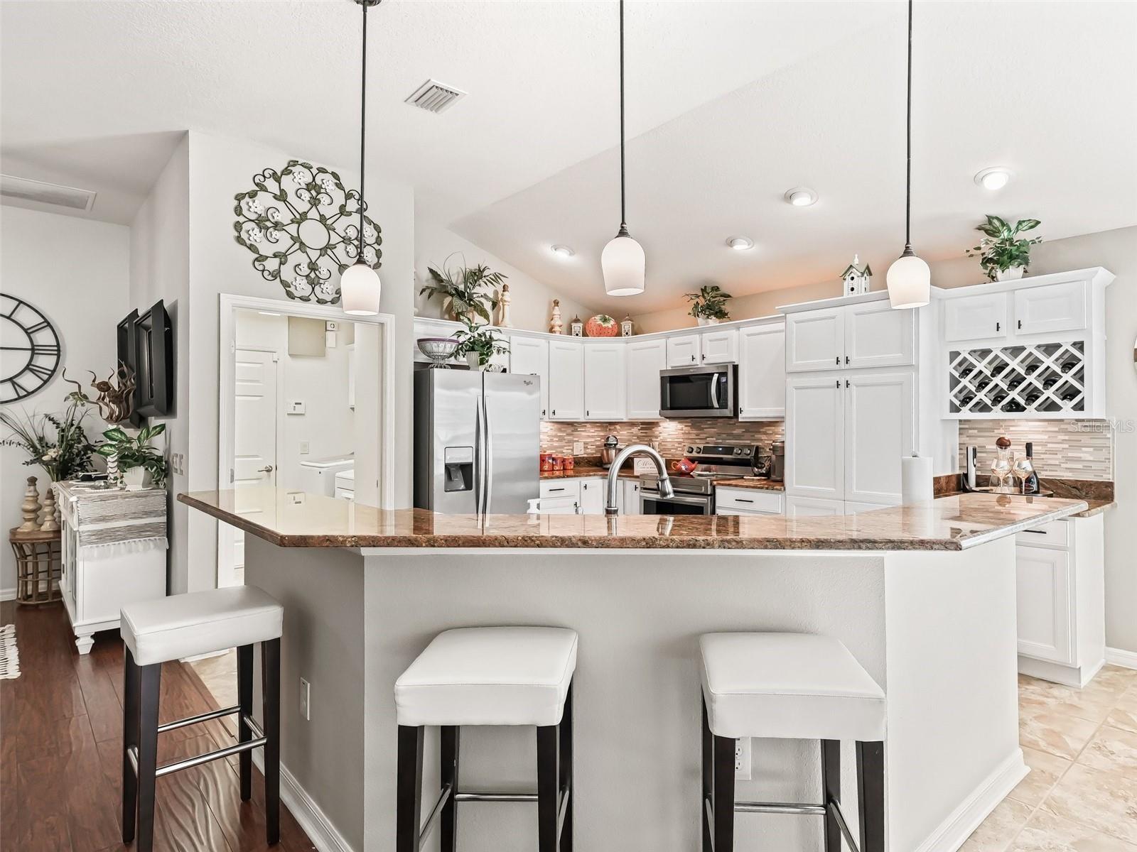 ** Vendedor motivado! ** Experiência, sem manutenção, vivendo em estilo resort com uma vista parcial do lago Miona de seu lanai privado de 64 pés de "tipo", sem vizinhos traseiros. Este designer lindamente atualizado Lantana Plan Plan apresenta (3) quartos e (2) banheiros, mais de 2.000 pés quadrados de espaço de estar. Desfrute de persianas de plantações em todas as janelas, tonalidades em todas as portas de vidro deslizantes e nenhum tapete da casa. A cozinha de chefs de conceito aberto possui bancadas em granito, um elegante backsplash de telha, utensílios de aço inoxidável e armários amplos com gavetas de retirada para todas as suas necessidades de armazenamento. Esta casa possui largas portas de 36 polegadas e sem limites, garantindo a facilidade de acesso para aqueles com desafios de mobilidade. A luxuosa suíte master inclui um espaçoso chuveiro romano e um armário da Califórnia. O quarto da frente é claro e brilhante com uma janela de sacada e possui um teto de bandeja. O terceiro quarto é do tamanho perfeito para o seu hóspede. Saia para desfrutar de um dos recursos de destaque da casa: uma exibição de 64 pés em Lanai com pavimentadora, espaço para uma banheira de hidromassagem e ideal para refeições ao ar livre, relaxamento ou entretenimento, enquanto desfruta de vistas tranquilas e a privacidade de nenhum vizinho traseiro. Destaques adicionais incluem uma garagem estendida de 542 pés quadrados com uma pia de utilidade e um sistema de segurança independente para sua paz de espírito. Os cuidados e a irrigação do gramado estão incluídos nas taxas do HOA. O Lakeside Landings é uma comunidade que apresenta um clube de 13.000 pés quadrados com um centro de fitness, sala de bilhar, sala de cartas, biblioteca, salão de banquetes com pista de dança, palco e cozinha de catering. A comunidade também oferece uma grande piscina de resort, spa, cabana, colocando quadras verdes e pickleball e tênis, além de uma piscina menor com uma banheira de hidromassagem e spa-apenas a uma curta caminhada. É importante ressaltar que o Lakeside Landings não possui taxas de CDD (Distrito de Desenvolvimento Comunitário) nem títulos.